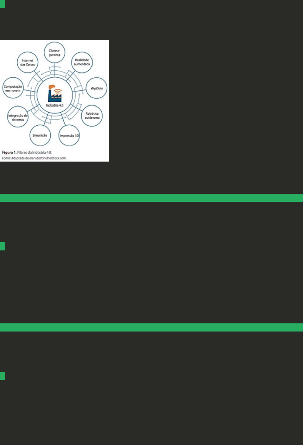 1Podemos dizer que a Indústria 4.0 se apoia sobre nove pilares tecnológicos, que você pode ver na figura anexa. Analisando os pilares da Indústria 4.0 apresentados na imagem, podemos dizer que a tecnologia que refere-se ao uso de servidores e computadores hospedados em data centers e interligados por meio da internet, sendo possível fazer uso remoto de seu armazenamento, memória e processamento é a: A Big Data. B Internet das Coisas. C Computação em nuvem. D Integração de sistemas. 2Tecnologia que contempla um conjunto de técnicas e tecnologias que visam detectar, prevenir e combater ataques a dados, programas, sistemas e redes. Algumas abordagens são: o reconhecimento de padrões e análise preditiva, algoritmos de autodetecção de tráfego de dados anormais na rede, autodetecção de comportamento anormal com segurança efetiva e outros. Sobre esta tecnologia, assinale a alternativa CORRETA: A Realidade aumentada. B Integração de sistemas. C Cibersegurança. D Computação em nuvem. 3A Indústria 4.0, por se tratar de uma revolução que ainda está ocorrendo, não existe um consenso dos autores acerca das competências e habilidades exigidas e esperadas. Sabe-se que, a exemplo das revoluções industriais anteriores, também há exigências no que diz respeito à adaptação às novas tecnologias e às mudanças organizacionais provocadas por elas, de forma a manter a empregabilidade. No entanto, Tessarini e Saltorato (2018) identificaram as principais competências comuns nas pesquisas do tema, classificando-as em três categorias: competências funcionais, competências comportamentais e competências sociais. Desta forma, de acordo com os autores, são competências comportamentais: FONTE: TESSARINI, G.; SALTORATO, P. Impactos da indústria 4.0 na organização do trabalho: uma revisão sistemática da literatura. Revista Produção On-line, Florianópolis, SC, v. 18, n. 2, p. 743-769, 2018. Disponível em: https://www.producaoonline.org.br/rpo/article/view/2967. Acesso em: 3 abr. 2021. A Autogerenciamento do tempo; Liderança; Capacidade de persuasão. B Flexibilidade; Criatividade; Inteligência emocional. C Resolução de problemas complexos; Habilidades de comunicação; Liderança. D Conhecimento de TI; Flexibilidade; Alta compreensão nos processos de manufatura. 4Uma das características da Indústria 4.0 é que as organizações passarão cada vez mais a trabalhar com equipes multidisciplinares, que tenham uma visão como um todo da indústria, e não somente com especialistas em áreas específicas. Assim, há a necessidade de que os profissionais busquem capacitações relacionadas ao funcionamento das novas ferramentas de gestão e produção que a Indústria 4.0 proporciona. Junto à multidisciplinaridade, existem outras que compõem as quatro principais características que os profissionais precisarão desenvolver para fazer frente à Indústria 4.0. Sobre essas características, associe os itens, utilizando o código a seguir: I- Multidisciplinaridade. II- Adaptabilidade. III- Senso de urgência. IV- Bom relacionamento. ( ) Os profissionais precisarão aprender a lidar com máquinas e robôs inteligentes. ( ) O avanço da automação exigirá competências diferentes de cada um. Em um ambiente cada vez mais digitalizado a colaboração ganhará força. ( ) Se exigirá dos profissionais discernimento para entender os limites entre o que é urgente e o que pode ser resolvido depois. ( ) As indústrias continuarão precisando de gente com formação específica, mas terão de lidar cada vez mais com áreas sobre as quais não estudaram. Assinale a alternativa que apresenta a sequência CORRETA: A II - IV - III - I. B II - III - IV - I. C I - II - III - IV. D IV - III - I - II. 5O relatório relacionado à Quarta Revolução Industrial, apresentado no Fórum Econômico Mundial em 2016, em Davos, na Suíça, aponta impactos nas relações de trabalho nos países cobertos pelo estudo que vão desde a perda de postos de trabalho concentrados principalmente em funções de rotina de escritório e administrativas até um aumento de milhões de empregos em áreas como computação, matemática, arquitetura e engenharia, bem como exigências no sentido de maior produtividade do trabalho e ampliação das habilidades. Sobre o relatório citado, assinale a alternativa CORRETA: A Relatório Futuro do Trabalho. B Relatório Global de Competitividade. C Relatório de Desigualdade Global de Gênero. D Relatório Indústria 4.0. 6De acordo com o Serviço Brasileiro de Apoio às Micro e Pequenas Empresas (INDÚSTRIA, 2018), a segurança é um dos principais desafios para o sucesso da Quarta Revolução Industrial, visto que problemas como falhas de transmissão na comunicação máquina-máquina podem trazer grandes prejuízos para a produção. Sobre outros desafios da Indústria 4.0 no Brasil, analise as afirmativas a seguir: I- Obter políticas estratégicas inteligentes, incentivos e fomentos por parte do governo. II- Reunir empresários e gestores da indústria com visão, arrojo e postura proativa. III- Customizar produtos em larga escala, que possibilite o consumidor interagir com a marca e sua linha de produção. IV- Dispor de desenvolvimento tecnológico e formação de profissionais altamente qualificados por parte das instituições acadêmicas e de pesquisa, preferencialmente em grande proximidade com a indústria. Assinale a alternativa CORRETA: FONTE: INDÚSTRIA 4.0: as oportunidades da nova revolução. Blog Sebrae MS, Campo Grande MS, 15 ago. 2018. Disponível em: https://sebrae.ms/inovacao/industria-4-0-as-oportunidades-da-nova-revolucao/. Acesso em: 1º abr. 2021. A Somente a afirmativa IV está correta. B As afirmativas I, II e III estão corretas. C As afirmativas I e III estão corretas. D As afirmativas I, II e IV estão corretas. 7Podemos dizer que a Internet das Coisas, ou simplesmente IoT (Internet of Things), é um conceito que define a conexã