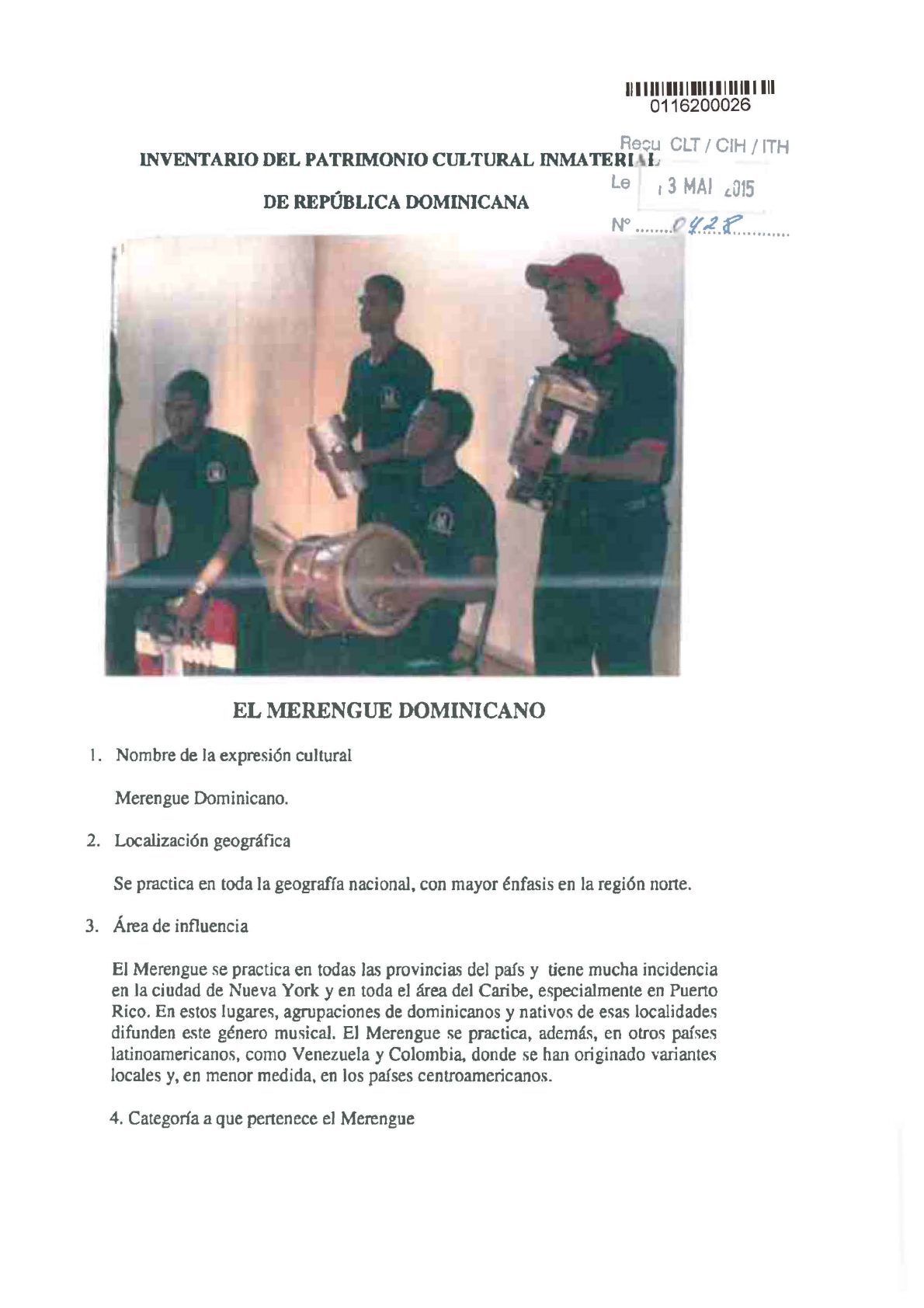 De acuerdo a la clasificaci6n recomendada por la UNESCO, el Merengue
