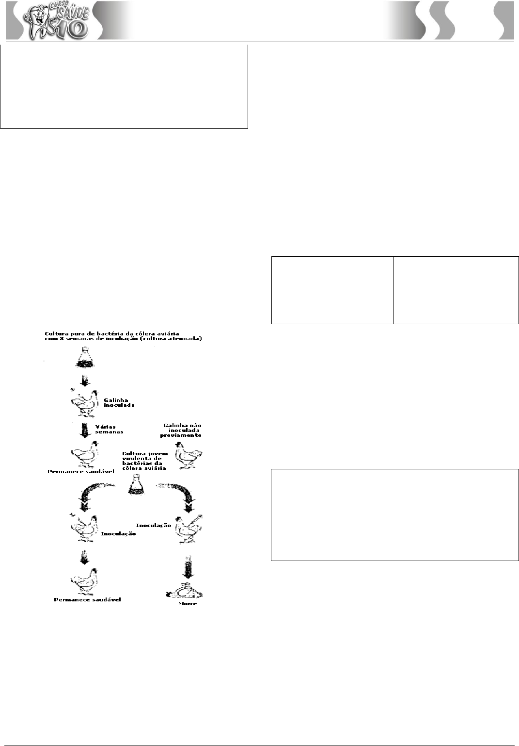 Simétrico Pré-Universitário – Curso de Biologia – Prof. Landim – www.simetrico.com.br 143 Biologia essas queixas. De acordo com a pesquisa, estas crianças também apresentam reação de desconforto em relação à intensidade de som, luz e movimento, que podem aparecer nos primeiros meses de vida, sendo um importante potencial indicador de dor de cabeça em fases posteriores do desenvolvimento. Disponível em: http://www.diariodopara.com.br/N-87478- DOR+DE+CABECA+PODE+AFETAR+COMPORTAMENTO+DA+CRIANCA.html. A dor de cabeça, queixa frequente nos dias atuais, ocorre quando A) crianças em fase de desenvolvimento apresentam dificuldade de respiração, seguida de diminuição da pressão arterial. B) há o depósito de gordura nas artérias, como resultado de uma alimentação inadequada. C) um desequilíbrio metabólico produz substâncias tóxicas que se depositam na corrente sanguínea e provocam o aumento da pressão arterial. D) os vasos sanguíneos cerebrais ficam dilatados e pressionam os nervos. 15. (UECE) A denominação vacina foi uma homenagem de Pasteur a Jenner, descobridor da vacina como a varíola; para os processos de imunização contra doenças passou-se a usar o termo vacinação. A figura apresenta o esquema utilizado por Pasteur para a produção de vacina contra a cólera aviária. Nela, Vacina (1) e a obtenção de imunização pela Vacinação (2) são representados, respectivamente, por: A) cultura jovem (1); inoculadas em galinhas não inoculadas previamente (2) B) cultura jovem (1); inoculadas em galinhas inoculadas previamente com cultura atenuada (2) C) cultura atenuada (1); inoculadas em galinhas que passam várias semanas para obter imunização, quando poderão ser inoculadas com culturas jovens sem sofrer danos fatais (2) D) cultura atenuada (1); inoculadas em galinhas que instantaneamente obtêm imunização, podendo ser imediatamente submetidas à inoculação com cultura jovem sem sofrer danos fatais (2) 16. (FACID) As proteínas podem ser consideradas como uma das classes de compostos químicos com maior diversidade de formas e funções em um organismo. Normalmente se configuram como a expressão final da informação gênica. Um grupo particular desses polímeros de aminoácidos são as imunoglobulinas, popularmente denominadas anticorpos. A respeito destes é incorreto afirmar que A) são responsáveis por mediar a imunidade humoral ou adquirida quando circulantes nos fluidos corporais. B) reagem especificamente com moléculas estranhas que causam resposta imunitária no hospedeiro: os imunógenos. C) são secretados pelos plasmócitos a partir da proliferação e diferenciação de linfócitos B. D) podem se relacionar com as reações alérgicas como o choque anafilático. E) sua síntese se dá por ligações peptídicas de um único tipo de aminoácido. 17. (NOVAFAPI) Assinale a alternativa que contenha as associações corretas entre as colunas. I. Infecção por rubéola. II. Passagem de anticorpos maternos pela placenta. III. Administração de soro antiofídico. IV. Vacinação Sabin. a. Imunização ativa artificial. b. Imunização passiva artificial. c. Imunização passiva natural. d. Imunização ativa natural. A) Ia, IIb, IIIc, IVd. B) Id, IIb, IIIc, IVa. C) Ib, IIc, IIIa, IVd. D) Ic, IIa, IIIb, IVd. E) Id, IIc, IIIb, IVa. 18. (UFPE) Quando uma proteína estranha (antígeno) penetra em um organismo animal, ocorre a produção de anticorpos para neutralizar a ação desse antígeno. Quando os antígenos agem rapidamente após a sua penetração, como os venenos de cobra, é necessário usar anticorpos. Para obtenção desses anticorpos injetam-se pequenas doses de veneno em um animal, como, por exemplo, em um cavalo, e em seguida observa-se que: 1. no sangue do animal deve começar a aumentar a concentração de anticorpos específicos. 2. na parte líquida do sangue do animal (soro), ficam os anticorpos produzidos. 3. o soro produzido terá a propriedade de curar uma pessoa que tenha sido mordida por cobra cujo veneno foi injetado no animal. 4. as preparações obtidas, denominadas de soros terapêuticos, contêm anticorpos específicos. Está(ão) correta(s): A) 1, 2, 3 e 4. B) 1, 3 e 4 apenas. C) 2 e 3 apenas. D) 4 apenas. E) 1 apenas. 19. (UPE) O sistema imune é aparelhado para enfrentar a ação de diferentes agentes infecciosos, prevenindo doenças. Dentre as estratégias de combate aos patógenos, existem no nosso organismo proteínas, cujo mecanismo de defesa inespecífico vai atuar nos diferentes micro-organismos, como acontece com a ação apresentada pelo interferon (interferão – IFN), na figura abaixo. Simétrico Pré-Universitário – Curso de Biologia – Prof. Landim – www.simetrico.com.br 144 Biologia Disponível em: http://biologia12eportefolio.blogspot.com.br/p/imunidade-e-controlo-de- doencas.html. Sobre seu mecanismo de ação, é correto afirmar que A) corresponde a um grupo de proteínas fibrosas, conhecidas como citocinas produzidas pelos vírus que aumentam a capacidade das células hospedeiras infectadas para resistir a uma nova infecção pelo vírus. Certos sintomas, tais como febre e dores musculares, estão relacionados com a produção de IFN durante a infecção. B) se trata de um grupo de glicoproteínas naturalmente sintetizadas em nosso corpo, pelos linfócitos T, macrófagos, fibroblastos e outros tipos de células, que atuam na primeira linha de defesa contra as infecções e fazem parte do sistema imunitário não específico. C) ativa as células do sistema imunológico, tais como as células assassinas naturais e os plasmócitos, resultando em memória imunológica, o que aumenta o reconhecimento da infecção pelos anticorpos de linfócitos T. D) o IFN do tipo alfa e aquele produzido por fibroblastos infectados; o do tipo beta é aquele produzido por leucócitos infectados, e o do tipo gama aquele produzido pelas células T ativas e células NK determinadas. E) se constitui em um gru