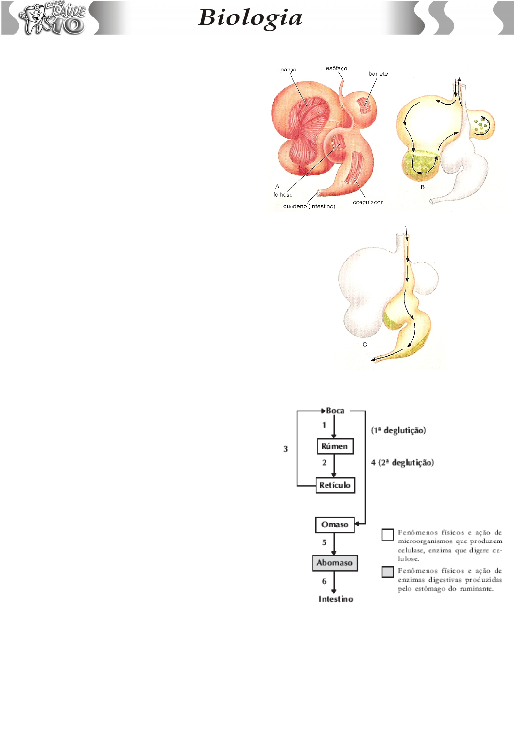 da digestão em ruminantes. Em C, 2ª fase de digestão em