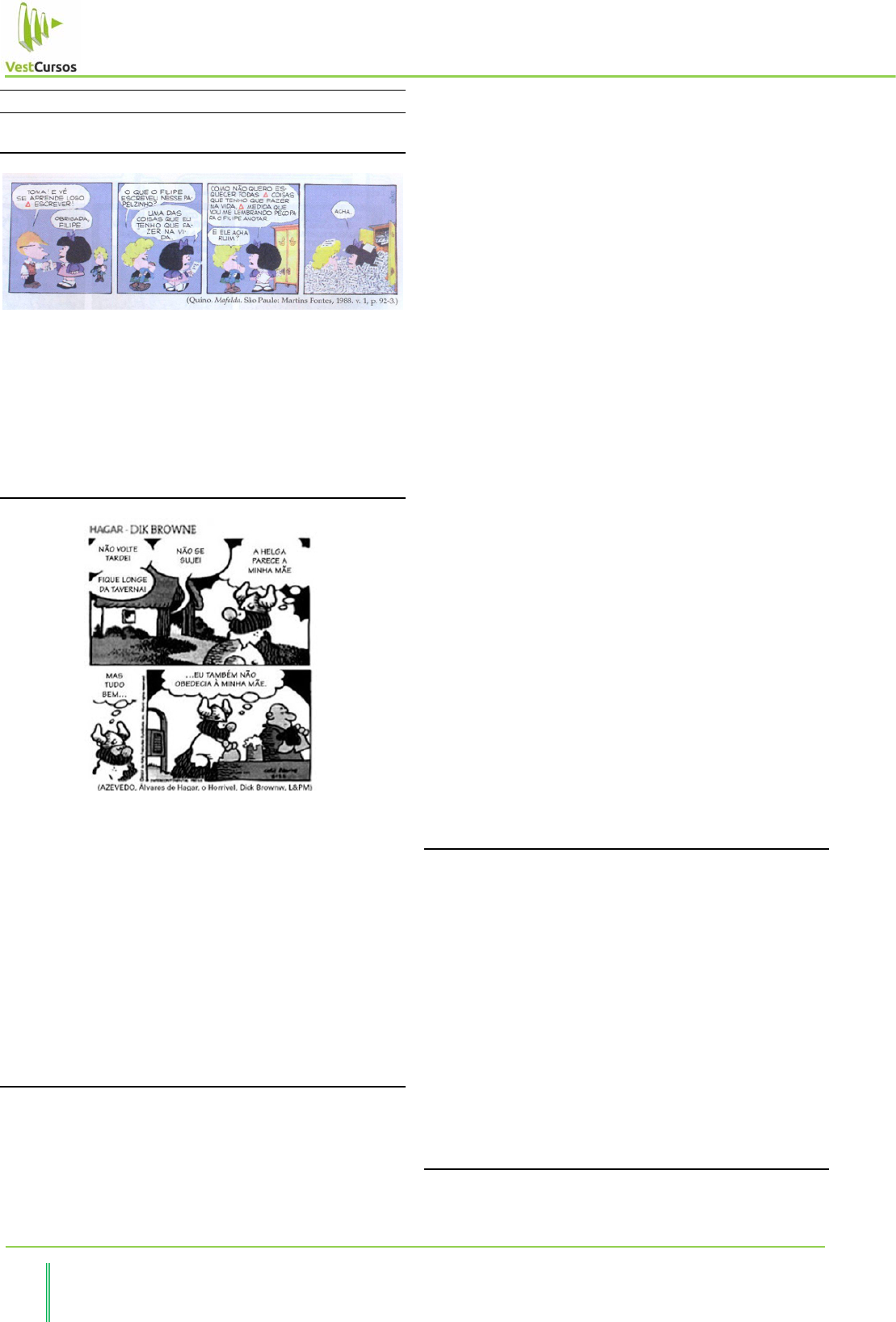 SEMANA 17 – Crase e NTI 189 VestCursos – Especialista em Preparação para Vestibulares de Alta Concorrência EXERCÍCIOS DE FIXAÇÃO Questão 1 Leia a tirinha da Mafalda para responder à questão sobre crase: O uso da crase está condicionado a diversas regras. Aprendê-las é muito importante para o emprego correto do acento grave (`) Quais palavras preenchem adequadamente as lacunas indicadas na tirinha? a) há – às – há b) à – às – a c) a – as – à d) a – as – a Questão 2 Leia a tirinha de Hagar, o Horrível, para responder à questão: Hagar, o Horrível. Tirinha do cartunista americano Dik Browne Em “eu também não obedecia à minha mãe”, analise a questão que melhor justifique o emprego da crase: a) Antes de pronomes possessivos masculinos há o uso obrigatório da crase. b) O uso da crase é opcional, pois o acento indicador da existência de crase é facultativo antes de pronomes possessivos femininos. c) Para saber se há crase antes do pronome possessivo feminino, basta substituí-lo por um pronome possessivo masculino: se no masculino aparecer ao ou aos, então não haverá crase no feminino. d) A crase nunca deverá ser empregada antes de pronomes possessivos femininos. Questão 3 Tribalização O continente africano, que tantas vezes e por tanto tempo já foi o espelho sombrio e espoliado dos progressos da civilização ocidental, infelizmente continua sujeito a um processo que, no limite, resume-se a uma implosão civilizatória. Se os tempos são de globalização, o espelho de horrores africano coloca-nos diante da antítese mais extrema, a da tribalização. Chegam-se ao fim do século 20 com o mais velho continente mergulhado em conflitos étnicos, miséria, endemias e estagnação econômica. A situação tornou-se agora extremamente grave, e entre Zaire e Ruanda parece inevitável uma guerra aberta. Tudo sob o olhar distante e pouco interessado das grandes potências ocidentais. A própria ONU admite não ter acesso a 600 mil refugiados hutus no leste do Zaire e pediu fotos de satélite para identificar onde eles estariam. Segundo a comissária da União Européia, 1 milhão de pessoas podem morrer. Seria patético, se não fosse absolutamente trágico. A responsabilidade do Ocidente é inegável. Basta lembrar o antigo nome do Zaire, Congo Belga, para tomar consciência do passado colonialista que em muitos casos criou divisões geopolíticas e unidades de governo pouco ou nada coerentes com tradições tribais, étnicas ou mesmo territoriais. Infelizmente, uma parte relativamente grande da mídia e dos governantes dos países “civilizados” retrata os conflitos como puramente tribais, como se o genocídio africano não tivesse começado faz alguns séculos, sob o comando de potências colonialistas. Mais, parece evidente que a “tribalização”, ou seja, a predominância de fatores locais, étnicos e de disputa territorial, nada mais é que o resultado de uma situação de estagnação e fome epidêmica em que boa parte do continente continua mergulhada em decorrência de seus sistemas econômicos, totalmente marginalizados da globalização. Lamentavelmente, a dívida em vidas, riqueza e cultura do Ocidente com a África tende apenas a crescer. (Adaptado da Folha de São Paulo, 31/10/96, 1-2.) O acento grave indica corretamente a ocorrência de crase em: a) o continente africano continua sujeito à várias chagas sociais; b) o século vinte está chegando à termo com problemas que envolvem tanto a globalização quanto a tribalização; c) o própria ONU admite nem sempre ter acesso à populações que necessita atender; d) o genocídio africano começou à existir sob o comando de potências colonialistas; e) o Ocidente muito deve à África, em muitos e variados aspectos. Questão 4 Assinale a opção que preenche correta e coerentemente as lacunas do texto: Uma preocupação do governo está relacionada ___ manutenção do registro do débito na contabilidade das empresas mesmo depois de seu pagamento. Isso pode propiciar __ contabilização de prejuízos referentes ___ variação cambial e ___gastos com juros que na verdade não existiriam. Se o pagamento tiver sido feito, mas __ empresas tiverem mantido seus registros contábeis, isso pode reduzir artificialmente o lucro das companhias, o que prejudica ____ arrecadação do imposto. a) a – a – a – aos – as – à b) a – à – à – a – às – a c) à – a – à – aos – as – a d) à – à – a – aos – às – à e) a – à – a – à – às – a Questão 5 Até……..poucos dias, os preços desse produto estavam sujeitos…….. grandes oscilações no mercado. a) à, a b) a, à c) há, a d) à, à e) há, à 190 VestCursos – Especialista em Preparação para Vestibulares de Alta Concorrência CURSO ANUAL GRAMÁTICA E INTERPRETAÇÃO – (Prof. Cláudio Neves) Questão 6 “……. noite, todos os operários voltaram ……. fábrica e só deixaram o serviço …… uma hora da manhã.” a) há, à, à d) à, a, há b) a, a, a e) a, à, a c) à, à, à Questão 7 No território nacional, …… estatísticas o demonstram: …… cada trinta minutos uma pessoa sucumbe …… tuberculose. a) as, à, a d) as, a, à b) às, à, à e) às, a, a c) às, à, a Questão 8 A frase em que o uso da crase está incorreto é: a) o professor dirigiu-se à sala. b) fez uma promessa à Nossa Senhora. c) à noite não gosto de ler. d) referiu-se àquilo que viu. e) fugiu às pressas. Questão 9 Assinale a alternativa que preenche corretamente as lacunas: “Quando, …… dois dias, disse……ela que ia …… Europa para concluir meus estudos, pôs-se …… chorar.” a) a – a – a – a d) há – a – à – a b) há – à – à – a e) n.d.a c) a – à – a – à Questão 10 Opção que preenche corretamente as lacunas: “O gerente dirigiu- se …… sua sala e pôs-se …… falar …… todas as pessoas convocadas.” a) à, à, a
