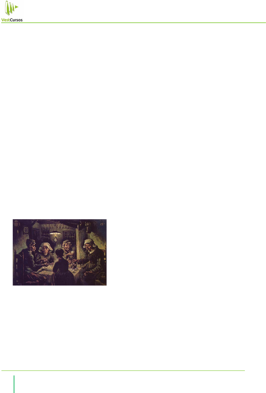 Aula 19 – Revolução Industrial 3 VestCursos – Especialista em Preparação para Vestibulares de Alta Concorrência Friedrich Engels, em A situação da classe trabalhadora na Inglaterra, descreve o cenário de um bairro dessas cidades industriais: “É uma massa de casas de três ou quatro andares, construídas sem plano, com ruas tortuosas, estreitas e sujas onde reina uma animação tão intensa como nas principais ruas que atravessam a cidade com a diferença que (...) só se vêem pessoas da classe operária. O mercado está instalado nas ruas: cestos de legumes e de frutos, todos naturalmente de má qualidade, e dificilmente comestíveis, ainda reduzem a passagem e deles emana, bem como dos açougues, um cheiro repugnante. As casas são habitadas dos porões aos desvãos, são tão sujas no exterior como no interior e têm um tal aspecto que ninguém as desejaria habitar. Mas isto não é nada comparado às habitações nos corredores e vielas transversais onde se chega através de passagens cobertas, e onde a sujeira e a ruína ultrapassam a imaginação; não se vê, por assim dizer, um único vidro inteiro, as paredes estão leprosas, os batentes das portas e os caixilhos das janelas estão quebrados ou descolados, as portas – quando existem – são feitas de pranchas velhas pregadas umas às outras (...). Em toda parte montes de detritos e de cinzas, e as águas vertidas em frente às portas acabam por formar charcos. É aí que habitam os mais pobres, os trabalhadores mais mal pagos, com os ladrões (...) e as vítimas da prostituição, todos misturados.” Em contrapartida, a classe burguesa habitava em magníficas e luxuosas casas localizadas em largas alamedas, os boulevares, margeadas por jardins bem cuidados, em zonas exclusivamente residenciais, distantes da sujeira, do barulho e do burburinho dos bairros operários. HISTÓRIA E ARTE Pintado por Vincent Van Gogh (1885), durante a fase em que o artista se encontrava sob a influência do realismo, “Os Comedores de Batatas” denuncia a miséria das famílias trabalhadoras do século XIX. Para conferir realismo à obra, Van Gogh destacou traços grosseiros nos trabalhadores, explorando os tons escuros, típicos da luminosidade barroca. Para Van Gogh, a escuridão também poderia ser considerada uma cor, por isso os trabalhos que o pintor produziu nessa fase são escuros e pesados. Vincent trabalhou as sombras com outros tons que, junto ao interior pouco iluminado pelo lampião, dão um aspecto frio ao ambiente. LEITURA COMPLEMENTAR I: O SISTEMA DE TRABALHO O escritor norte-americano Leo Huberman, em História da riqueza do homem, apresenta uma classificação quanto à evolução do sistema de trabalho, do período medieval à Revolução Industrial: 1 – Sistema familiar: os membros de uma família produzem artigos para o seu consumo, e não para a venda. O trabalho não se fazia com o objetivo de atender ao mercado. Princípio da Idade Média. 2 – Sistema de corporações: produção realizada por mestres artesãos independentes, com dois ou três empregados, para o mercado, pequeno e estável. Os trabalhadores eram donos tanto da matéria prima que utilizavam como das ferramentas com que trabalhavam. Não vendiam o trabalho, mas o produto do trabalho. Durante toda a Idade Média. 3 – Sistema doméstico: produção realizada em casa para um mercado em crescimento, pelo mestre-artesão com ajudantes, tal como no sistema de corporações. Com uma diferença importante: os mestres já não eram independentes; tinham ainda a propriedade dos instrumentos de trabalho, mas dependiam, para a matéria prima, de um empreendedor que surgira entre eles e o consumidor. Passaram a ser simplesmente tarefeiros assalariados. Do século XVI ao XVIII. 4 – Sistema fabril: produção para um mercado cada vez maior e oscilante, realizada fora de casa, nos edifícios do empregador e sob uma rigorosa supervisão. Os trabalhadores perderam completamente sua independência. Não possuem a matéria prima, como ocorria no sistema de corporações, nem os instrumentos, tal como no sistema doméstico. A habilidade deixou de ser tão importante como antes, devido ao maior uso da máquina. O capital tornou-se mais necessário do que nunca. Do século XIX até hoje.” LEITURA COMPLEMENTAR II: OUTRO OLHAR SOBRE A REVOLUÇÃO INDUSTRIAL Uma história bem conhecida da Revolução Industrial é a dos trabalhadores “ludistas”, aqueles que se revoltaram contra as máquinas por acharem que elas destruíam empregos e impunham uma concorrência desleal. Esses protestos são tão antigos quanto as primeiras máquinas. Tão logo o carpinteiro e tecelão James Hargreaves começou a vender sua fiandeira jenny, vizinhos e colegas invadiram sua casa e destruíram os equipamentos. Os quebra-quebras ganharam força a partir de 1811, quando costureiros da cidade Nottingham se armaram com machados e porretes, invadiram fábricas de tecidos e arruinaram 60 fiandeiras mecânicas. Basta olhar para o lado para constatar como os ludistas fracassaram. Daquela época até hoje, as fábricas foram tomadas por uma onda inescapável de engrenagens, máquinas, motores elétricos, esteiras rolantes, computadores e robôs; as cidades passaram a abrigar carros, trens, tratores, aviões e lâmpadas elétricas; o celular no bolso das pessoas tem processadores mil vezes mais potentes que os usados na Apollo 11. E qual foi o resultado desse enorme fracasso dos protestos dos trabalhadores? O contrário do que eles imaginaram. O número de empregos na Inglaterra (cerca de 6 milhões em 1750) não só não caiu como acompanhou o enorme crescimento populacional, chegando a 30 milhões hoje. Foi uma elevação tão intensa que os ingleses – e boa parte dos países industrializados – precisaram contratar estrangeiros para cumprir a demanda por empregos. O erro da idéia de que as máquinas roubam empregos é achar que os desejos humanos, e os empregos para satisfazer e