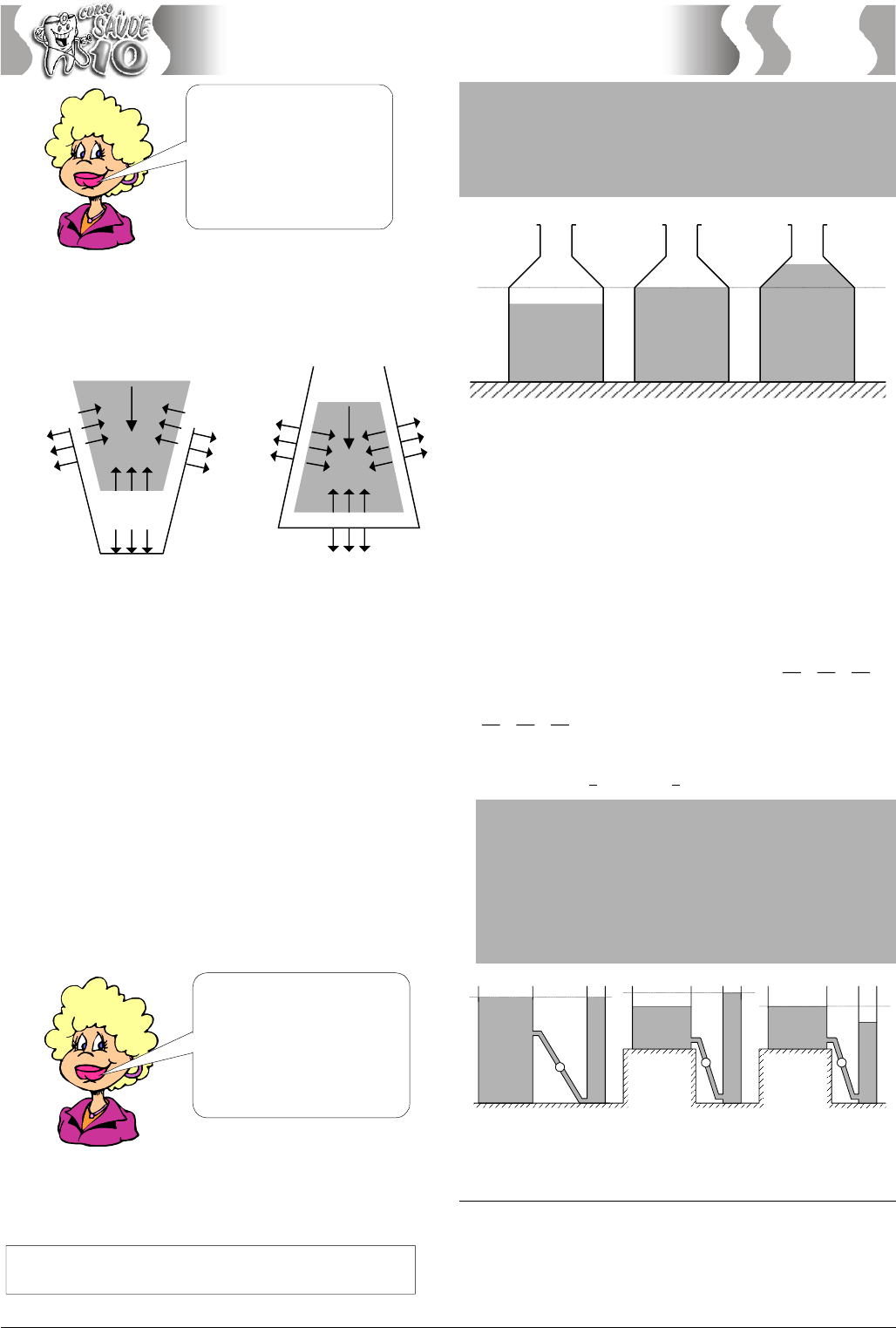 Física Simétrico Pré-Universitário – Há 25 anos ensinando com excelência os estudantes cearenses – www.simétrico.com.br 201 profinho, mas eh isso que eu nao entendo ! Se tem mais água no recipiente 1 que nos outros, como é que a força F 1 que a água faz sobre o fundo do 1o recipiente é a mesma dos outros, já que ela é mais pesada ? A sua pergunta faz sentido, Claudete. É exatamente esse o paradoxo existente. Essa aparente contradição que você notou dá a esse problema o nome de Paradoxo Hidrostático. Esse paradoxo, entretanto, é facilmente solucionado. Veja: recipiente 1 F FN1 N 2 N 1 N2 P 1 recipiente 3 F F N 3 N 3 N 4 N 4 P3 Figura 12 a Figura 12 b Na figura 12, o prof Renato Brito representou todas as forças (normais) que o líquido exerce nas paredes dos recipientes, assim como as suas reações. Chamou de P1 e P3 os pesos das águas em cada vaso. É fácil perceber que as paredes do recipiente 1 (Figura 12a) ajudam a força F a sustentar o peso P1 do conteúdo líquido, por isso que, no equilíbrio, observando apenas as forças que atuam no líquido, temos P1 = F + N1y + N2y e, portanto, P1 > F, ou F < P1 . Assim, em recipientes com esse formato, a força F que água exerce no fundo do recipiente acaba sendo menor que o peso do seu conteúdo líquido. Em contrapartida, as paredes do recipiente 3 (Figura 12B) pressionam o conteúdo líquido para baixo, contra o fundo do recipiente, que termina tendo que exercer sobre o líquido uma força F maior que o seu peso P3 , ou seja, F > P3. Por esse motivo, em recipientes com esse formato, a força F que água exerce no fundo do recipiente acaba sendo maior que o peso do seu conteúdo líquido, ou seja, F > P. Ei Renato Brito, quer dizer que a força F que o líquido faz no fundo do seu recipiente só vai coincidir com o peso do líquido (F=P) quando o recipiente tiver apenas paredes verticais sendo molhadas pelo líquido é ? Exatamente, Claudete ! É o caso do recipiente 2 (Figura 9) . Assim, dependendo do formato do recipiente, podemos ter F > P, F < P ou F = P. Entretanto, para qualquer formato de recipiente, essa força F é sempre calculada por: F = ( Pressão no fundo do recipiente ( x ( área do fundo do recipiente ( = Pcol x A [eq-3] Propriedade 3 A força F que o líquido contido no interior de um recipiente exerce sobre a base desse recipiente só coincide com o peso P (F = P) desse líquido, caso este molhe apenas paredes verticais do recipiente. nível F = P B C F = P F > P A Figura 13 - Enchendo gradativamente de água o recipiente acima, teremos F= P enquanto a água não atingir o nível horizontal em destaque nas figuras A e B acima. A partir da figura B, se mais água for adicionada ao recipiente, a teremos F > P, devido ao efeito das paredes inclinadas pressionando o líquido para baixo contra o fundo do recipiente. d) a pressão P * que o fundo do recipiente exerce externamente sobre a mesa está intimamente relacionada com a força normal F* (Figura 10) que o recipiente como um todo exerce sobre a mesa. A intensidade dessa força deve ser capaz de sustentar o peso de todo o recipiente, independente do seu formato, portanto temos F* = Peso = W em todos os recipientes da Figura 9. Assim, usando o resultado da letra c, vem: W1 > W2 > W3 F1* > F2* > F3* A F*1 > A F*2 > A F*3 A F*1 > A F*2 > A F*3 P1* > P2* > P3* O aluno deve comparar e entender bem a diferença entre a resposta da letra a e da letra d dessa questão. Autoteste 1 A figura a seguir mostra seis reservatórios cheios de água e conectados entre si através tubos dotados de registros R que se encontram inicialmente fechado. Descreva o que ocorre a água que se encontra no tubo quando cada registro R for aberto, dizendo para qual lado a água passará ou se não haverá passagem de água. R R R I II III IV V VI Extraído do livro “Física Para o 2o Grau” - Mecânica – Luiz Alberto Guimarães e Marcelo Fonte Boa – Editora Harbra 3 – A Pressão Atmosférica A atmosfera é a camada gasosa que permanece ao redor da Terra devido ao seu campo gravitacional, exercendo pressão sobre sua superfície. Astros com campo gravitacional muito fraco, como a lua, não apresentam essa camada gasosa. Por isso, na Lua o ambiente é vácuo. Física Simétrico Pré-Universitário – Há 25 anos ensinando com excelência os estudantes cearenses – www.simétrico.com.br 202 A atmosfera terrestre tem importância vital, pois, além de fornecer o suprimento de gases para a respiração, protege o planeta filtrando grande parte da radiação cósmica, raios infravermelho, ultravioleta etc. , mantendo a temperatura do planeta estável. Pelo fato da Lua não ter atmosfera, lá o som não se propaga e o céu é permanentemente negro, de dia e de noite, semelhante ao céu noturno da Terra, apesar do solo lunar ficar iluminado de dia. A coloração variada do nosso céu é conseqüência do espalhamento da luz visível ao atravessar a atmosfera terrestre. Devido à quase completa ausência de atmosfera na Lua, aliada à falta de água, há uma amplitude térmica considerável entre a parte iluminada e a não iluminada. Na primeira, o valor da temperatura é de +117 ºC, enquanto que, na segunda, é de –171 oC, o que corresponde a uma amplitude térmica (diferença entre a máxima e a mínima temperatura) de quase 300 ºC. Figura 14 a Figura 14 b A pressão que a atmosfera terrestre exerce sobre nós é colossal. Para que você possa fazer idéia de quão grande é essa pressão, observe a figura 14a em que uma pessoa faz uso de uma bomba de vácuo para extrair grande parte do ar atmosférico do interior da lata. Após retirar parte do ar (figura 14b), a lata é esmagada pela pressão atmosférica externa. Antes dele retirar o ar, isto não acontecia porque a pressão atmosférica estava atuando tanto no interior quanto no exterior da lata. Ao ser ligada a bomba de vácuo, a pressão interna torna-se bem menor do que a externa e a lata é esmagada. Figura 1