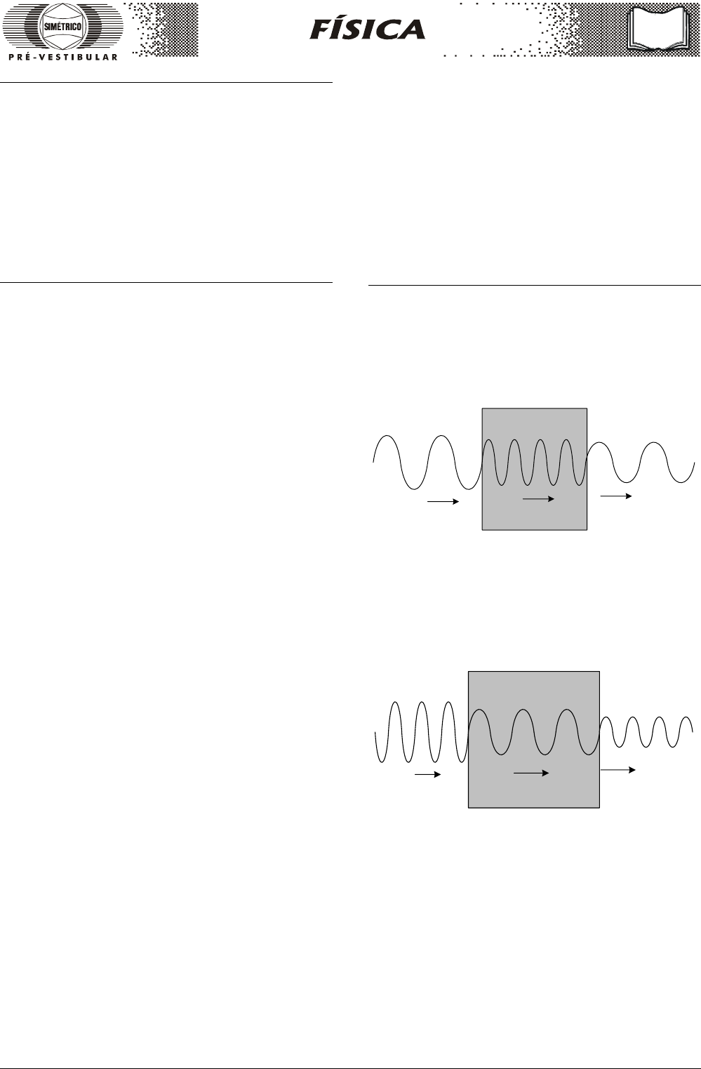 Simétrico Pré-Universitário – Há 23 anos ensinando com excelência os estudantes cearenses – www.simétrico.com.br 243 Questão 06 Após cair na pegadinha da questão anterior, você agora nunca mais esquecerá que TODA ONDA: a) Arrasta o meio em que se propaga; b) Se propaga com velocidade V diretamente proporcional à sua frequência f de oscilação; c) Sofre desvio em sua direção de propagação, ao mudar de um meio de propagação para outro meio com propriedades físicas diferentes; d) Pode ser polarizada. e) Transporta energia sem arrastar matéria; Questão 07 – Conceitos Teóricos Básicos sobre Ondas. Preencha as lacuna abaixo corretamente, usando as palavras freqüência, velocidade e comprimento de onda. Em outros casos, quando necessário, selecione uma das opções fornecidas entre parênteses. Os parâmetros _______(a)________ e ________(b)______ da onda são independentes entre si. Isso significa que quando a ___________(c)________ da onda, por exemplo, dobrar de valor, durante uma mudança de meio, nada ocorrerá ao seu (à sua)___________(d)_________ . Da mesma forma, se de repente a fonte das ondas sofrer uma alteração na sua freqüência, digamos, triplicando a mesma, a (o)__________(e)________ das novas ondas produzidas agora será três vezes maior que antes, entretanto nada ocorrerá a sua (ao seu)____________(f)__________, visto que ___________(g)_______ e___________(h)_________ da onda são independentes entre si, constituindo um grave erro afirmar que uma seja diretamente proporcional à outra. O parâmetro ___________(i)_________ é que depende tanto do (da)____________(J)___________ como do (da) __________(L)_______ da onda. Se qualquer um destes dois últimos mudar, afetará o (a)__________(m)________ da onda. Numa Refração, por exemplo em que a onda muda de meio e, portanto, sofre mudança do seu (da sua) _______(n)______ , seu (sua) __________(o)_________ permanece constante e, nesse caso, podemos afirmar que o comprimento de onda é (p)(diretamente / inversamente)...proporcional ao seu (á sua) ______________(q)_________. Já no caso, por exemplo, em que uma orquestra toca instrumentos musicais com diferentes notas musicais (diferentes freqüências) ao ar livre, todas as ondas sonoras compartilharão do(a) mesmo(a) _________(r)_________ . Nesse caso, podemos afirmar que o comprimento de onda será (s)( diretamente../..inversamente..) proporcional á sua ___________(t)_________. Apesar de termos falado que a velocidade de uma onda independe da sua frequência, fato esse que, em geral, ocorre para todas as ondas mecânicas, som, etc..... há uma exceção a essa regra: quando ondas eletromagnéticas (luz por exemplo) viaja em meios materiais, conforme aprendemos em nossas aulas de Óptica, quanto maior for a frequência da luz, menor a velocidade de propagação dela nos meios materiais. Assim, como a freqüência do violeta é maior que a do vermelha, a luz violeta se propaga mais lentamente que a luz vermelha dentro do vidro e qualquer meio material, ou seja, em todos os meios EXCETO no vácuo. No vácuo, a velocidade das ondas eletromagnéticas independe da frequência: todas as ondas eletromagnéticas viajam com a mesma velocidade c = 3 x 108 m/s no vácuo, diferindo entre si apenas pela frequência e pelo comprimento de onda . Questão 08 – Conceitos Teóricos Básicos sobre Ondas. De acordo com seus conhecimentos teóricos sobre as Ondas, leia atentamente o texto abaixo e selecione a opção fornecida entre parênteses que completa corretamente cada sentença. a) A figura abaixo mostra uma onda sofrendo uma seqüência de duas refrações ar-vidro e vidro-ar. Por uma questão de conveniência, as ondas refletidas não foram representadas. VAR VVidro VAR Observando-se o comportamento da onda na figura acima, percebemos que trata-se de (som / luz), visto que a sua velocidade de propagação (aumenta / diminui / permanece constante) ao passar do ar para o vidro, ao passo que seu comprimento de onda (aumenta / diminui / permanece constante). A frequência da onda, nesse caso, certamente (aumenta / diminui / permanece constante). VAR VVidro VAR b) Entretanto, observando-se o comportamento dessa outra onda mostrada na figura acima, percebemos que trata-se de (som / luz), visto que a sua velocidade de propagação (aumenta / diminui / permanece constante) ao passar do ar para o vidro, ao passo que seu comprimento de onda (aumenta / diminui / permanece constante). A frequência da onda, nesse caso, certamente (aumenta / diminui / permanece constante). c) A luz e o som têm comportamentos opostos, no que se refere ao fenômeno ondulatório demonstrado acima. Entretanto, esse fato não é de se estranhar, haja vista que o som é uma onda (mecânica / eletromagnética) (transversal / longitudinal ), ao passo que a luz é uma onda (mecânica / eletromagnética) (transversal / longitudinal ). Simétrico Pré-Universitário – Há 23 anos ensinando com excelência os estudantes cearenses – www.simétrico.com.br 244 Questão 09 – Conceitos Teóricos Básicos sobre Ondas. Uma criança estava brincando com uma flauta no quintal de sua casa quando decidiu dar um jeito de fazer a onda sonora se propagar com velocidade maior que antes. Para atingir seu objetivo, quais das sugestões abaixo são fisicamente corretas (Assinale a somas das corretas) ? (01) soprar a flauta com mais força; (02) tocar uma nota de freqüência maior; (04) tocar uma nota de freqüência menor; (08) sair andando de bicicleta em disparada, enquanto vai tocando a flauta; (16) fazer o som passar do ar para o interior da água da piscina. Questão 10– Conceitos Teóricos Básicos sobre Ondas. Ao soprar a flauta com mais força, o som agora será ouvido mais longe. Qual (quais) característica(s) da onda sonora será(ao) alterada(s) ? a) velocidade b) freqüência e amplitude c) amplitude d) fase e) amplitude e velocidade Questão 11– Conceitos Teóricos Básicos sobre Onda