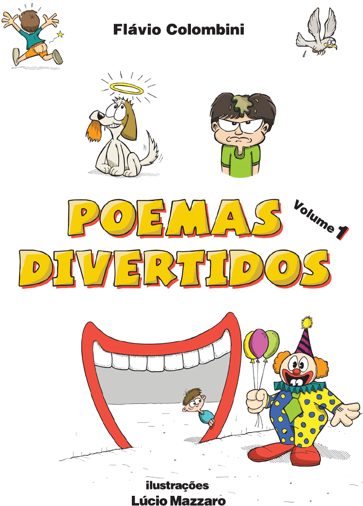Capa O autor agradece a Deus e a todas as pessoas que gentilmente o ajudaram na elaboração deste livro. Copyright © 2018 by Flávio Colombini Ilustrações: Lúcio Mazzaro Colorização: Marcel Matsunaka Projeto gráfico: Flávio Colombini A Marcela é magrela e banguela. Mas eu sou apaixonado por ela. Julinha tem uma galinha, Pedrinho tem um peixinho, Paulinho tem um passarinho, Caio tem um papagaio, João tem um cão, Nonato tem um gato, e Renato tem um rato. Que chato! Só eu, coitadinho, que não tenho nenhum bichinho. A tia Donata viu uma barata e se assustou... Tropeçou numa lata e caiu como uma pata. Fui bater uma figurinha, bem assim... Mas a figurinha ficou brava e bateu em mim. Pode chegar perto pra ver, ele não vai morder! NHAC! Nossa Senhora! Ele nunca mordeu ninguém... Até agora. Estava descansando na sombra quando vi uma linda pomba. Acho que ela é danada. Vou me mandar antes de levar uma rajada! Mas a pomba de mim zomba. Não consegui fugir... Levei bomba! A Teca é uma moleca. Ela tirou meleca do nariz e pôs na panqueca da Taís, que não percebeu e comeu. Eca! Eu ia comer minha lasanha quando percebi uma coisa estranha... – Aaaaah! – eu gritei. – Tem uma aranha na minha lasanha! Mas meu pai não acreditou e falou: – Filho, deixa de manha! Come sua lasanha, se não, você apanha! Minha mãe não deixa eu brincar. Ela sempre acha que vou me machucar. Desça da árvore! Não suba no muro! Não empine a bicicleta! Não brinque no escuro! Saia daí! Você vai cair! Não se preocupe, mãe! Tudo isso faz parte da aventura da vida. Se eu cair... Me levanto logo em seguida. O Beto queria aprender o alfabeto. Só que a professora dizia: “A, B, C...” e ele repetia: “A, C, B...” E ele não aprendia que C, de CASA, não é B, de BOLA. Mas dizia que B, de BALA, era C, de COLA. De-mo-rou para o Beto aprender o alfabeto e deixar de ser analfabeto. O senhor Batista é um senhor artista! Ele é ciclista, flautista, malabarista e, além de tudo, é equilibrista! Eu estava tomando sorvete, bem sossegado, quando meu sorvete olhou pro lado e viu passar uma linda sorveta, de vários sabores e de belas cores. Aí, o meu sorvete se derreteu de amores. Dizem que ninguém é perfeito. Mas eu não aceito muito bem esse conceito. Vejam comigo, por exemplo, os meus amigos: O João tem um cabeção, o José tem um baita chulé, o Paulão tem um narigão, a Marcinha tem perna tortinha, o Adriano tem orelha de abano, o Marcelo tem cabelo de cogumelo e a Renata tem cabeça chata. Eles são meus amigos do peito, e eu gosto tanto deles, me divirto tanto com eles, que nem reparo nos seus defeitos. Pra mim eles são perfeitos! Nicolau gosta de dar tchau. Com a mão, gosta de acenar para todos, em todo lugar. Tchau, mãe! Tchau, padrinho! Tchau, au-au! Tchau, gatinho! Ele dá tchau o dia inteiro, até quando está no banheiro... Ele aperta a descarga e, na mesma hora, se despede do cocô indo embora! Tchauzinho, cocozinho! Tchau! No campinho, debaixo de um belo sol, Luiza queria provar pros meninos que menina sabe jogar futebol. Os meninos começaram a rir e a zoar, mesmo assim, deixaram ela jogar. Ela correu, passou, recebeu, driblou, chutou e... Goooool !!!! Ninguém mais duvidou que Luiza jogava bem e sabia fazer gol. Ninguém vai me achar, eu tenho certeza, pois me escondi num lugar que é uma beleza. Será que eu saio agora? Não. Quero ser o último a ser achado, mesmo que demore uma hora para eu ser encontrado. Aqui eu vou ficar, aconteça o que for, vou tentar aguentar esse tremendo fedor. Também, por que eu fui querer fazer isso? Me esconder numa lata de lixo. Será que devo ter medo do morcego? O morcego é negro, parece um rato voador e é um pouco assustador. Mas eu não vou me apavorar, vou encará-lo e perguntar: Seu morcego, não se zangue, mas... Você gosta de frutas ou de sangue? O Bichão Comilão comeu dez pastéis, nove bruchoves, oito biscoitos, sete chicletes, seis pequinês, cinco brincos, quatro ratos, três pavês, dois arroz e depois soltou um pum. A Fome estava com sede e a Sede estava com fome. Então, as duas entraram num duelo mortal: Um passo, dois passos, três passos e... PUM! PUM! A Fome matou a Sede e a Sede matou a Fome. O cozinheiro caprichoso fez um arroz gostoso, um feijão saboroso e um bife delicioso. Só que o cozinheiro caprichoso não me deu nem um pouquinho, porque ele era guloso e comeu tudo sozinho. A cozinheira assombrosa fez uma meleca pastosa, uma gosma gelatinosa e uma caca oleosa. Aí, ela deu tudo para a gente comer e ainda tinha coragem de dizer que a comida dela era gostosa. Mas era horrorosa! Sou um pequeno consumidor e gosto de comprar tudo que tem valor. Comprar, comprar, comprar é o meu lema. Mas tem um problema: Eu não tenho dinheiro pra comprar, comprar, comprar. Por isso, eu preciso pedir, implorar, chorar, gritar, espernear... Vale tudo pra conseguir comprar, comprar, comprar. A Rita grita de euforia. A Rita grita de alegria. A Rita grita quando canta sua música favorita. A Rita grita tão alto que os vidros quebram e tudo se agita. A Rita grita taaaanto que todo mundo se IRRITA!!! Não sei se devo brincar ou se devo estudar. Tenho mais vontade de brincar, mas sei que preciso estudar. Ah, como eu queria que estudar fosse tão bom quanto brincar! Eu não gostava de estudar, só queria saber de brincar. Mas minhas notas começaram a baixar e não sabia mais o que fazer. Daí, eu descobri que estudar é brincar de aprender, que conhecer coisas novas é um grande prazer. E foi assim que eu percebi que estudar é tão legal quanto brincar. baixar O Luizinho chutou a bola no vizinho. Devagarzinho, ele pulou o portão e pegou a bola do chão. Então, apareceu um cachorrão, que mordeu o seu bumbum e arrancou o seu calção. Aí, o Luizinho fugiu dali rapidinho... Com a bola, não sabia se escondia o bumbumzinho ou o pintinho. A Joana vai dançar com o João, a Tina vai dançar com o Tião, o Fábio vai dançar com a Fabiana,