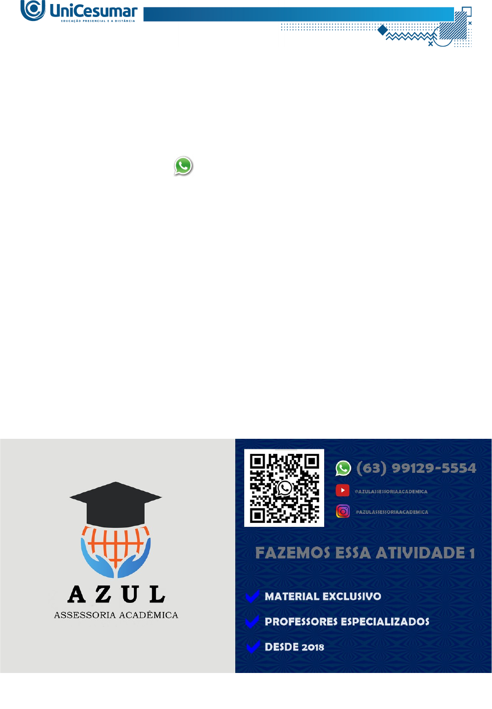 Olá, aluno(a)! Está com dificuldade ou sem tempo para elaborar essa atividade? Iremos te ajudar! Entre em contato (63) 99129-5554 ATIVIDADE 1 – BEDU - MEDIDAS E AVALIAÇÃO EM EDUCAÇÃO FÍSICA - 51/2024 Em um protocolo de avaliação física, a avaliação da composição corporal é fundamental para identificar aspectos determinantes para a boa saúde de uma pessoa. É por meio dessa avaliação que podemos estimar os principais componentes da massa corporal total, como a massa magra e a massa gorda. Fonte: BRANCO, B. H. M.; MATSUO, A. R.; FOLLMER, B. Medidas e avaliação em educação física. Maringá: UniCesumar, 2019. Nesse contexto, suponha que Giovanni está iniciando sua prática de exercícios físicos na academia e, inicialmente, foi submetido à avaliação física. Alguns dos dados obtidos nessa avaliação estão descritos logo a seguir: Data da avaliação: 27/02/2024 Sexo: masculino Data de nascimento: 11/01/2008 Massa Corporal: 69,5kg Estatura: 1,73m Dobra cutânea do Subescapular: 16,8mm Dobra cutânea do Tríceps: 12,1mm Com base nas informações apresentadas, responda: a. Qual o Índice de Massa Corporal (IMC) de Giovanni? (Você deve apresentar o cálculo completo e a resposta). b. Qual o diagnóstico do IMC de Giovanni? (Consultar o guia “ABC do IMC” para realizar essa classificação que se encontra no “Material da disciplina” no Studeo) c. Qual o percentual de gordura corporal de Giovanni? (Consultando o livro da disciplina, atente-se às dobras cutâneas apresentadas para selecionar uma equação de predição adequada)