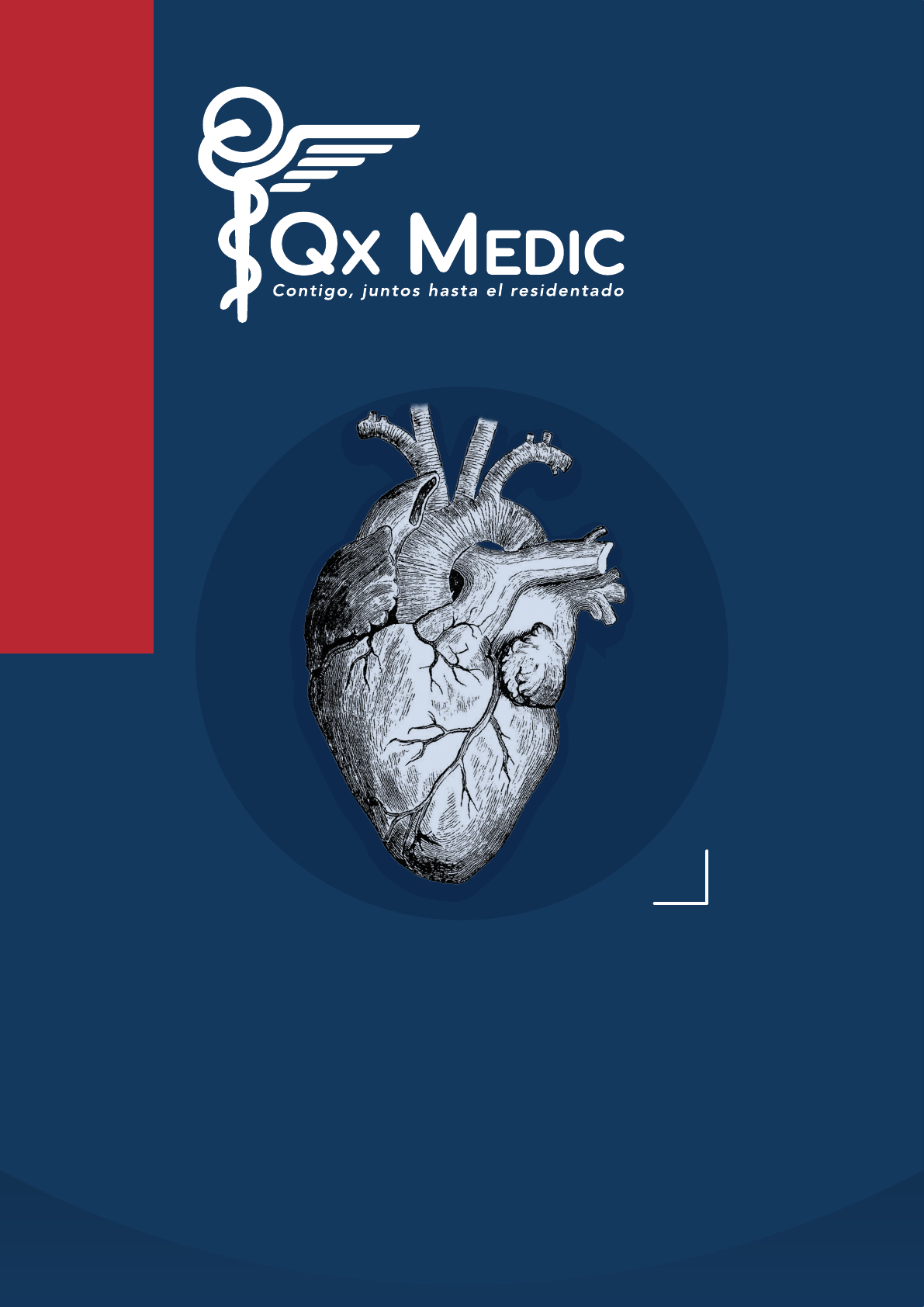 C A R D IO LO G ÍA Residentado Médico Dr. Jaime Torres Grupo Qx Medic ® 2021 ®Grupo Qx MEDIC Dr. Jaime Torres Lima. Perú www.qxmedic.com 01UNIDAD 12: Insuficiencia cardíaca 12.1 Definición........................................................................... 01 12.2 Etiología............................................................................. 01 12.3 Epidemiología.................................................................... 01 12.4 Fisiopatología.................................................................... 01 12.5 Clasifiación......................................................................... 02 12.7 Clasifiación funcional ICC (New York Heart Asociation)... 05 12.8 Clasifiación de la American Heart Association (AHA)....... 05 12.9 Tratamiento........................................................................ 05 12.10 Complicaciones................................................................ 07 12.11 Pronóstico........................................................................ 07 12.6 Diagnóstico........................................................................ 03 23UNIDAD 16: Sepsis 16.1 Definición........................................................................... 23 16.2 Etiología............................................................................. 23 16.3 Factores de riesgo.............................................................. 23 16.4 Fisiopatología..................................................................... 23 16.5 Diagnóstico........................................................................ 24 16.6 Tratamiento....................................................................... 24 08UNIDAD 13: Edema agudo pulmonar cardiogénico 13.1 Definición............................................................................ 08 13.2 Patogenia........................................................................... 08 13.3 Diagnóstico........................................................................ 08 13.4 Tratamiento........................................................................ 08 18UNIDAD 15: Shock 15.1 Definición........................................................................... 18 15.2 Fisiopatología..................................................................... 18 15.3 Clasificación........................................................................ 18 15.4 Tratamiento....................................................................... 22 10UNIDAD 14: Disrritmias 14.1 Definición........................................................................... 10 14.2 Clasificación....................................................................... 10 1 Jaime Torres UNIDAD 12: INSUFICIENCIA CARDÍACA 12.1 DEFINICIÓN Síndrome clínico causado por la alteración del llenado ventricular (↓diástole) o la eyección de sangre (↓sístole), provocando una incapacidad del corazón para mantener un gasto cardiaco adecuado para las demandas metabólicas del organismo. 12.2 ETIOLOGÍA - Las dos principales causas subyacentes (determinantes) son la cardiopatía isquémica y la HTA en el adulto (ENARM 2012) y las cardiopatías congénitas en niños. También tenemos a las miocardiopatías, valvulopatías, etc. - El factor de descompensación (causa desencadenante) más importante es la suspensión del tratamiento (diuréticos), pero también están las infecciones, arritmias, anemia, tormenta tiroidea, crisis de angustia, aumento de sal en la dieta o fármacos como los AINES o calcioantagonistas. 12.3 EPIDEMIOLOGÍA - La incidencia es mayor entre los afroamericanos y los hispanos. - La incidencia aumenta con la edad: ∼ el 10% de las personas > 60 años se ven afectadas. - La cardiopatía sistólica es la forma más común de IC en general. 12.4 FISIOPATOLOGÍA Insuficiencia cardíaca con fracción de eyección reducida (IC sistólica) - Reducción de la contractilidad → disfunción sistólica → disminución de la fracción de eyección ventricular izquierda (FEVI) → ↓ gasto cardíaco Insuficiencia cardíaca con fracción de eyección conservada (IC diastólica) - Disminución del llenado ventricular → disfunción diastólica → aumento de presión diastólica → ↓ gasto cardíaco El común denominador de la insuficiencia cardiaca (IC) es la caída del gasto cardiaco, lo cual activa una serie de mecanismos neurohormonales, que al inicio buscan la homeostasis, pero al final, son deletéreos para la función cardíaca. Se activan el tono simpático (SA) → secretando catecolaminas (norepinefrina) y el sistema renina angiotensina aldosterona (SRA-A) → produciendo angiotensina II → aumenta la secreción de aldosterona y ADH (vasopresina), estas sustancias buscan aumentar la presión y la volemia, así poder compensar la caída del gasto cardiaco y mantener la perfusión de los órganos esenciales. La retención de sodio y agua por el riñón en la insuficiencia cardíaca se debe al flujo sanguíneo renal disminuido (por la ↓GC) y por la fracción de filtración disminuida. Al final se produce un aumento de la poscarga (↑resistencia vascular), así como de la precarga (↑volemia), lo cual genera un remodelado cardiaco (fibrosis, hipertrofia) que se asocia con la mortalidad del paciente. Las sustancias que se contraponen a todos estos mecanismos cardiopatogénicos son los péptidos natriuréticos (PNB), que interpretan la distención de las cavidades cardiacas como una situación real de hipervolemia, induciendo natríuresis (↓precarga), vasodilatación (↓poscarga) y es un antifibrótico (cardioprotector endógeno). Este efecto, sin embargo, es limitado y mucho menor a los anteriormente descritos. Figura 72. Fisiopatología de la insuficiencia cardiaca Las tres causas principales de insuficiencia cardíaca son la enfermedad de las arterias coronarias, la hipertensión (ENARM 2012) y la diabetes mellitus. 2 Jaime Torre