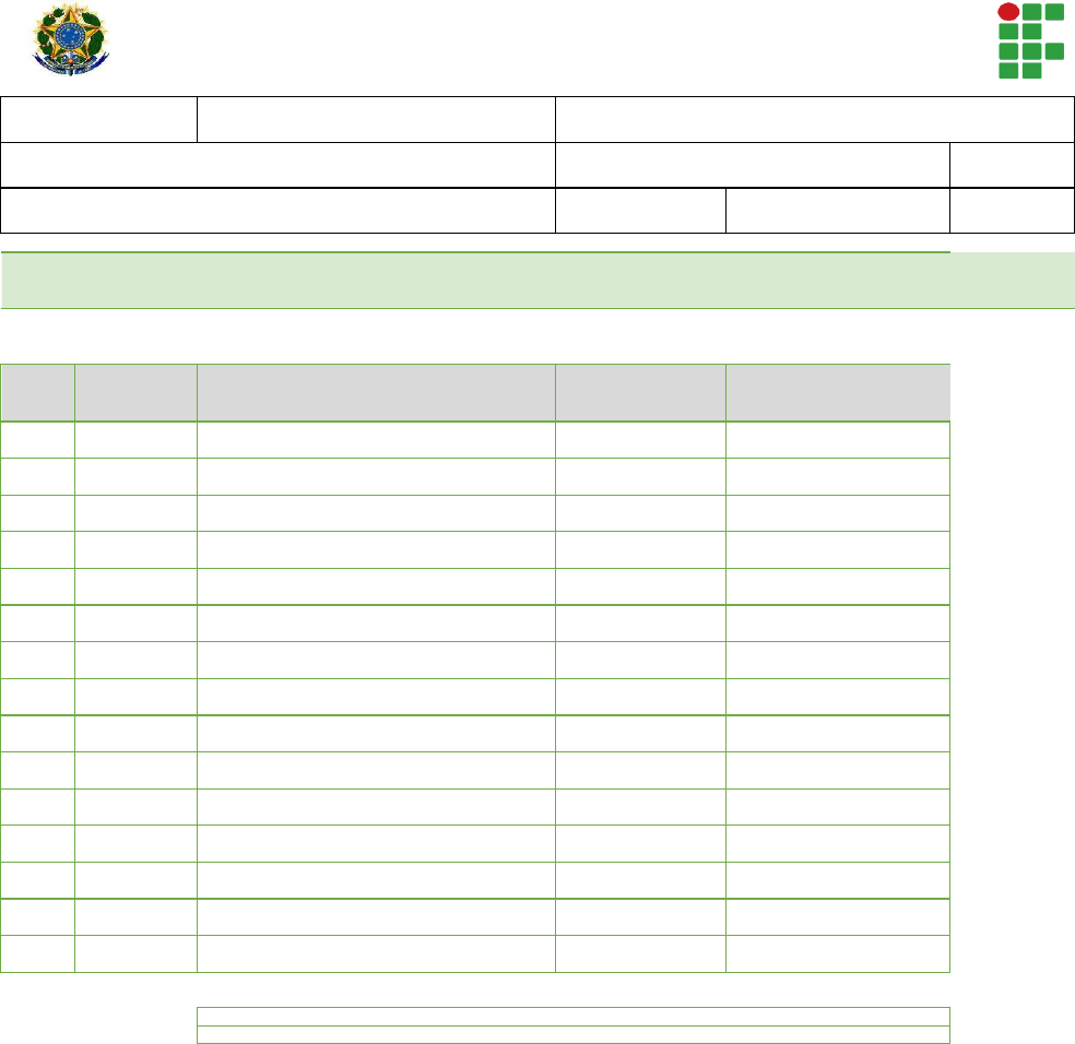 EDITAL N° 07/2023/CMI/IFPA, de 29 de maio de 2023. MODALIDADE PRESENCIAL TURNO QTD. VAGAS Noturno 21 # N. INSC. NOME SITUAÇÃO MOTIVO 1 1019 ALINE DANIELE SOUSA BRITO INSCRIÇÃO NÃO HOMOLOGADA ITEM 7.3 DO EDITAL 2 1020 ANTÔNIO JOSE RODRIGUES DOS SANTOS INSCRIÇÃO NÃO HOMOLOGADA ITEM 7.1 DO EDITAL 3 1021 CARLOS EDUARDO BENÍCIO SANTOS GONÇALVES INSCRIÇÃO HOMOLOGADA 4 1022 ELIVANIA OLIVEIR DE SOUZA INSCRIÇÃO HOMOLOGADA 5 1023 EVELYN SAMIRA SILVA SOUSA INSCRIÇÃO NÃO HOMOLOGADA ITEM 7.3 DO EDITAL 6 1024 GARY KELLEY SODRÉ DOS ANJOS INSCRIÇÃO HOMOLOGADA 7 1025 HILDENILSON DE SOUZA LIMA INSCRIÇÃO NÃO HOMOLOGADA ITEM 7.3 DO EDITAL 8 1026 KAYAN QUERA DE ALVES ALMEIRA INSCRIÇÃO HOMOLOGADA 9 1027 MARCILENE VIEIRA D EOLIVEIRA INSCRIÇÃO HOMOLOGADA 10 1028 MARCOS HERNANDES SILVA FERREIRA INSCRIÇÃO HOMOLOGADA 11 1029 MARIANA DOS SANTOS RAMOS INSCRIÇÃO HOMOLOGADA 12 1030 RAIELY ALMEIDA DA SILVA INSCRIÇÃO HOMOLOGADA 13 1031 STHEFANY MAGALHAES RODRIGUES INSCRIÇÃO NÃO HOMOLOGADA ITEM 7.3 DO EDITAL 14 1032 THIAGO COSTA LOPES INSCRIÇÃO HOMOLOGADA 15 1033 VITORIA EVELLYN SILVA DE FREITAS INSCRIÇÃO NÃO HOMOLOGADA ITEM 7.3 DO EDITAL LEGENDA SERVIÇO PÚBLICO FEDERAL MINISTÉRIO DA EDUCAÇÃO INSTITUTO FEDERAL DE EDUCAÇÃO, CIÊNCIA E TECNOLOGIA DO PARÁ COMISSÃO DE PROCESSO SELETIVO - PROCESSO SELETIVO ESPECIAL PARA CURSOS SUPERIORES DE GRADUAÇÃO PROCESSO SELETIVO PERÍODO DE MATRÍCULA 05/06/2023 a 15/06/2023 9.1.1 Serão analisadas a documentação dos candidatos que ficarem classificados até o limite de duas vezes a quantidade de vagas ofertadas por curso/turno/turma/campus. Inscrição Homologada = inscrição aceita para próxima etapa Inscrição Não Homologada = candidato eliminado PSE Graduação 2023.2 UNIDADE ACADÊMICA RELATÓRIO Campus Marabá Industrial Homologação de Inscrição - Preliminar CURSO Licenciatura em Informática