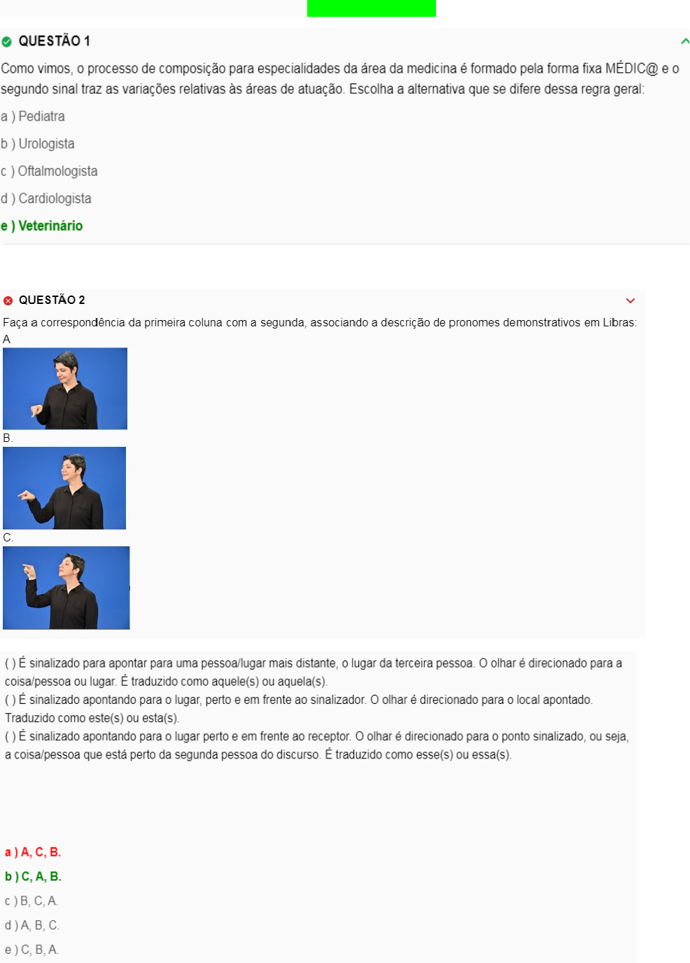LÍNGUA BRASILEIRA DE SINAIS – LIBRAS – respostas em verde