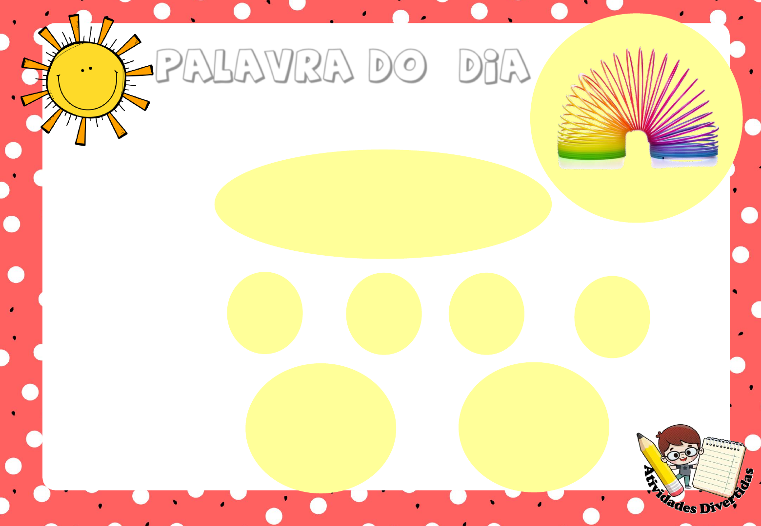PALAVRA DO DIA SÍLABAS: MO LA LETRAS: M O L A PALAVRA: MOLA PALAVRA DO DIA SÍLABAS: BO LA LETRAS: B O L A PALAVRA: BOLA PALAVRA DO DIA SÍLABAS: MA LA LETRAS: M A L A PALAVRA: MALA A BOLA DO RUI RUI É UM MENINO MUITO FELIZ. ELE AMA JOGAR BOLA COM SEUS AMIGOS. RUI CHUTA A BOLA QUE VAI DIRETO PARA O GOL. O MENINO CHUTA A___ MALA BOLA MOLA A MOLA DE MALU MALU GANHOU UMA MOLA NO DIA DO SEU ANIVERSÁRIO. MALU AMOU O PRESENTE E BRINCA O TEMPO TODO COM ELE. MALU GANHOU UMA___ MALA MOLA BOLA A MALA DE MARI MARI AMA VIAJAR. TODAS AS FÉRIAS ELA ARRUMA SUA MALA E VIAJA PARA ALGUM LUGAR DO BRASIL. MARI ARRUMOU SUA _____ E FOI VIAJAR. BOLA MOLA BOLA BO LA BO LA MO LA MOLA BOLA MALA