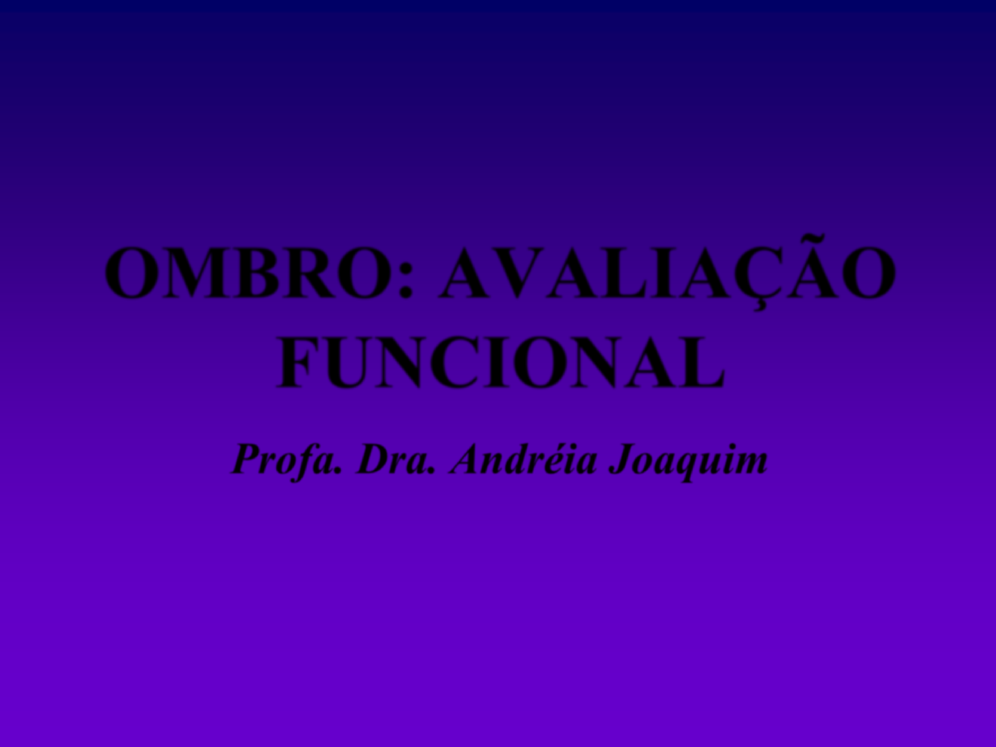 OMBRO: AVALIAÇÃO FUNCIONAL Profa. Dra. Andréia Joaquim AVALIAÇÃO OMBRO E CINTURA ESCAPULAR DOR REFERIDA • A dor é sentida em outro local que não o tecido lesado: – Coluna cervical (C4 E C5) – Coração e diafragma (C4 E C5) – Local: acromioclavicular e esternoclavicular. HISTÓRICO DO PACIENTE • Idade: – 10 - 35: instabilidade atraumática – 30 - 50: lesão do manguito rotador – + 45: ombro congelado – + 50: espondiloartrose cervical HISTÓRICO DO PACIENTE • Trauma ? Qual mecanismo ? • Profissão • Elevação acima da cabeça? – Melhor / Pior INSPEÇÃO Inspeção • Paciente – entrada na sala de exame • Observação da marcha • Comparação bilateral • Paciente despido i. contornos ósseos ii. tecidos moles Inspeção Examinador - Observação • cabeça • coluna cervical • tórax (dorso) • membro superior • mãos Inspeção Observar a presença i. escaras ii. abrasões iii. vesículas iv. equimoses Equimoses Equimoses Inspeção “Observação do paciente quando ele remove as roupas do corpo superior e mais tarde quando ele veste novamente.” Membro afetado é despido por último ou vestido primeiro Inspeção Indicação de restrição funcional Dor ou fraqueza no membro superior Inspeção Incidência Anterior 1. Deformidade em degrau (luxação acromioclavicular) 2. Sinal do sulco (luxação glenoumeral ou instabilidade ) 3. Achatamento da área do músculo deltóide (luxação anterior do úmero ou paralisia do deltóide) 4. Saliências anormais ou desalinhamento nos ossos 1.Deformidade em degrau 1.Lesão acrômioclavicular 1.1Lesão acrômioclavicular 1.2Lesão acrômioclavicular 1.3Lesão acrômioclavicular e Coracoclavicular 2.Luxação glenoumeral 2.Luxação glenoumeral 2.Luxação glenoumeral 2.Luxação glenoumeral 2.Sinal do sulco Inspeção Incidência Posterior 1. Escápula 2. Espinha da escápula 3. Atrofia da músculo trapézio (paralisia do nervo acessório) 4. Atrofia dos músculos supra e infra espinhal 5. Escápula alada 6. Deformidade de Sprengel Escápula alada Escápula alada 1. Asa estática • escápula alada ocorrendo em repouso • causas - deformidades i. escápula ii. clavícula iii. coluna iv. costelas 2. Asa rotacionada • ângulo inferior da escápula • rotação • + distante da coluna vertebral • escápula contra-lateral Escápula alada Escápula alada 3. Asa dinâmica • alada durante o movimento • causas i. lesão do n. torácico (afetando o serrátil anterior) ii. paralisia do m. trapézio (n. acessório) iii. fraqueza dos m. rombóides iv. instabilidade multidirecional (fraqueza do manguito) Deformidade de Sprengel Deformidade de Sprengel • escápula congênita alta ou não descida • mm. escapulares pouco desenvolvidos • uni ou bilateral • ADM ombro na abdução • escápula é rodada medialmente • escápula com inserção + alta • encurtamento no pescoço PALPAÇÃO Palpação • 1° contato com o paciente • temperatura da pele • observação - espasmo muscular, dor à palpação ou saliências anormais • sistemática Palpação Estruturas Anteriores • palpadas com o paciente nas posições i. decúbito dorsal ii. sentada Estruturas Posteriores • palpadas com o paciente nas posições i. decúbito ventral ii. sentada Palpação - Estruturas Anteriores 1. Clavícula • toda extensão • dor à palpação • saliências anormais – calo ósseos • verificar sua posição de repouso i. luxação esterno-clavicular ii. luxação acrômio-clavicular Articulação esterno-clavicular: • Palpar bilateralmente; • Palpar a articulação e as clavículas Acrômio Palpação - Estruturas Anteriores 2. Articulação esterno-clavicular • posicionamento normal em relação ao esterno e 1° costela • espasmos musculares – m. escaleno i. resultam em da 1° costela no lado afetado Articulação esterno clavicular: Palpação - Estruturas Anteriores 3. Articulação acrômio-clavicular • posicionamento normal • presença de dor e espasmos i. ligamento de sustentação (acrômio- clavicular e coracoclavicular) ii. mm. trapézio, subclávio e deltóide Articulação acrômio clavicular Palpação - Estruturas Anteriores 3. Articulação acrômio-clavicular • dolorida + crepitação = 2ária a osteoartrite • paciente – flexão/extensão várias vezes, sentindo os movimentos articulares com os dedos Palpação - Estruturas Anteriores 4. Processo coracóide • 2,5 cm abaixo dos 2/3 mediais da clavícula • inserção do músculo peitoral menor • origem dos músculos i. bíceps (cabeça curta) ii. coracobraquial Processo coracóide: Palpação - Estruturas Anteriores 5. Esterno • anormalidade ou dor à palpação 6. Costelas e cartilagens costais • dor à palpação • de volume Palpação - Estruturas Anteriores 7. Úmero • tubérculo maior • incisura bicipital i. cautela – passagem do tendão da porção longa do bíceps ii. pressão – ferir o paciente iii. dificuldades no progresso do exame Tuberosidade maior Tuberosidade maior e menor / tendão do bíceps: Palpação - Estruturas Anteriores 8. Manguito rotador • palpados como uma unidade contígua • + possibilidades de ruptura – m.supra- espinhal (próximo a inserção) Palpação - Estruturas Anteriores 9. Axilas a. m. grande dorsal b. m. peitoral maior c. m. serrátil anterior d. linfonodos e. artéria braquial Palpação da axila: Palpação - Estruturas Anteriores a. Músculo grande dorsal • pouca importância clínica b. Músculo peitoral maior • observar o tecido mamário - massas • ausência congênita – Síndrome de Poland Palpação - Estruturas Anteriores c. Músculo serrátil anterior • impede que a escápula penda, protração. • ancora a margem vertebral da escápula à caixa torácica • hipotônia do músculo Serrátil anterior: Músculo coracobraquial Músculo Grande Dorsal: Músculo Peitoral Maior Músculo Esternocleidomastóide Músculo Peitoral Maior: Ar