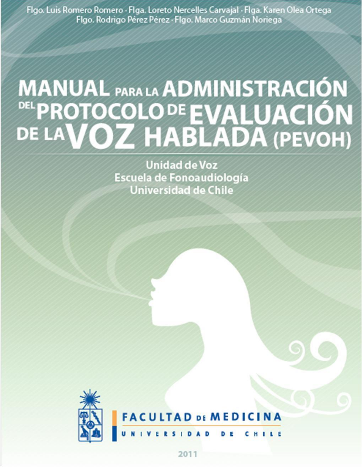 2 Autores L Autores: Luis Romero Loreto Nercelles Karen Olea Rodrigo Pérez Marco Guzmán Ediciones Escuela de Fonoaudiología Facultad de Medicina Universidad de Chile Registro ISBN N° 956-19 ©Derechos reservados Prohibida su reproducción Primera Edición Diciembre 2011 Corrección Enero 2013 Prof. Luis Romero Flga. Karen Olea O. Flgo. Rodrigo Pérez Flgo. Marco Guzmán Índice PRESENTACIÓN .................................................................................................................................... 5 DESCRIPCIÒN DEL PROTOCOLO .......................................................................................................... 7 Consideraciones Iniciales .................................................................................................................. 7 Aplicación del Protocolo ................................................................................................................. 9 ANAMNESIS ............................................................................................................................... 10 EVALUACION PARÁMETROS NO LOCUTIVOS ............................................................................ 17 EVALUACIÓN DE PARÁMETROS LOCUTIVOS ............................................................................. 31 COMPLEMENTOS ....................................................................................................................... 36 BIBLIOGRAFÍA .................................................................................................................................... 38 ANEXOS ............................................................................................................................................. 39 ANEXO 1 ........................................................................................................................................ 40 ANEXO 2 ........................................................................................................................................ 41 ANEXO 3 ........................................................................................................................................ 42 4 AGRADECIMIENTOS Este manual es resultado del esfuerzo, trabajo y dedicación de los miembros de la Unidad de Voz de la Escuela de Fonoaudiología de la Universidad de Chile y de la colaboración de varios actores que contribuyeron a su realización. Todos motivados por las ganas de aportar al conocimiento y a la clínica. Es por esto que agradecemos a: Jorge Montesinos, Diseñador Gráfico Universidad de Chile, por la realización de la portada y parte del material ilustrativo. Oscar Scheihing, Diseñador Gráfico Universidad de Chile, Diplomado de Ilustración Universidad Católica, por la realización de parte del material ilustrativo utilizado en esta publicación. Francisca Van Capel por participar en las fotografías. Y muy especialmente a los profesionales, quienes nos brindaron parte de su tiempo y experiencia en la revisión externa del PEVOH y su Manual; Laura Neira, Licenciada en Fonoaudiología, Universidad del Museo Social Argentino. Especialista en la Educación y Recuperación de la Voz Hablada y Cantada. Cantante, y Maestra de Canto. Profesora titular (Universidad del Museo Social Argentino) y IUNA (Instituto Universitario Nacional del Arte), Artes del Movimiento. Directora de la Escuela de Argentina de Canto®. Docente del Posgrado de Especialidad en Voz, ASALFA. Autora de los libros “La Educación de la voz" y “Teoría y técnica de la voz. El método Neira de educación vocal" y "Por el Placer de Cantar". Coach vocal de destacados cantantes y artistas del medio teatral y televisivo. Autora de artículos científicos en la especialidad. Arnaldo Caroca, Fonoaudiólogo U. de Chile, Jefe Carrera Fonoaudiología de la Universidad de Concepción. María Elisa Cuevas, Fonoaudióloga U. de Chile, Docente Clínico U. de Chile y Prof. Universidad Mayor. Soledad Narea, Licenciada en fonoaudiología U. de Chile. Diplomada en Gestión de RRHH, Universidad de Santiago. Profesor Auxiliar, Subdirectora Fonoaudiología Universidad de Valparaíso Campus San Felipe, coordinadora área de Voz. Juan Carlos Painepán, Unidad de Voz, Servicio Otorrinolaringología Hospital Clínico de la Universidad de Chile. Docente del módulo Patología de la Voz y Lenguaje de la Escuela de Postgrado de la Universidad de Chile. Docente área de voz de la Universidad Austral de Chile. 5 PRESENTACIÓN El presente texto se conforma como un manual necesario para entender y poder aplicar el protocolo de evaluación de la voz hablada (PEVOH). Es el documento preciso para comprender qué y cómo evaluar la voz de cualquier sujeto que requiera un diagnóstico clínico de su condición vocal. Su propósito es explicar cuáles son los parámetros que se consideraron indispensables, intentando dar una definición lo más precisa acerca de lo que se entiende por cada uno, sus variantes y cómo se debe proceder clínicamente para la verificación correcta de ellos. Nuestra intención fue hacer un texto amigable, fácil de comprender y de aplicar. Aún así debemos aclarar que está referido a un área especializada de la fonoaudiología. Es por esta razón que las personas que lo usen, deben ser del ámbito fonoaudiológico (y afines) para quienes el texto será más asequible. El Protocolo de Evaluación de la Voz Hablada (PEVOH) fue creado en la Unidad de Voz de la Universidad de Chile el año 2011; basado principalmente en el “Protocolo de Evaluación Vocal” de Romero (1999), el que por muchos años pasó de mano en mano como un instrumento de evaluación; pero habían muchas diferencias de criterios inter evaluadores, tanto en lo referido a los contenidos y la forma de obtener los datos; diferencias que eran aún más notorias en sujetos que no habían sido formados (en el área de voz) por el Prof. Luis Romero. Es por eso, que los fono