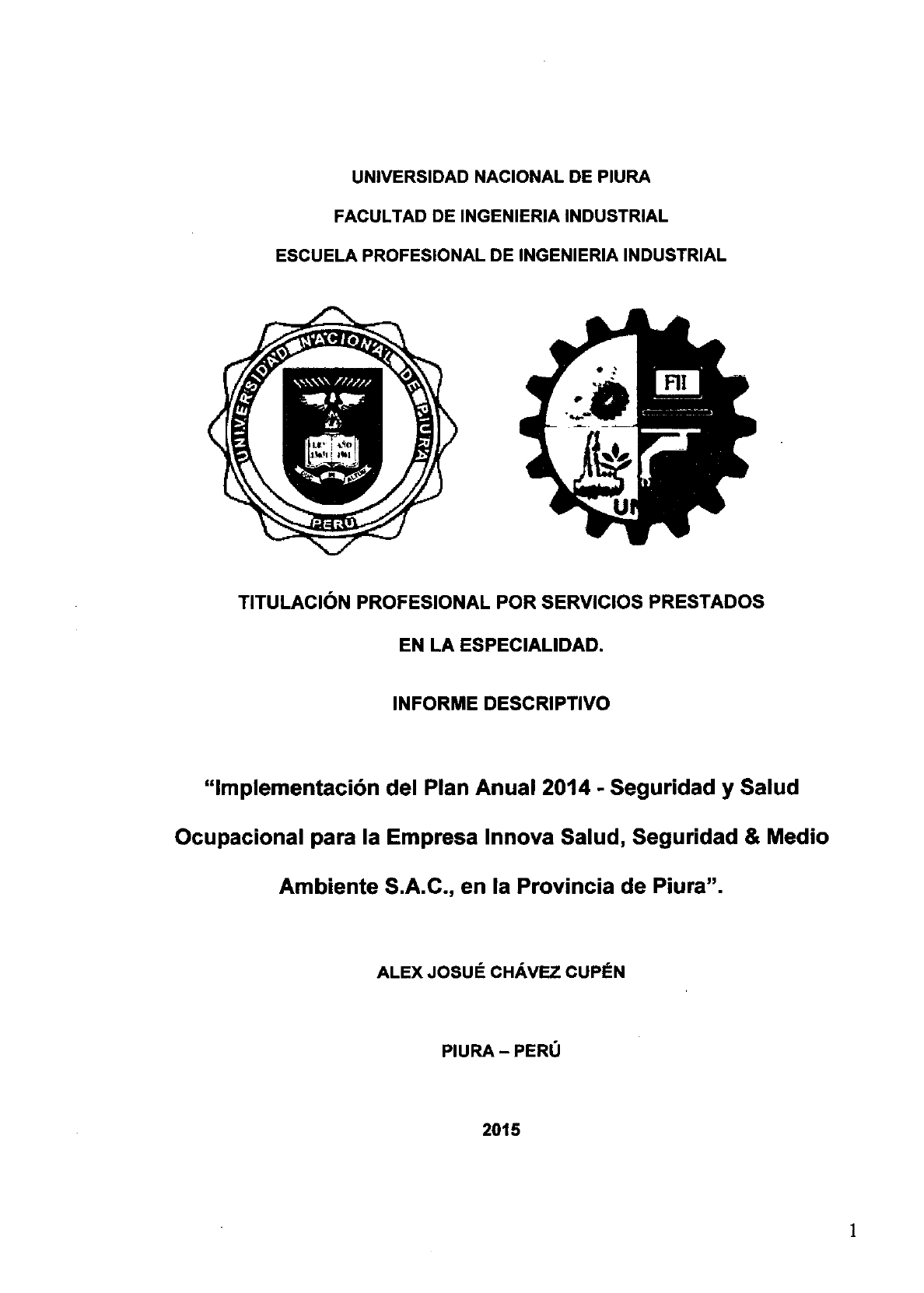 N°0407-D.Fil-UNP-15 de fecha 02 de junio del2015, del Informe Descriptivo por