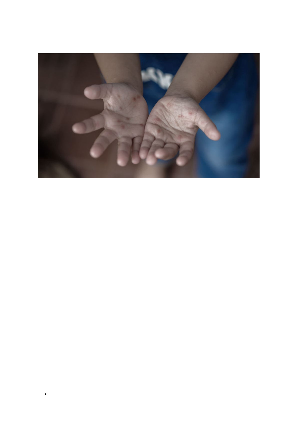 1/5 Síndrome mão-pé-boca: sintomas e tratamento O que é a doença mão-pé-boca? A síndrome mão-pé-boca (SMPB), também chamada de doença mão-pé-boca (DMPB), é uma infecção viral contagiosa muito comum em crianças, caracterizada por pequenas feridas na cavidade oral e erupções nas mãos e nos pés. A síndrome mão-pé-boca é provocada habitualmente, mas não somente, pelo Coxsackievirus A16. Casos da SMPB também podem ser provocados por outros sorotipos do Coxsackie, tais como o Coxsackievirus A2, A4 ao A10, B2, B3 ou B5. Outros vírus, como o Echovirus 1, 4, 7 ou 19, ou o Enterovirus A71 também podem ser o agente causador, provocando sinais e sintomas muito semelhantes. A SMPB é, na maioria dos casos, uma doença branda e benigna, que desaparece espontaneamente após alguns dias sem causar nenhum tipo de complicação. O maior problema costuma ser o risco de desidratação, pois a dor de garganta pode fazer com que a criança pare de aceitar alimentos e líquidos. Raramente, quando a síndrome é provocada pelo vírus Enterovirus A71, ela pode ser mais perigosa, pois há um risco maior de complicações, como o desenvolvimento de encefalite (inflamação do sistema nervoso central), meningite ou miocardite (inflamação do músculo cardíaco). A SMPB ocorre frequentemente nas crianças com menos de 5 anos, mas pode, eventualmente, acometer adultos. De todas as principais causas de exantemas febris (febre + manchas vermelhas na pele), a doença mão-pé-boca é uma das mais fáceis de ser diagnosticada, devido ao seu típico envolvimento da mucosa oral, solas dos pés e palmas das mãos. Neste artigo, vamos nos ater apenas à síndrome mão-pé-boca, se você procura informações sobre outras causas de febre e manchas vermelhas na pele, acesse o seguinte link: 10 Causas de Febre com Manchas Vermelhas na Pele. Transmissão O vírus que causam a doença mão-pé-boca podem ser transmitidos por contato com secreções das vias respiratórias, secreções das feridas das mãos ou dos pés e pelo contato com fezes dos pacientes infectados. Isso significa que o Vírus Coxsackie (e os outros vírus causadores da SMPB) podem ser transmitidos nas seguintes situações: Beijar alguém infectado. https://www.mdsaude.com/dermatologia/manchas-vermelhas-na-pele-com-febre/ 2/5 Ter contato com secreções respiratórias, geralmente através da tosse ou espirro. Beber água contaminada. Apertar a mão de alguém contaminado. Ingerir alimentos preparados por alguém infectado, que não tenha feito a higienização adequada das mãos. Contato com brinquedos ou objetos que possam ter sido contaminados por mãos sujas. Contato com roupas contaminadas. Trocar fraldas de crianças contaminadas. Geralmente, a fase de maior contágio da síndrome mão-pé-boca é durante a primeira semana de doença. Porém, mesmo após a cura, o paciente pode permanecer eliminando o vírus nas fezes, o que o mantém contagioso durante dias ou até semanas após os sintomas terem desaparecidos. A maioria dos adultos que se contamina com o Vírus Coxsackie não desenvolve sintomas, mas eles podem ser transmissores assintomáticos do vírus. Sintomas O período de incubação da síndrome mão-pé-boca costuma ser de 3 a 6 dias. Os primeiros sintomas a surgirem costumam ser a dor de garganta e febre baixa, que fica por volta dos 38ºC. Mal-estar e perda do apetite também são frequentes. Em um primeiro momento, a doença é muito parecida com qualquer quadro de virose comum, sendo impossível o seu diagnóstico clínico nesta fase. Um ou dois dias após os primeiros sintomas, começam a surgir as lesões características que dão o nome à doença mão-pé-boca. Lesões da doença mão-pé- boca. As lesões da boca começam como pontos avermelhados que se transformam em pequenas bolhas e posteriormente em úlceras dolorosas, semelhantes às aftas comuns. Essas ulcerações surgem habitualmente na língua, na garganta, e nas partes internas dos lábios e das bochechas. O palato (céu da boca) também pode ser afetado. Nas crianças acometidas pelo Coxsackievirus A6, as lesões podem também acometer a parte externa da boca, situando-se ao redor dos lábios. https://www.mdsaude.com/wp-content/uploads/mao-pe-boca.jpg https://www.mdsaude.com/gastroenterologia/aftas-na-boca/ 3/5 Lesões periorais Um ou dois dias após o surgimento das lesões da boca começam também a aparecer as lesões nas palmas das mãos e nas solas dos pés. A ferida inicia-se como pequenas bolhas, com um halo avermelhado ao seu redor. As lesões costumam ter de 0,1 a 1 cm de diâmetro e podem se romper, liberando um líquido que é altamente contagioso. https://www.mdsaude.com/wp-content/uploads/foto-mao-pe-boca4.jpg 4/5 Síndrome mão-pé-boca A SMPB provocada pelo Coxsackievirus A6 costuma ter lesões bem mais extensas, acometendo também nádegas, coxas, braços, tronco e face. É importante destacar que nem todas as pessoas contaminadas pelo Vírus Coxsackie desenvolvem o quadro clínico completo da SMPB. 75% dos pacientes têm a síndrome completa, mas o restante pode ter apenas lesões na boca ou na pele. No caso dos adultos, a imensa maioria dos indivíduos que entra em contato com o vírus Coxsackie não desenvolve sintoma algum. Para ver mais imagens da doença mão-pé-boca, acesso o artigo: Fotos da doença mão-pé-boca. Complicações A síndrome mão-pé-boca costuma durar de 7 a 10 dias e cura-se espontaneamente, sem a necessidade de tratamento e sem causar complicações na maioria dos casos. A complicação mais comum costuma ser a desidratação, pois, além do mal-estar, a dor de garganta é muito forte, e as crianças podem parar de aceitar alimentos e líquidos. Os casos de SMPB causados pelo Enterovirus A71 também costumam ter um curso benigno, mas há um maior risco de complicações, tais como miocardite, meningite ou encefalite. Diagnóstico Nos pacientes que apresentam o típico quadro de febre, úlceras orais e 