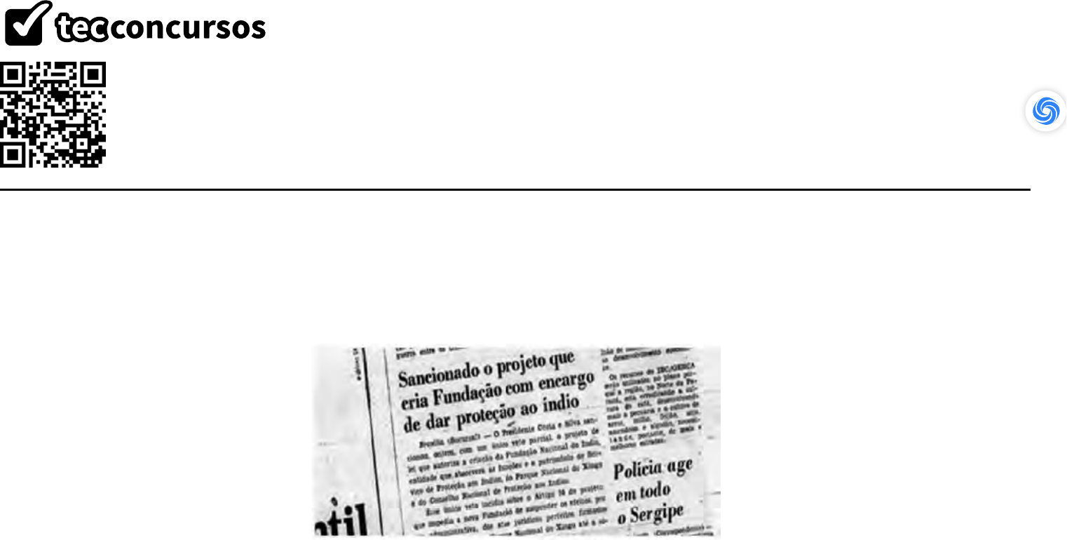 801) História do Brasil para Concurso Nacional Unificado - 2024 https://www.tecconcursos.com.br/s/Q3JGrt Ordenação: Por Matéria e Assunto (data) www.tecconcursos.com.br/questoes/1647205 INCAB (ex-FUNCAB) - Soc Educ (SEJUS RO)/SEJUS RO/2014 História - Reformas Administrativas, Investimentos e Reformas Públicas: o Brasil Potência Observe a imagem. (Extraído do Jornal do Brasil.) Em 1967, a lei nº 5.371 , de 5 de dezembro, autoriza a instituição da Fundação Nacional do Índio e dá outras providências. Isso aconteceu em meio a um período marcado por denúncias de que índios de uma tribo desconhecida atacavam grupos de seringueiros na cidade de Vila Rondônia. De acordo com a referida lei, a FUNAI incorporou as funções do: https://www.tecconcursos.com.br/s/Q3JGrt https://www.tecconcursos.com.br/questoes/1647205 802) a) Movimento Ruralista. b) Ministério do Interior. c) Ministério da Agricultura. d) Secretaria Especial da Saúde Indígena. e) Serviço de Proteção aos Índios. www.tecconcursos.com.br/questoes/2039778 VUNESP - Sold (PM SP)/PM SP/2ª Classe/2022 História - A Ordem e o Processo de Abertura Política A abertura começou em 1974, quando o general Ernesto Geisel diminuiu as restrições à propaganda eleitoral. Por que teria o general Geisel tomado a iniciativa de começar a desmontar o sistema autoritário? Em 1973 houve um aumento brusco no preço do petróleo, promovido pela Organização dos Países Exportadores de Petróleo. Os anos do “milagre” estavam contados. Nessa conjuntura, seria melhor para o governo promover a redemocratização enquanto ainda houvesse prosperidade econômica do que aguardar para fazê-lo na época de crise, quando os custos e a manutenção do controle dos acontecimentos seriam muito mais altos. (José Murilo de Carvalho. Cidadania no Brasil: o longo caminho, 2011. p. 173-174. Adaptado) Analisando-se o texto sobre o projeto oficial de redemocratização, pode-se concluir que a a) sociedade civil apoiou o cronograma das transformações políticas graduais do regime militar. b) legitimidade do regime militar dependia da manutenção do crescimento econômico. c) distensão política do regime militar contou com a aprovação consensual das forças armadas. d) abertura política resultou do enfraquecimento dos órgãos de repressão do regime militar. e) contestação social ao regime militar derivou de sua incapacidade de obter empréstimos no exterior. https://www.tecconcursos.com.br/questoes/2039778 803) www.tecconcursos.com.br/questoes/2211772 FGV - Sold (PM SP)/PM SP/2ª Classe/2022 História - A Ordem e o Processo de Abertura Política A respeito do processo de abertura política e de redemocratização iniciado a partir do Governo Geisel (1974-79), avalie as afirmativas a seguir e assinale (V) para a verdadeira e (F) para a falsa. ( ) Com o esgotamento do “milagre econômico” e o aumento da oposição, o governo militar de Geisel propõe uma abertura “lenta, gradual e segura” com iniciativas como a substituição do AI-5 por salvaguardas constitucionais e o restabelecimento de relações diplomáticas entre o Brasil e países de regime comunista. ( ) Os movimentos sociais dos anos 1970 e 1980 contribuíram para o enfraquecimento do regime militar e levaram às manifestações populares a favor de eleições diretas, com campanhas no Rio de Janeiro (Candelária) e em São Paulo (Vale do Anhangabaú) pelas “Diretas Já”. ( ) Em 1985, a chapa Tancredo Neves e José Sarney ganhou as eleições indiretas, mas a morte de Tancredo antes de assumir o cargo, tornou José Sarney o primeiro presidente civil depois de mais de duas décadas de regime militar. As afirmativas são, na ordem apresentada, respectivamente, a) V – F – V. b) V – V – F. c) F – V – V. https://www.tecconcursos.com.br/questoes/2211772 804) d) V – F – F. e) V – V – V. www.tecconcursos.com.br/questoes/897711 FCC - Ap (SABESP)/SABESP/Assistente Administrativo/2019 História - A Ordem e o Processo de Abertura Política Sobre o processo de redemocratização do Brasil, é correto afirmar: a) Foi um processo lento, com avanços e recuos no sentido da redemocratização, a exemplo da vitória da campanha pelas Diretas Já, em 1984, que garantiu a eleição direta do primeiro presidente civil, Tancredo Neves. b) Teve início durante o governo do presidente Figueiredo, que permitiu a volta do pluripartidarismo, o fim da censura e instaurou uma Comissão da Verdade para apurar os crimes políticos cometidos pelos agentes de Estado durante a ditadura. c) Foi conduzido pelos partidos de centro-direita que defendiam a exclusão das Forças Armadas da cena política, uma vez que os militares estiveram por mais de vinte anos no controle do país e este encontrava-se em grave crise econômica e de representatividade. d) Ocorreu graças à pressão e à interferência direta de organismos internacionais como a ONU, a Anistia Internacional e a Comissão Interamericana de Direitos Humanos, que atuaram no Brasil e em toda a América Latina nos anos 1980, para assegurar a volta da democracia. e) Caracterizou-se por um processo permeado por barganhas políticas, caso da Lei de Anistia, que anistiou tanto os acusados de atividades subversivas como os acusados de torturar a serviço do Estado, razão pela qual é chamado de “transição negociada”. https://www.tecconcursos.com.br/questoes/897711 805) www.tecconcursos.com.br/questoes/1418952 CEV URCA - Vest (URCA)/URCA/2019 História - A Ordem e o Processo de Abertura Política “Ela ficou chorando o tempo todo. Talvez tenha antevisto a importância que teria essa música, coisa que não percebi”. É o que conta Henfil sobre a primeira vez que ouviu a fita cassete com O bêbado e a equilibrista, a convite de Elis Regina. Pouco tempo depois, a canção de João Bosco e Aldir Blanc se tornaria o maior sucesso do disco Essa mulher, de 1979, e ganharia o apelido de “Hino da Anistia”. (O bêbado e