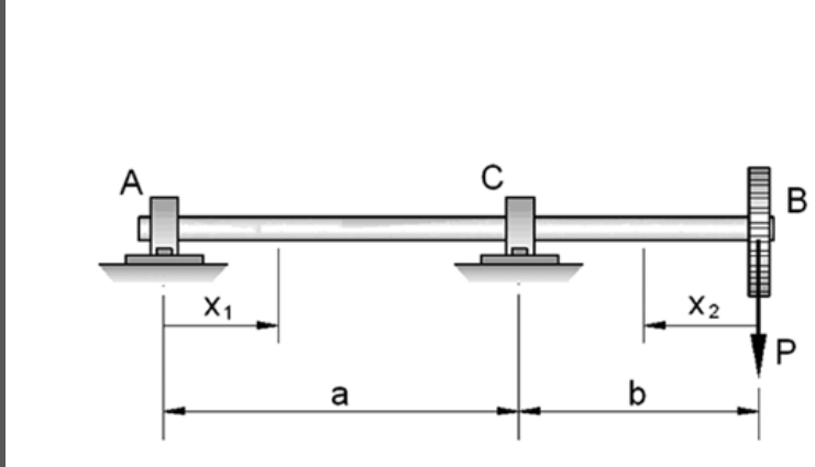 86 10 O eixo apoia-se em A por um mancal que exerce apenas ações verticais sobre ele, e em C por um mancal de encosto que exerce reações horizontal e vertical sobre tal eixo. Determinar as equações da linha elástica usando as coordenadas x 1 e x 2 . Considerar EI constante.