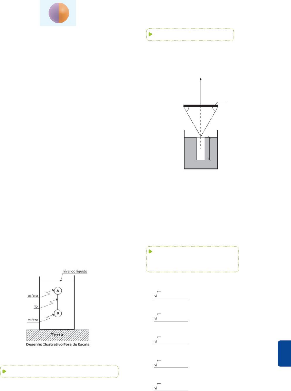 F R E N T E 2 169 46 UFPI ρ1 ρ2 Uma esfera rígida (formada pela junção do hemisfério de densidade ρ1 = 0,70 g/cm 3 com o hemisfério de densidade ρ2 = 1,1 g/cm 3) é abandonada em repouso total no interior de um tanque cheio de água de den sidade ρ = 1,0 g/cm3, na situação mostrada na gura anterior Imediatamente após ser abandonada a esfe ra deverá iniciar um movimento de: A translação para cima e um de rotação no sentido horário b translação para baixo e um de rotação no sentido horário C rotação no sentido anti-horário e nenhum movi mento de translação. rotação no sentido horário e nenhum movimento de translação E translação para baixo e nenhum movimento de ro tação. 47 UFJF 2020 Uma pessoa de 50 kg quer ficar em cima de um bloco de gelo flutuando sobre um lago de água doce. Qual deve ser o volume mínimo do bloco para que a pessoa consiga isto sem molhar os pés? Con sidere a densidade da água como 1,0 ⋅ 103 kg/m3, e a densidade de gelo como 0,9 ⋅ 103 kg/m3, e g = 10 m/s2. A 0,5 L b 0,5 kg C 0,5 m3 0,9 m3 E 5,0 m3 48 EsPCEx 2019 Duas esferas homogêneas A e B, unidas por um fio ideal na posição vertical, encontram-se em equilíbrio estático completamente imersas em um líqui- do homogêneo em repouso de densidade 1 kg/dm3, contido em um recipiente apoiado na superfície da Terra, conforme desenho abaixo. As esferas A e B possuem, respectivamente, as massas m A = 1 kg e m B = 5 kg. Sabendo que a densidade da esfera B é de 2,5 kg/dm3, o volume da esfera A é de Dado: considere a aceleração da gravidade igual a 10 m/s 2 . A 2 dm3. b 3 dm3. C 4 dm3. 5 dm3. E 6 dm3. 49 PUC-Rio 2012 Um barco flutua de modo que metade do volume de seu casco está acima da linha da água. Quando um furo é feito no casco, entram no barco 500 kg de água até o barco afundar. Calcule a massa do barco. Dados: dágua = 1 000 kg/m 3 e g = 10 m/s2 A 1 500 kg b 250 kg C 1 000 kg 500 kg E 750 kg 50 IME 2020 água barra haste D A B C60º 60º h Uma barra de metal de massa M uniformemente dis- tribuída e seção reta quadrada de lado L encontra-se totalmente submersa e sustentada pela estrutura na - gura, composta por uma haste e por os inextensíveis com massas desprezíveis. Em determinado instante, a haste começa a ser puxada lentamente pelo o cen- tral em D, de modo que a barra começa a emergir. Esse movimento durou até que apenas 25% da barra estivesse imersa, momento em que ocorreu o rompi- mento do o AB. Dados: • comprimento da barra: h; • aceleração da gravidade: g; e • massa específica da água: µ. A força de tração que leva à ruptura do o AB é: A µ3(2M hL )g 6 2 b µ3(4M hL )g 12 2 C µ3(4M hL )g 6 2 −µ3(2M hL )g 3 2 E µ3(8M hL )g 6 2 FÍSICA Capítulo 12 Hidrostática170 51 UFV Uma esfera de volume V é pendurada na extre- midade de uma mola de constante elástica K, fazendo com que a mola estique uma quantidade X (como mostra a figura a seguir) A esfera é, então, mergu lhada em um recipiente com um líquido, fazendo com que a mola passe a ficar esticada de um valor Y. Sendo g o módulo da aceleração da gravidade, a den- sidade do líquido é: X Y A ( )+K X Y gV b ( )−K X Y gV C KX gV d KY gV 52 ITA 2018 Uma esfera sólida e homogênea de volume V e massa específica ρ repousa totalmente imersa na interface entre dois líquidos imiscíveis. O líquido de cima tem massa específica ρ c e o de baixo, ρ b , tal que ρ c < ρ < ρ b Determine a fração imersa no líquido supe rior do volume da esfera. 53 ITA Um pedaço de gelo flutua em equilíbrio térmico com uma certa quantidade de água depositada em um bal de À medida que o gelo derrete, podemos afirmar que: A o nível da água no balde aumenta, pois haverá uma queda de temperatura da água. b o nível da água no balde diminui, pois haverá uma queda de temperatura da água C o nível da água no balde aumenta, pois a densida- de da água é maior que a densidade do gelo. d o nível da água no balde diminui, pois a densidade da água é maior que a densidade do gelo e o nível da água no balde não se altera. 54 Unicamp 2020 Um densímetro de posto de combustí- vel, usado para analisar o etanol, consiste de um tubo de vidro que fica parcialmente submerso no etanol. O peso do tubo é fixo, de forma que o volume do tubo que fica submerso depende da densidade do etanol Uma escala na parte superior do tubo indi ca o valor da densidade medida. a) O etanol combustível é hidratado, ou seja, contém uma porcentagem de água A figura ao lado ilustra duas medidas de densidade de etanol A primeira é de uma amostra de etanol hidratado dentro da especificação, cujo valor é ρ1 = 0,810 g/cm 3 Nessa medida, o volume submerso do densímetro é V1 A segunda medida, realizada com o mesmo densí- metro, é de uma amostra fora da especificação e, nesse caso, o volume submerso do densímetro é V2 A diferença dos volumes submersos é de 10% de V1, ou seja, ΔV = V1 V2 = 0,1V1 Qual é a densi- dade r2 da segunda amostra? etanol dentro da especificação p 1 = 0,810 g/cm3 V 1 V 2 ∆V etanol fora da especificação ) Num posto de combustível, a gasolina é bombeada do reservatório subterrâneo até o tanque do veículo, numa altura h = 3,0 m acima do nível su- perior do reservatório A gasolina, que é sempre retirada da parte superior do reservatório, en- contra-se inicialmente parada e é despejada no tanque do veículo a uma velocidade v = 0,8 m/s Qual é o aumento da energia mecânica da ga- solina proporcionado pela bomba ao encher um tanque de volume V = 40 litros? Dado: ρgasolina = 0,75 g/cm 3 . 55 Unesp 2019 Uma corda elástica, de densidade linear constante µ = 0,125 kg/m, tem uma de suas extremi- dades presa a um vibrador que oscila com frequência constante. Essa corda passa por uma polia, cujo ponto superior do sulco alinha-se horizontalmente com o vi- brador, e, na outra extremidade, suspende uma esfera de massa 1,8 kg, em repouso. A configuração da osci- laç