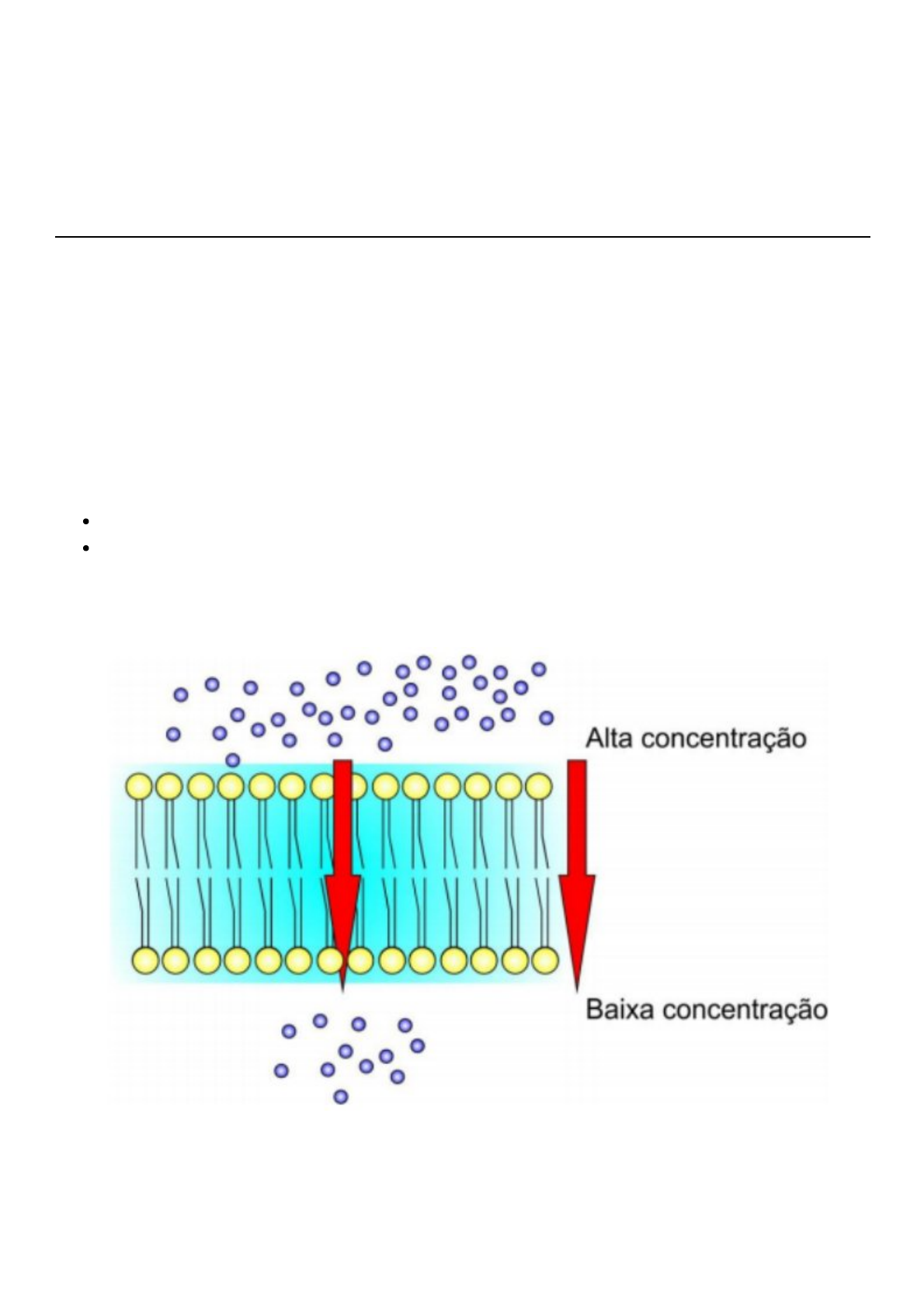 1/2 Difusão Simples A difusão simples é um tipo de transporte passivo de substâncias através da membrana celular. É um processo que ocorre da região em que as partículas estão mais concentradas para regiões em que sua concentração é menor, até que se atinja um equilíbrio nas concentrações. Assim, a difusão ocorre a favor de um gradiente de concentração. Com isso, não há gasto de energia e nem a necessidade de um carreador para as substâncias. A difusão deve-se pelo fato das partículas estarem em constante movimentação. Para que aconteça, duas condições fundamentais devem existir: A membrana celular deve ser permeável a substância que será transportada; Deve haver diferenças de concentração dessa substância entre a célula e o ambiente externo. A difusão é um importante processo para as células, pois permite a entrada de substâncias essenciais ao metabolismo celular e também permite a saída de excreções. A difusão simples ocorre a favor do gradiente de concentração e sem gasto de energia Veja também: Membrana Plasmática Exemplo de Difusão Simples https://undefined/membrana-plasmatica/ 2/2 Um exemplo de difusão simples é o processo de respiração. Ao chegar aos alvéolos pulmonares, o oxigênio difunde-se para o sangue dos capilares. Enquanto isso, o gás carbônico presente no sangue dos capilares difunde-se para o interior dos alvéolos. Essa situação de trocas gasosas ocorre devido às diferenças de concentração entre os dois gases nos alvéolos pulmonares, no sentido do meio mais concentrado para o menos concentrado. Diferença entre a Difusão Simples e a Facilitada A difusão facilitada e a difusão simples tratam do mesmo processo de transporte passivo de substâncias através da membrana celular. A diferença é que na difusão facilitada existe o auxílio de proteínas, as permeases. Essas proteínas atuam como carreadoras de substâncias, elas capturam as moléculas e facilitam sua entrada na célula. Saiba mais sobre os dois tipos de transporte através da membrana, leia também: Transporte Ativo Transporte Passivo Diferenças entre a Difusão Simples e a Osmose A osmose é um tipo especial de difusão, pois trata apenas da passagem de água através da membrana celular. A osmose é a passagem de água de um meio menos concentrado (hipotônico) para outro mais concentrado (hipertônico). Amplie os seus conhecimentos, saiba mais sobre: Permeabilidade Seletiva Bomba de Sódio e Potássio https://undefined/difusao-facilitada/ https://undefined/transporte-ativo/ https://undefined/transporte-passivo/ https://undefined/osmose/ https://undefined/permeabilidade-seletiva/ https://undefined/bomba-de-sodio-e-potassio/