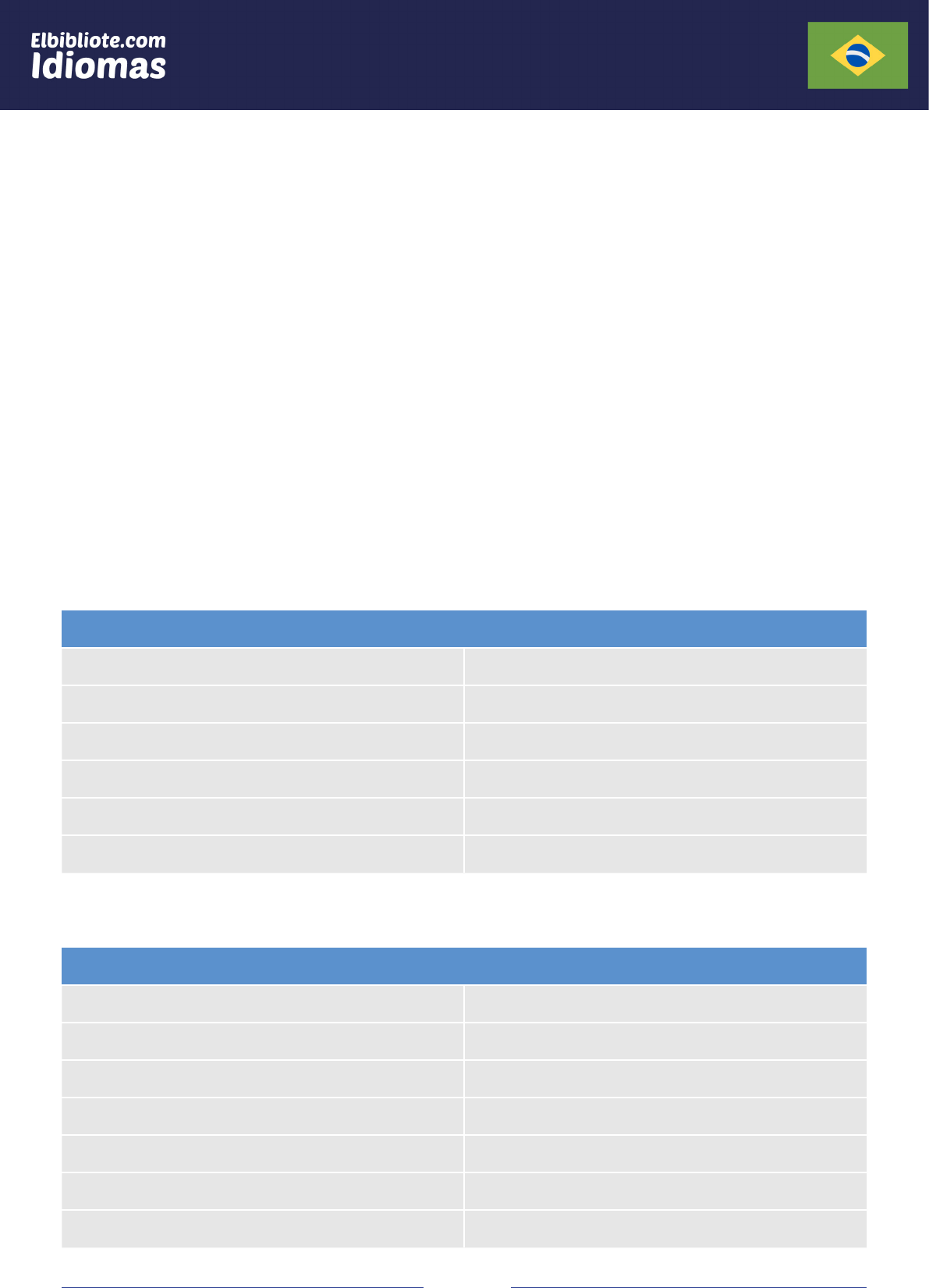 SALUDOS Y PRESENTACIONES Portugués | A1 | Unidad N° 1 1 Introducción Por lo general, el objetivo de estudiar un idioma suele ser la comunicación. Uno de los primeros pasos para interactuar en una nueva lengua es aprender a saludar y presentarse, y para esto es necesario aprender el vocabulario y el uso de las estructuras comunicativas y gramaticales correctas. Saludos formales e informales En portugués existen numerosas expresiones de saludos formales e informales. Estas se utilizan en diferentes situaciones comunicativas cuando se inicia un diálogo con alguien, sea conocido o no. Las formas de tratamiento indican el grado de proximidad entre personas, puede ser más o menos formal. Las situaciones formales son aquellas en las que se trata con personas desconocidas o relacionadas al contexto profesional, por ejemplo. Las situaciones informales son aquellas donde la interacción se da entre familiares, amigos o conocidos. En general, los saludos y despedidas pueden ir acompañados de gestos. En Brasil, algunos de ellos son comunes, independientemente de la situación, ya sea formal o informal, mostrando receptividad y educación. En situaciones que requieren un mayor grado de formalidad, se puede saludar o despedir con un apretón de manos. Entre conocidos, es común por ejemplo darse un abrazo o un beso en la mejilla en el momento del saludo o la despedida. Saludos formales Expresiones formales Portugués Español Oi! ¡Hola! Olá! ¡Hola! Bom dia. (hasta las 12 h) Buen día. Boa tarde. (hasta las 19 h) Buenas tardes. Boa noite. (a partir de las 19 h) Buenas noches. Saludos informales Expresiones informales Portugués Español Oi! ¡Hola! Olá! ¡Hola! Opa! ¡Ey! E aí! ¿Qué hay de nuevo? Fala aí, cara! ¿Qué hay de nuevo colega? Salve! ¡Hola! SALUDOS Y PRESENTACIONES Portugués | A1 | Unidad N° 1 2 Después de saludar, para acercarnos a nuestro interlocutor y preguntarle acerca de su trabajo, de su vida o de cómo se encuentra, podemos utilizar las siguientes expresiones: Preguntas formales Portugués Español Tudo bom? ¿Todo bien? Tudo bem? ¿Todo bien? Como está? ¿Cómo está? Preguntas informales Portugués Español Tudo joia? ¿Todo bien? Beleza? ¿Estás bien? E ai, tranquilo? ¿Qué hay de nuevo, todo bien? Tudo certo? ¿Todo bien? Como vai? ¿Cómo estás? En portugués, especialmente en el brasileño, siempre se contesta a la pregunta y se hace otra, manteniendo el lenguaje adoptado para comunicarse. Si es una conversación formal, no se preguntan asuntos de la vida privada y no se entra en detalles en las respuestas, en cambio en una conversación informal, la información que se brinda puede ser más detallada. Respuestas formales Portugués Español Vou bem, obrigado. E o senhor? Me encuentro bien, gracias. ¿Y usted? Tudo bom. E o senhor? Todo bien. ¿Y usted? Estou bem. Me encuentro bien. Tudo bem! ¡Todo bien! Tudo ótimo! ¡Todo óptimo! Respuestas informales Portugués Español Tudo joia! E você? Todo perfecto. ¿Y tú? SALUDOS Y PRESENTACIONES Portugués | A1 | Unidad N° 1 3 Despedidas Para despedirnos pueden usarse diferentes expresiones. Su uso varía dependiendo el contexto en que se dé el saludo, pueden ser formales o informales y hacer referencia a un reencuentro o no. Despedidas formales Con referencia a reencuentro en el mismo día Até logo! (à tarde/à noite) ¡Hasta luego! Con referencia a reencuentro en día diferente Até amanhã. Hasta mañana. Até a próxima semana. Hasta la próxima semana. Até quinta-feira. Hasta el jueves. Sin referencia a reencuentro Até mais! ¡Hasta la vista! Con amigos Mais ou menos… Más o menos... Tudo tranquilo! ¡Todo tranquilo! Tudo na paz! ¡Todo en paz! Tudo legal! ¡Todo bien! De boa! ¡Bien! Veamos algunos ejemplos de los saludos utilizados en diferentes situaciones comunicativas. En el trabajo Gerente: Boa tarde João. | Buenas tardes, João. João: Boa tarde! Como o senhor está? | ¡Buenas tardes! ¿Cómo está usted? Gerente: Estou bem, obrigado. | Estoy bien. Gracias. Paulo: Fala aí João! Tranquilo? | ¡Hola, João! ¿Cómo estás? João: E aí Paulo! Tudo beleza. E você? | ¡Hola, Paulo! Todo bien. ¿Y tú? Paulo: Tudo joia! | ¡Todo perfecto! SALUDOS Y PRESENTACIONES Portugués | A1 | Unidad N° 1 4 Tchau! ¡Chau! Adeus! ¡Adiós! Até a próxima! ¡Hasta la próxima! Prazer em vê-lo! ¡Fue un placer verlo! Despedidas informales Con referencia a reencuentro en el mismo día Até logo! ¡Hasta luego! Até já! ¡Hasta luego! Até daqui a pouco! ¡Hasta dentro de un ratito! Con referencia a reencuentro en día diferente Até amanhã. Hasta mañana. Até a próxima semana. Hasta la próxima semana. Até quinta-feira. Hasta el jueves. Sin referencia a reencuentro Até! ¡Chau! Valeu! ¡Vale! Já é! ¡De acuerdo, chau! Se cuida! ¡Cuídate! Tchau! ¡Chau! Foi bom te ver! ¡Fue lindo verte! A gente se vê! ¡Nos vemos! Veamos algunos ejemplos de las expresiones de despedida en diferentes situaciones: En la escuela Professora: Até a próxima semana Jose. | Hasta la próxima semana, José. Jose: Tchau, até a próxima professora! | ¡Chau, hasta la próxima, profesora! SALUDOS Y PRESENTACIONES Portugués | A1 | Unidad N° 1 5 ¡Vamos a practicar! 1. Elige la expresión correcta. a) Para saludar a alguien formalmente podemos decir E ai/Salve!/Beleza?/Olá b) Para despedirnos informalmente podemos usar la expresión Adeus/Prazer em vê-lo/Valeu!/Boa noite c) En una conversación formal preguntamos Tudo joia?/Como está?/Como vai?/Tranquilo? d) Para responder una pregunta de manera informal podemos usar Vou bem, obrigado/Tudo na paz/Tudo bom? E o senhor?/Estou bem, e a senhora? e) Para despedirnos de alguien sin hacer referencia a un reencuentro podemos decir: Até logo!/Até já!/Até mais!/ Até daqui a pouco! 2. Ordena las palabras para formar expresiones de saludos y despedidas. El lenguaje formal e informal Trato formal En portugués, el equivalente a usted es “o senhor” “a senhora” y 