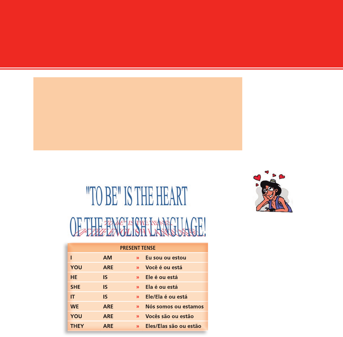 e-Tec Brasil Class 2 – Verb To be This is a short but very important class. We will study the Present tense of verb to be. It is ONE verb in English with TWO translations in Portuguese. To be = “ser” or “estar”. Esta é uma aula breve, porém muito importante. Estudaremos o presente do verb to be. É um verbo em inglês que no portu- guês apresenta duas traduções. To be = ser ou estar. 2.1 Verb to be - affirmative sentence » » » » » » » » 2.1.2 Contracted form O verbo ‘to be’ é frequentemente contraído quando segue um pronome. A contração é feita com o uso do apóstrofo (‘). Veja os exemplos: I’m strong. Sou/estou forte. We’re happy. Somos/estamos felizes. He’s sad. Ele é/está triste. Obs.: Contrações são geralmente evitadas no discurso formal ou na escrita. e-Tec BrasilClass 2 - Verb To be 17 2.2 Verb to be - negative sentences O verbo ‘to be’ torna-se negativo com a adição de ‘not’. I’m not happy. Não sou/estou feliz. She is not sad. Ela não é/não está triste. They are not weak. Eles/elas não são/não estão fracos/fracas. 2.3 Verb to be - interrogative sentences Observe que as formas am, is e are estão antes dos sujeitos. Porém, a tradução para o português continua da mesma forma. Are you tall? Is he American? Are they weak? Atenção para a tradução da frase interrogativa: English Portuguese Are you tall? Figura 2.1: Mural Verb to be – present tense Fonte: http://images7.content-hca.com Am / Is / Are e-Tec Brasil 18 Língua Inglesa Corporativa Resumo Agora você já sabe o verbo to be tem duas traduções no português. No pre- sente o to be tem três formas: am, is e are. Am, is e are podem ser contraídos I am = I’m, Jane is = Jane’s, We are = we’re. A forma negativa é construída adicionando-se “not” = I’m not. Já a forma interrogativa com am, is e are antes do sujeito = Is Jane?, Are we? Atividades de aprendizagem 1. Supply the verb To Be in the Present Tense. a) Winter ______________ very cold in our town. b) My office ______________ on Black Street. c) Her face ______________ not dirty. d) The children ______________ in the garage. e) Where ______________ I? f) The child ______________ in the garden. g) Mr. Black and I ______________ very good friends. 2. Unscramble these words. Ex: CELSO CLOSE = fechar SUBY: RUMMES: CAFE: RITYD: PAPYH: GARDEN: NOTW: DEILRCNH: Aprenda Inglês assistindo vídeos e-Tec BrasilClass 2 - Verb To be 19