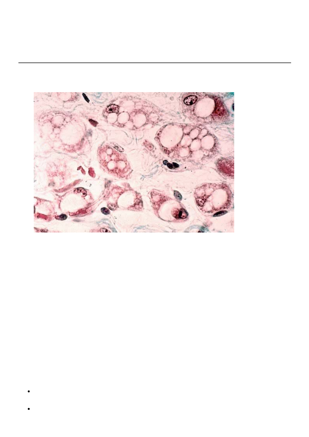 1/2 Tecido Adiposo O tecido adiposo é um tipo de tecido conjuntivo com propriedades especiais. Possui muitos adipócitos, células especializadas, que têm função principal de reserva energética para o organismo, entre outras. No tecido adiposo multilocular há várias gotas de gordura no citoplasma celular Características O tecido conjuntivo adiposo é composto por matriz extracelular e células adiposas, os adipócitos. A matriz é composta de fibras reticulares (colágeno tipo III) bem finas, que formam redes e não se observam facilmente ao microscópio. Essa substância intercelular envolve os inúmeros adipócitos presentes. Os adipócitos são células que acumulam gordura no interior. Possuem vasos sanguíneos, especialmente capilares. Os lipídios ali encontrados são especialmente triglicerídeos (moléculas de glicerol unidas a cadeias de ácidos graxos). Formam gotas suspensas no citoplasma e sem membrana ao redor. Funções Reserva Energética: a principal função do tecido é de reserva energética. O depósito de gordura é feito nas células adiposas também chamadas adipócitos; Isolante Térmico: ajuda a regular a temperatura corporal, protegendo contra o frio; 2/2 Preenchimento: é encontrado ao redor de órgãos e preenchendo espaços, de forma que mantém as estruturas fixas no lugar. Proteção contra impactos: evita traumatismos, protegendo os órgãos internos. Tecido Adiposo Unilocular Geralmente, quando se fala da “gordura do corpo” é esse tecido que está sendo citado. Ele é o principal reservatório de lipídios do corpo. É o mais comumente encontrado, sendo distribuído por regiões como as camadas mais profundas da pele e ao redor de órgãos da cavidade abdominal. Há diferenças de distribuição entre homens e mulheres, definindo a forma do corpo. As gotas de gordura se reúnem formando uma grande gota. Por isso recebe o nome de unilocular. Também é conhecido como gordura amarela, coloração que se deve à gordura, que contém pigmentos e vitaminas. A gota de gordura ocupa quase todo espaço nos adipócitos, com isso o núcleo assume posição mais periférica e há pouco citoplasma na célula. Tecido Adiposo Multilocular Esse tipo de tecido adiposo é responsável pela regulação da temperatura corporal. É encontrado principalmente em animais que hibernam. Nos seres humanos está presente em recém-nascidos, fica restrito a regiões específicas nos adultos. Recebe o nome de multilocular por causa das várias gotas de gordura suspensas no citoplasma dos adipócitos. Eles ficam com aparência esponjosa quando observados ao microscópio. Também é conhecido como gordura marrom ou parda. As gotas de gordura ocupam quase todo espaço da célula, restando pouco citoplasma ao redor. O núcleo fica no centro ou na periferia. Também estão presentes muitas mitocôndrias e capilares. As mitocôndrias transformam a energia dos lipídios em energia térmica. Essa energia é liberada no sangue, aumentando a temperatura corporal e ajudando a acordar os animais em hibernação.