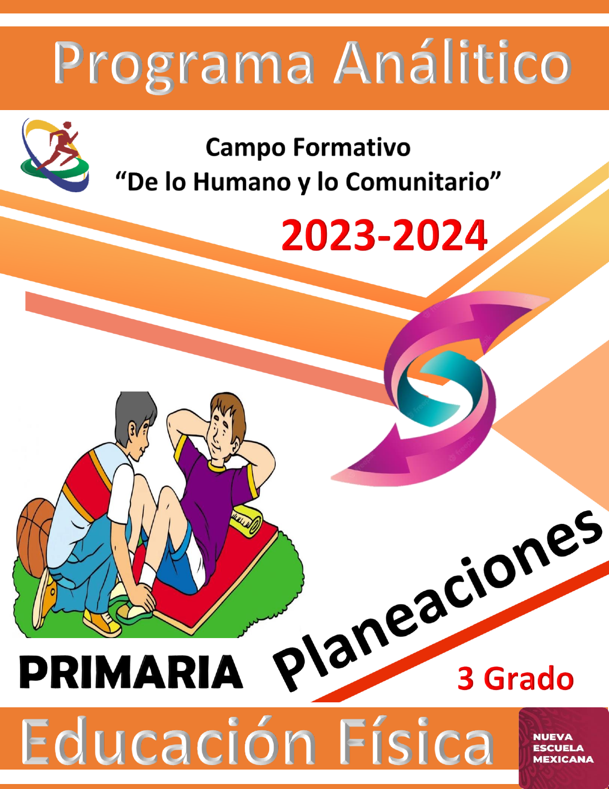 Planeaciones de Educación Física 2023-2024 1 La Nueva Escuela Mexicana “De lo Humano y lo Comunitario” Planeaciones de Educación Física 2023-2024 2 La Nueva Escuela Mexicana “De lo Humano y lo Comunitario” PROGRAMA ANALITICO Planeaciones de Educación Física 2023-2024 La Nueva Escuela Mexicana desde lo Humano y lo Comunitario” Escuela: Docente: Grado: 3º Grupo: Nivel: Primaria Fase: 4 Temporalidad: Mes: Fecha: Unidad: 1 Sesiones: 12 Tiempo: 50 Min. ELEMENTOS DEL PROGRAMA SINTETICO Campo Formativo Diagnostico Contenido Procesos de Desarrollo de los aprendizajes De lo humano y lo Comunitario Se determina a partir de las necesidades, intereses y ritmos de aprendizaje de los alumnos en el ciclo. También se consideran las problemáticas y situaciones presentadas en el contexto escolar 1-Capacidades y habilidades motrices Adapta sus movimientos, de acuerdo con los elementos básicos de los juegos, para responder a las condiciones que se presentan. Ejes articuladores 1 Inclusión 2 Pensamiento critico 3 Interculturalidad critica 4 Igualdad de genero 5 Vida saludable 6 Apropiación de las culturas a través de la lectura y la escritura 7 Artes y experiencias estéticas Evaluación Inicial Descripción de Actividades en Educación Física Sesión 1 Se recomienda algunas acciones e instrumentos de validación y evaluación en educación física. Bitácoras Cuadernos de tareas Exámenes Listas de cotejo Observación 10 min. 1.La araña: Se coloca a todo el grupo en un espacio circular con separación necesaria. El jugador que es la araña debe cerrar los ojos y señalar a algún alumno del círculo y quien le toque será araña con él. Mientras tanto, los otros componentes deben intentar no ser señalados por ninguna araña. Desarrollo 2.Las palmas: Se trata de lanzar al aire la pelota y dar palmadas antes de recibirla. ¿Quién logrará el mayor número de palmadas mientras la pelota está en pleno vuelo? Variantes: Cada jugador inventa una secuencia de palmadas a diferentes alturas (sobre la cabeza, a la altura de la cintura, por detrás de la espalda y la muestra a su pareja o en pequeños grupos para que éstos la reproduzcan. 3.Paliacates aéreos: Cada alumno con un paliacate resolverá las siguientes cuestiones y responderá con acciones: ¿Quién puede lanzar hacia adelante el paliacate? ¿Hacia qué otro lado podemos? ¿De qué forma lo podemos lanzar hacia abajo? ¿Quién puede lanzarlo hacia arriba y pasar por abajo del paliacate corriendo? ¿Quién puede lanzarlo con la mano derecha y atraparlo con la mano izquierda? 4.Malabaristas peloteros: Cada alumno con una pelota pensará las siguientes indagaciones y después responderá con acciones motrices: ¿Quién puede arrastrar la pelota? ¿Con qué otra parte del cuerpo podemos hacerlo? ¿Quién puede transportar la pelota en su cuerpo sin que se caiga al piso? ¿Podrán arrastrarla con una mano? ¿Podrán ahora hacerlo con la otra? 35 min. Estrategias didácticas Juegos motrices Circuitos de acción Expresión corporal Estilos de Enseñanza Final 5.Gira, gira: Cada uno de los alumnos tendrá una pelota y deberá de hacerla girar sobre el dedo. Mando directo Descubrimiento guiado Libre exploración 5 min. Recursos Materiales Pelotas, paliacates Observaciones/ Adecuaciones Firmas y sellos Supervisor(a) Director(a) Docente Planeaciones de Educación Física 2023-2024 3 La Nueva Escuela Mexicana “De lo Humano y lo Comunitario” PROGRAMA ANALITICO Planeaciones de Educación Física 2023-2024 La Nueva Escuela Mexicana desde lo Humano y lo Comunitario” Escuela: Docente: Grado: 3º Grupo: Nivel: Primaria Fase: 4 Temporalidad: Mes: Fecha: Unidad: 1 Sesiones: 12 Tiempo: 50 Min. ELEMENTOS DEL PROGRAMA SINTETICO Campo Formativo Diagnostico Contenido Procesos de Desarrollo de los aprendizajes De lo humano y lo Comunitario Se determina a partir de las necesidades, intereses y ritmos de aprendizaje de los alumnos en el ciclo. También se consideran las problemáticas y situaciones presentadas en el contexto escolar 1-Capacidades y habilidades motrices Adapta sus movimientos, de acuerdo con los elementos básicos de los juegos, para responder a las condiciones que se presentan. Ejes articuladores 1 Inclusión 2 Pensamiento critico 3 Interculturalidad critica 4 Igualdad de genero 5 Vida saludable 6 Apropiación de las culturas a través de la lectura y la escritura 7 Artes y experiencias estéticas Evaluación Inicial Descripción de Actividades en Educación Física Sesión 2 Se recomienda algunas acciones e instrumentos de validación y evaluación en educación física. Bitácoras Cuadernos de tareas Exámenes Listas de cotejo Observación 10 min. 1.Los tres amigos: Se divide el grupo en tríos. Los miembros se toman de la mano y se desplazan por la zona. Mientras tanto, el profesor señala las diferentes formas de locomoción que deben realizar: caminando como robot, rápido, saltando con una o dos piernas, elevando las rodillas o talones, de puntas o talones, corriendo, caminando lateral, de espaldas, en círculo, etc. Desarrollo 2.La ruta adecuada: Se forman parejas y uno de ellos se venda los ojos con el paliacate y el otro lo toma de los hombros y lo conduce por toda la cancha dándole indicaciones izquierda-derecha, adelante-atrás, agacharse-levantarse, con el objetivo de no chocar con ninguna de las parejas y con los objetos que se encuentren dispersos por la cancha. 3.Pelotas del aro: Cada escolar con un aro y una pelota realizan las siguientes acciones motrices: ¿Soy capaz de introducir la pelota en el aro después de lanzarla al aire y girar? Ahora soy un malabarista si camino y en cada mano mantengo girando el aro y en la otra lanzando y atrapando la pelota. Con un brazo giro el aro mientras conduzco la pelota con los pies. Rodar el aro e ir por el lanzando atrapando la pelota con dos y una mano. 4.Hechiceros: Del grupo 3 alumnos serán los hechiceros, cada uno con paliacates diferentes, ya que sus hechizos tendrán 