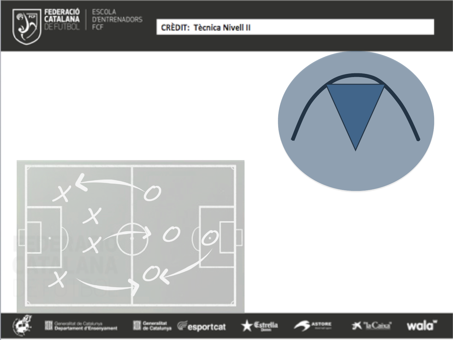 FONAMENTS INDIVIDUALS POSICIÓ CENTRALS CRÈDIT: Tècnica Nivell II Ac=vitat 1: Després d’observar el par=t en qües=ó, elabora un llistat d’errors i encerts, ofensius i defensius, de la demarcació del central. FONAMENTS OFENSIUS ZONES ON APAREIX EL FONAMENT ZONA INICIACIÓ FONAMENTS CENTRALS OFENSIUS ! F1: Compensar desequilibris de la línia. ZONES ON APAREIX EL FONAMENT ZONA INICIACIÓ ! F2: En servei del porter donar la màxima amplitud possible per facilitar el joc en curt. FONAMENTS CENTRALS OFENSIUS ZONES ON APAREIX EL FONAMENT ZONA INICIACIÓ FONAMENTS CENTRALS OFENSIUS ! F3: Si el porter juga en llarg, tancar en diagonal cap al carril central. ZONES ON APAREIX EL FONAMENT ZONA INICIACIÓ ! F4: Realitzar en la mesura del possible desplaçaments de pilota saltant una posició en la seva línia de joc. FONAMENTS CENTRALS OFENSIUS ZONA PROGRESSIÓ ZONAINICIACIÓ ZONES ON APAREIX EL FONAMENT ! F5: Quan no hi hagi passades a l a z o n a i n t e r m i t j a , progressar amb la pilota per fixar algun adversari. FONAMENTS CENTRALS OFENSIUS ZONA PROGRESSIÓ ZONAINICIACIÓ ZONES ON APAREIX EL FONAMENT ! F6: Donar recolzament en profunditat preferiblement en diagonal cap a la nostre porteria per obrir l’espai de joc. FONAMENTS CENTRALS OFENSIUS ZONA PROGRESSIÓ ZONAINICIACIÓ ZONES ON APAREIX EL FONAMENT ! F7: Si el central juga en llarg, realitzar els desplaçaments cap a zones laterals. FONAMENTS CENTRALS OFENSIUS ZONA PROGRESSIÓ ZONAINICIACIÓ ZONES ON APAREIX EL FONAMENT ! F8: Realitzar desplaçaments de pilota preferiblement en d i a g o n a l b u s c a n t l a progressió. FONAMENTS CENTRALS OFENSIUS ZONES ON APAREIX EL FONAMENT ZONA INICIACIÓ ! F9: Si la pilota es troba en l ’orientació del central , enrederir la posició per darrere d’aquest per donar opció de passada. FONAMENTS CENTRALS OFENSIUS ZONA PROGRESSIÓ ZONES ON APAREIX EL FONAMENT ! F10: Mantenir el control visual d’atacant i pilota. FONAMENTS CENTRALS OFENSIUS ZONA PROGRESSIÓ ZONES ON APAREIX EL FONAMENT ! F11: Marcar al punta mentre l’equip ataca. FONAMENTS CENTRALS OFENSIUS ZONA PROGRESSIÓ ZONES ON APAREIX EL FONAMENT ! F12: Mantenir equilibrada la defensa. FONAMENTS CENTRALS OFENSIUS ZONA PROGRESSIÓ ZONES ON APAREIX EL FONAMENT ! F13: Modificar l’amplitud de la l ín ia en func ió de ls recolzaments de l’anterior. FONAMENTS CENTRALS OFENSIUS FONAMNETS DEFENSIUS ZONES ON APAREIX EL FONAMENT ZONA INICIACIÓ FONAMENTS CENTRALS DEFENSIUS ! F14: En zona de risc defensa individual. ZONES ON APAREIX EL FONAMENT ZONA INICIACIÓ ! F15: No defensar dins de l’àrea amb la pilota a la frontal. FONAMENTS CENTRALS DEFENSIUS ZONES ON APAREIX EL FONAMENT ZONA INICIACIÓ ! F16: Anticipació de rebutjos. FONAMENTS CENTRALS DEFENSIUS ZONES ON APAREIX EL FONAMENT ZONA INICIACIÓ ! F17: Defensa de la porteria quan hi ha 1x1 amb el porter. FONAMENTS CENTRALS DEFENSIUS ZONES ON APAREIX EL FONAMENT ZONA INICIACIÓ ! F18: Orientar a l’atacant cap a la cama menys hàbil quan pot rematar. FONAMENTS CENTRALS DEFENSIUS ZONES ON APAREIX EL FONAMENT ZONA INICIACIÓ ! F19: Alliberar l’àrea quan la pilota s’allunya direccionant la sortida cap a la pilota i aturar-se quan el contrari la controla. FONAMENTS CENTRALS DEFENSIUS ZONES ON APAREIX EL FONAMENT ZONA INICIACIÓ ! F20: En la defensa de faltes i corners en contra, mantenir una actitud de peus activa, lluitar sense abraçar-se al rival i mantenir una distància que ens permeti xocar amb el braç per frenar les seves accions. FONAMENTS CENTRALS DEFENSIUS ZONA PROGRESSIÓ ZONAINICIACIÓ ZONES ON APAREIX EL FONAMENT ! F21: Identificar el davanter d e l q u e m ’ h a i g d e responsabilitzar. FONAMENTS CENTRALS DEFENSIUS ZONA PROGRESSIÓ ZONAINICIACIÓ ZONES ON APAREIX EL FONAMENT ! F22: Mantenir el control visual d’atacant i pilota. FONAMENTS CENTRALS DEFENSIUS ZONA PROGRESSIÓ ZONAINICIACIÓ ZONES ON APAREIX EL FONAMENT ! F23: No ser desbordat acuitant al defensor amb pilota. FONAMENTS CENTRALS DEFENSIUS ZONA PROGRESSIÓ ZONAINICIACIÓ ZONES ON APAREIX EL FONAMENT ! F 2 4 : Te m p o r i t z a r a l posseïdor, minimitzant l’espai de desmarcada pel segon davanter. FONAMENTS CENTRALS DEFENSIUS ZONA PROGRESSIÓ ZONAINICIACIÓ ZONES ON APAREIX EL FONAMENT FONAMENTS CENTRALS DEFENSIUS ! F25: Temporitzar davant i g u a l t a t o i n f e r i o r i t a t numèrica. ZONA PROGRESSIÓ ZONAINICIACIÓ ZONES ON APAREIX EL FONAMENT ! F26: Recular ràpidament interceptant la progressió del punta si juga la pilota amb un altre company. FONAMENTS CENTRALS DEFENSIUS ZONA PROGRESSIÓ ZONAINICIACIÓ ZONES ON APAREIX EL FONAMENT ! F27: Cobertures al central o lateral que defensa al jugador amb pilota. FONAMENTS CENTRALS DEFENSIUS ZONA PROGRESSIÓ ZONAINICIACIÓ ZONES ON APAREIX EL FONAMENT ! F28: Enrederir la posició davant de passades en profunditat a l’espai. FONAMENTS CENTRALS DEFENSIUS ZONA PROGRESSIÓ ZONAINICIACIÓ ZONES ON APAREIX EL FONAMENT ! F29: Enrederir la posició davant de disputes aèries amb un altre central. FONAMENTS CENTRALS DEFENSIUS ZONA PROGRESSIÓ ZONAINICIACIÓ ZONES ON APAREIX EL FONAMENT ! F30: Defensa individual en les desmarcades a l’espai (entrar- sortir). FONAMENTS CENTRALS DEFENSIUS ZONA PROGRESSIÓ ZONAINICIACIÓ ZONES ON APAREIX EL FONAMENT ! F31: Mantenir equilibrada la defensa. FONAMENTS CENTRALS DEFENSIUS ZONA PROGRESSIÓ ZONAINICIACIÓ ZONES ON APAREIX EL FONAMENT ! F32: Compensar desequilibris de la línia. FONAMENTS CENTRALS DEFENSIUS ZONA PROGRESSIÓ ZONA FINALITZACIÓ ZONA INICIACIO ZONES ON APAREIX EL FONAMENT ! F33: Restablir el desequilibri defensiu amb esforços del 100% en direcció a porteria. FONAMENTS CENTRALS DEFENSIUS CRÈDIT: Tècnica Nivell II Ac=vitat 2: Després d’haver estudiat els fonaments individuals de la demarcació del central, observa el par=t en qües=ó i elabora un nou llistat d’errors i encerts, ofensius i defensius, d’aquesta demarcació. FONAMENTS INDIVIDUALS POSICIÓ LATERALS CRÈDIT: Tècnica N