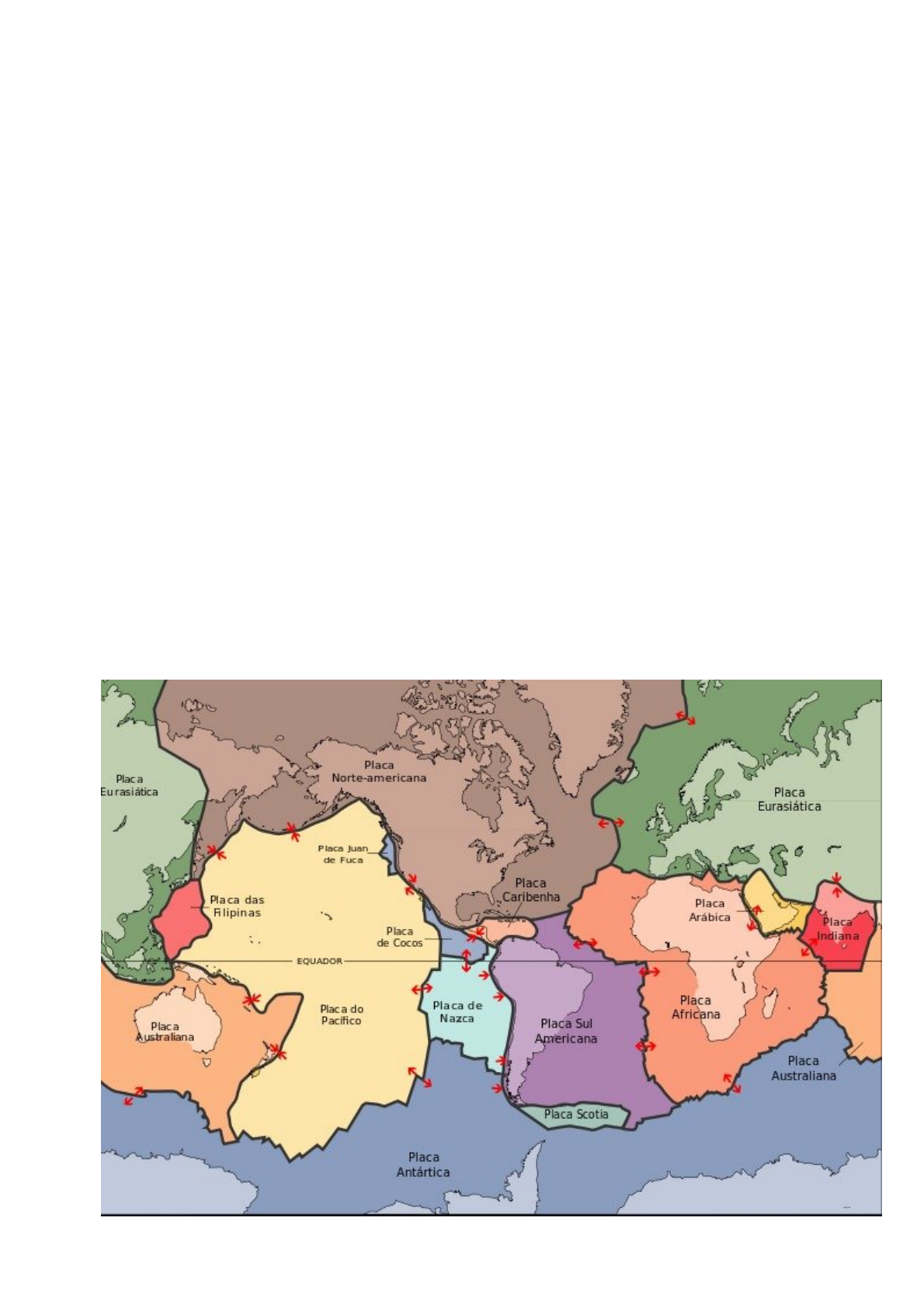 1/3 Placas Tectônicas As placas tectônicas são porções da camada externa da estrutura terrestre chamada de litosfera, onde estão localizados os continentes e oceanos. Essas placas tectônicas movem-se sobre a camada inferior mais fluida, chamada de astenosfera. A camada da superfície terrestre é constituída por sete principais placas rochosas rígidas que mudam de posição e se encaixam como peças de um quebra-cabeça. O movimento dessas placas podem ser convergentes, quando se movem uma contra a outra; divergentes, quando se afastam ou conservativo, quando se movem vertical ou paralelamente. Ao movimento das placas são responsáveis pelos vulcões, terremotos e tsunamis. Assim como a formação dos continentes e mares, formação de cadeias de montanhas e de toda a paisagem que se situa sobre essas placas tectônicas. Principais Placas Tectônicas A denominação placa tectônica é um conceito que trata da história geológica da Terra. As principais placas tectônicas são: 2/3 Mapa - As principais placas tectônicas e seus movimentos Placa Africana Placa Antártica Placa Australiana Placa Eurasiática Placa do Pacífico Placa Norte-americana Placa Sul-americana Placa de Nazca Placa de Scotia Placa Caribenha Placa Indiana Placa das Filipinas Há, ainda, as placas menores, denominadas: Placa Adriática, Placa da Anatólia, Placa Arábica, Placa da Carolina, Placa Leste-Americana, Placa de Gorda, Placa Helénica, Placa Indo-Australiana, Placa Iraniana, Placa de Cocos, Placa Juan de Fuca, Placa da Somália, Placa de Sunda e Placa de Tonga. O Movimento das Placas Tectônicas Os movimentos das placas tectônicas são responsáveis por uma série de acidentes geográficos, tais como: vulcões, terremotos e tsunamis. O movimento das placas também foi o responsável pela formação dos continentes e a definição do mapa da Terra, tal como se conhece. Alguns indícios como a semelhança entre as costas atlânticas do continente africano e sul-americano e fósseis de diversas espécies comuns de ambos os lados levam a crer que o planeta já foi formado por um único continente, chamado de Pangeia, há cerca de 225 milhões de anos. Os movimentos das placas tectônicas podem ser observados através de seus limites e são classificados como: Divergentes (que definem a zona de construção da crosta), Convergentes (definidas na zona de destruição da crosta) e Conservativos (onde estão as falhas transformantes). Movimentos divergentes das placas tectônicas Ocorre quando as placas traçam o movimento de distância uma das outras provocando o “nascimento” de uma nova crosta oceânica. O movimento é traçado no sentido horizontal. Esse limite é definido em três estágios, sendo o primeiro a abertura de uma fenda que ocorre com a fratura da crosta, a invasão da água e formação de lagos salinos. Nesta fase, há intensa atividade vulcânica. 3/3 No segundo estágio, a fragmentação é total e há formação de dois continentes efetivamente separados por um oceano. A atividade vulcânica persiste pela ascensão do magma. A permanência da atividade do magma define a chegada ao terceiro estágio, denominado formação de oceano. O principal exemplo do limite divergente em seus três estágios está no Oceano Atlântico, que separa Europa, África e América. A divisão dos continentes originou-se há 180 milhões de anos a uma velocidade média de 1 centímetro por ano. Movimentos convergentes das placas tectônicas Esta é a definição para o movimento de colisão de uma placa sobre a outra. Existem três tipos de convergência entre as placas tectônicas: continental-continental, oceânica-oceânica e oceânica- continental. O movimento convergente entre placas continentais cria uma área chamada de zona de metamorfismo, sendo responsável por dobramentos modernos, terremotos e atividade vulcânica. A convergência entre placas oceânicas cria uma zona de subdução, na qual uma placa tende a deslizar sob a outra gerando uma fossa. Nesses locais encontram-se as maiores profundidades dos oceanos, como a Fossa das Marianas, com quase 11 quilômetros de profundidade. Já convergência oceânica-continental ocorre quando esses dois tipos de placas se chocam. A placa oceânica, mais densa, mergulha sob a placa continental criando uma zona de subdução, enquanto a placa continental se eleva, formando grandes cadeias de montanhas. Por exemplo, a Cordilheira dos Andes foi formada a partir do movimento convergente entre a Placa de Nazca (oceânica) e a Placa Sul-americana (continental). Esse tipo de formação geológica é conhecida como dobramentos modernos. Saiba sobre a Falha de San Andreas. Movimentos conservativos das placas tectônicas O movimento conservativo ocorre em áreas de falhas, onde as placas deslizam uma em relação à outra, vertical ou horizontalmente e de forma paralela, sem divergência ou convergência. A fricção causada por esses limites gera a chamada zona de terremotos. Nesses locais, ocorrem os chamados terremotos de focos rasos, que possuem uma grande intensidade. https://undefined/falha-de-san-andreas/