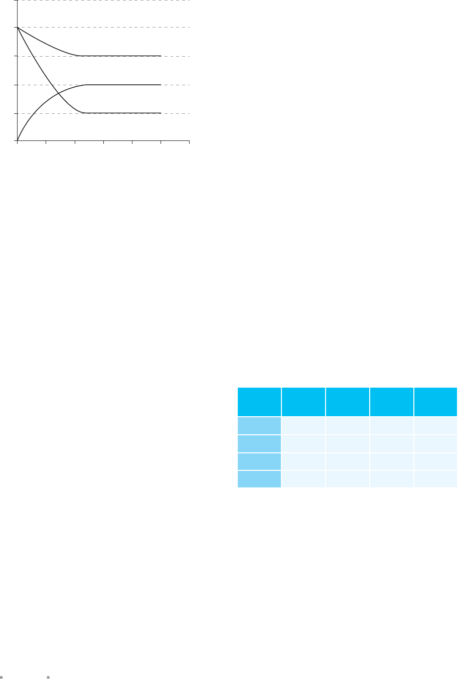 QUÍMICA Capítulo 5 Equilíbrios químicos I358 10 Cefet-MG 2015 O gráfico a seguir apresenta as variações das concentrações de três substâncias (A, B e C) duran- te uma reação química monitorada por 10 minutos. 20 4 6 8 10 C o n c e n tr a ç ã o m o la r 0,2 0 0,4 0,6 0,8 1 Tempo (min) 12 B A C A equação química que representa estequiometrica- mente essa reação, é A 2 A + B → 3 C 2 A → 3 C + B C 2 B → 2 C + A 3 B + C → 2 A E 6 C + 4 A → 2 B 11 UFF Em um recipiente de aço inox com capacidade de 1,0 L foram colocados 0,500 mol de H2 e 0,500 mol de I2. A mistura alcança o equilíbrio quando a temperatura atinge 430 °C. Calcule as concentrações de H2, I2 e HI na situação de equilíbrio, sabendo-se que KC para a reação H2(g) + + I2(g) 2 HI(g) é igual a 49,0 na temperatura dada. 12 Uece 2015 O tetróxido de dinitrogênio gasoso, utilizado como propelente de foguetes, dissocia-se em dióxido de nitrogênio, um gás irritante para os pulmões, que diminui a resistência às infecções respiratórias. Considerando que no equilíbrio a 60 °C a pressão par- cial do tetróxido de dinitrogênio é 1,4 atm e a pressão parcial do dióxido de nitrogênio é 1,8 atm a constante de equilíbrio KP será, em termos aproximados, A 1,09 atm. 1,67 atm. C 2,09 atm. 2,31 atm. 13 Udesc 2016 As reações químicas dependem de coli- sões eficazes que ocorrem entre as moléculas dos reagentes. Quando se pensa em sistema fechado, é de se esperar que as colisões ocorram entre as molé- culas dos produtos em menor ou maior grau, até que se atinja o equilíbrio químico. À temperatura ambiente, o NO2(g), gás castanho-avermelhado, está sempre em equilíbrio com o seu dímero, o N2O4(g), gás incolor. Em um experimento envolvendo a dissociação de N2O4(g) em NO2(g) coletaram-se os seguintes dados: a amostra inicial de N2O4(g) utilizada foi de 92 g, em um dado momento a soma dos componentes N2O4(g) e NO2(g) foi de 1,10 mol. Com base nesses dados, pode-se dizer que a quanti- dade dissociada em mols de N2O4(g) é: A 0,20 0,10 C 0,40 0,60 E 0,80 14 PUC-Rio Considere a equação a seguir, KP = 1 a 4 300 K. 2 H2O(g) 2 H2(g) + O2(g) Com relação a essa equação, assinale a opção que apresenta a armativa correta. A O sistema está em equilíbrio quando as pH2O(g) = = pH2(g) = pO2(g) = 2 a 4 300 K. O sistema está em equilíbrio quando as pH2O(g) = = pH2(g) = pO2(g) = 1 a 4 300 K. C Se a pH2O(g) diminuir em decorrência do deslo- camento do equilíbrio para a direita, o volume do sistema diminui. A adição de O2(g) ocasiona a diminuição do pH2O. E Dobrando a pH2O(g), KP = 2 a 4 300 K. 15 Uerj Em um experimento que verificava o estado de equilíbrio nos processos reversíveis, o etanoato de etila foi sintetizado por meio da seguinte reação química: etanoico + etanol etanoato de metila + água Admita que, nesse experimento, T = 25 °C; P = 1 atm e KC = 4,00. Quatro amostras, retiradas aleatoriamente da mistura reacional, foram submetidas à análise para determinar a quantidade de matéria de cada uma das substâncias presentes. Os resultados em mol/L estão indicados na tabela a seguir: Amostra etanoico etanol etanoato de etila água W 0,04 0,01 0,08 0,02 X 0,01 0,05 0,06 0,01 Y 0,04 0,01 0,04 0,04 Z 0,01 0,02 0,04 0,02 A amostra que ainda não atingiu o estado de equilíbrio é: A W X C Y Z 16 Unesp O hidrogênio pode ser obtido do metano, de acordo com a equação química em equilíbrio: CH4(g) + H2O(g) CO(g) + 3 H2(g) A constante de equilíbrio dessa reação é igual a 0,20 a 900 K. Numa mistura dos gases em equilíbrio a 900 K, as pressões parciais de CH4(g) e de H2O(g) são ambas iguais a 0,40 atm e a pressão parcial de H2(g) é de 0,30 atm. a) Escreva a expressão da constante de equilíbrio. b) Calcule a pressão parcial de CO(g) no equilíbrio. F R E N T E 3 359 17 UFRJ A reação entre um ácido carboxílico e um álcool é chamada de esterificação e pode ser genericamen- te representada pela equação a seguir: RCOOH(l) + R'OH(l) RCOOR'(l) + H2O(l) a) Explique por que a adição de um agente desidra- tante aumenta a formação de éster. b) Em um recipiente de 1 litro, foram adicionados 1 mol de ácido e 1 mol de álcool. Sabendo que nestas condições KC = 4, calcule a concentração de éster no equilíbrio. c) Se R é o radical propil e R' é o radical isopropil, dê o nome do éster formado. 18 Mackenzie 2017 Em um balão de capacidade igual a 10 L, foram adicionados 1 mol da espécie A2(g) e 2 mols da espécie B2(g). Tais reagentes sofreram transforma- ção de acordo com a equação a seguir: A2(g) + B2(g) 2 AB(g) Considerando-se que, no estado de equilíbrio químico, a concentração da espécie AB(g) seja de 0,1 mol · L 1 a constante de equilíbrio (KC), para esse processo, é aproximadamente igual a A 0,25 1,33 C 5,00 6,66 E 7,50 19 UEM 2018 1 mol de gás NO2 é introduzido em um reci- piente de 400 mL inicialmente evacuado, obtendo-se uma pressão inicial p1 à temperatura constante de 300 K. Observa-se que a pressão do sistema diminui com o tempo até uma pressão de equilíbrio igual a 0,6 p1 de- vido à reação de dimerização do NO2: 2 NO2(g) N2O4(g) Considere R igual a 0,08 atm ⋅ L ⋅ K-1 ⋅ mol-1. Assina- le a(s) alternativa(s) correta(s). 01 A pressão inicial (p1) do sistema é igual a 120 atm. 02 A pressão parcial de NO2(g) no equilíbrio é igual a 12 atm. 04 A fração molar de N2O4(g) no equilíbrio é igual a 0,5. 08 A constante de equilíbrio KP para a reação de di- merização do NO2(g) a 300 K é igual a 80. 16 A relação entre KC e KP para a reação de di- merização de NO2(g) é dada pela expressão KC = KP ⋅ (R ⋅ T). Soma: 20 Unifesp A reação éster + água ácido carboxílico + álcool é utilizada tanto para a obtenção de ésteres como de ácidos carboxílicos. É uma reação de equilíbrio, cujo va- lor da constante apresenta valores baixos e próximos da unidade. Três experiências independentes, I