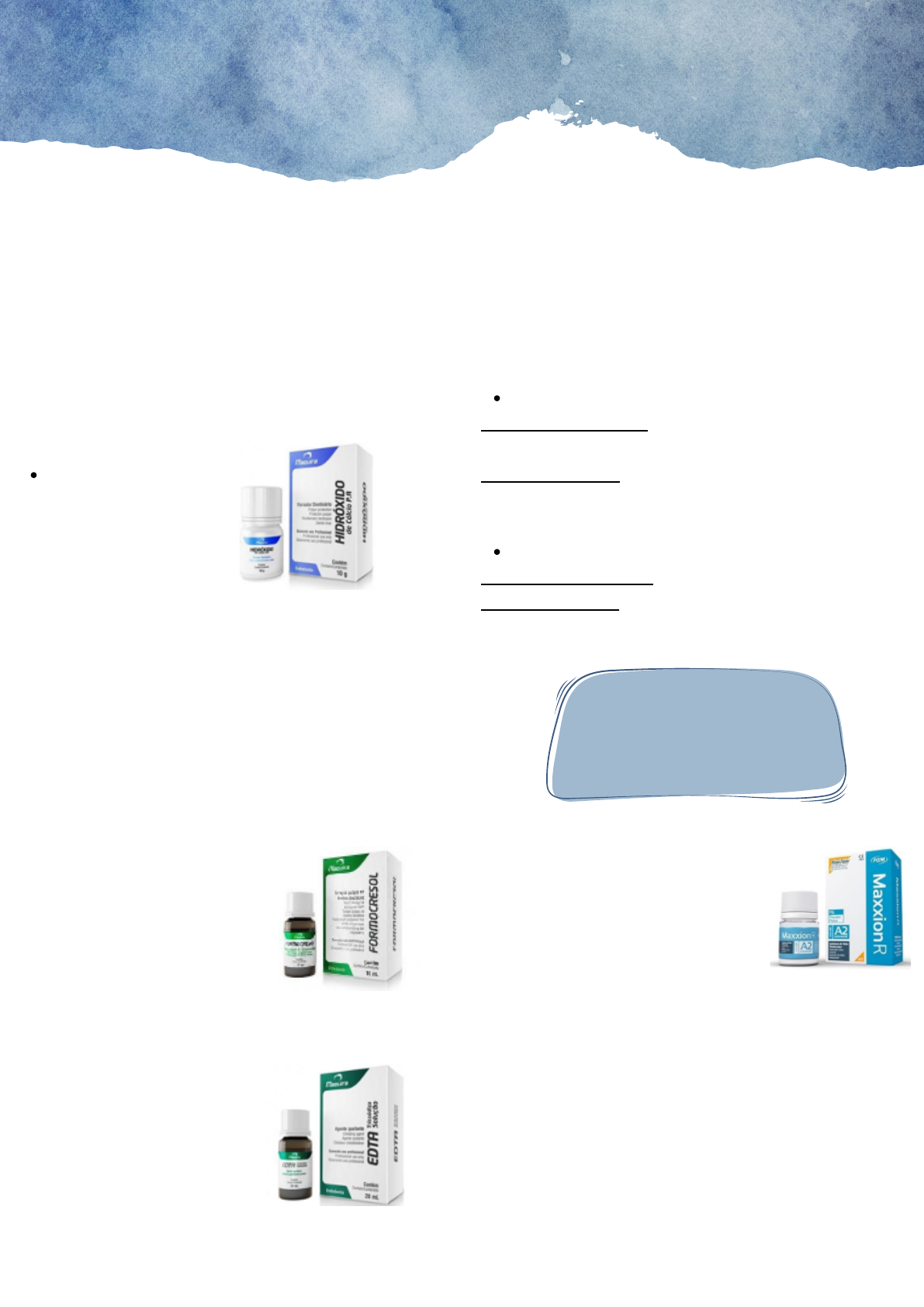 A medicação intracanal tem como objetivo, principalmente, potencializar a limpeza do canal e a reparação tecidual. Utilizada nos casos em que o tratamento endodôntico não pode ser concluído em uma sessão única, casos de polpa necrosada com ou sem lesão periapical. Hidróxido de cálcio Hidróxido de cálcio P.A. Apresentado como um Pó Branco Base forte, pH alcalino (12,6) O pH alcalino é um meio letal para as bactérias Tem atividade antimicrobiana Vantagens: Absorve secreções purulentas Biocompativel Bactericida Ótimo custo-benefício Paramonoclorofenol canforado (PMCC) Usado como curativo de demora em casos de necrose pulpar quando a instrumentação não for terminada em apenas uma sessão. Geralmente é utilizado associado à pasta de hidróxido de cálcio Citotóxico potente Pouco efetivo sobre anaeróbios estritos Não age na presença de matéria orgânica Tem atividade antimicrobiana Formocresol Utilizando quando não se instrumentou ainda o canal radicular (emergências) Efetivo sobre bactérias anaeróbicas (bola de algodão-age por volatização). Deve-se tomar cuidado pois é toxico. E.D.T.A O EDTA é um quelante que serve como amolecedor de dentina. Ele “rouba” íons de cálcio, desmineralizando a dentina e a deixa menos resistente, o que facilita na abertura do canal. É um material biocompativel e tem ação antisséptica. Medicação intracanal @odonto_bylane Corticosteroide e antibiótico Tem ação anti-inflamatória e ação antimicrobiana, e pode usar dentro do canal São utilizados em casos de polpa viva, que precisa de uma ação anti- inflamatória Otosporin (ouvido) e Maxitrol (olho) são as duas soluções mais utilizadas. Protocolo de Uso Polpa Viva Canais não-instrumentados: utiliza-se corticosteroide antibiótico Ex.: Otosporin ou Maxitrol. Canais instrumentados: Hidróxido de cálcio PA + Veículo (aquoso ou viscoso) ou pastas prontas Ex.: Calen ou Ultracal. Polpa Necrosada (com ou sem lesão): Canais não-instrumentados: formocresol Canais instrumentados: Hidróxido de cálcio PA + paramonoclorofenol canforado ou pastas prontas. Ex.: Calen PMCC. O cimento de ionômero de vidro e o cimento obturador provisório são empregados no selamento provisório do canal. Cimento de ionômero de vidro Material restaurador provisório Tem como vantagem a constante liberação de flúor, colaborando para a adequação do meio bucal Cimento obturador provisório É indicado como isolante temporário de acessos e cavidades em tratamento endodôntico.