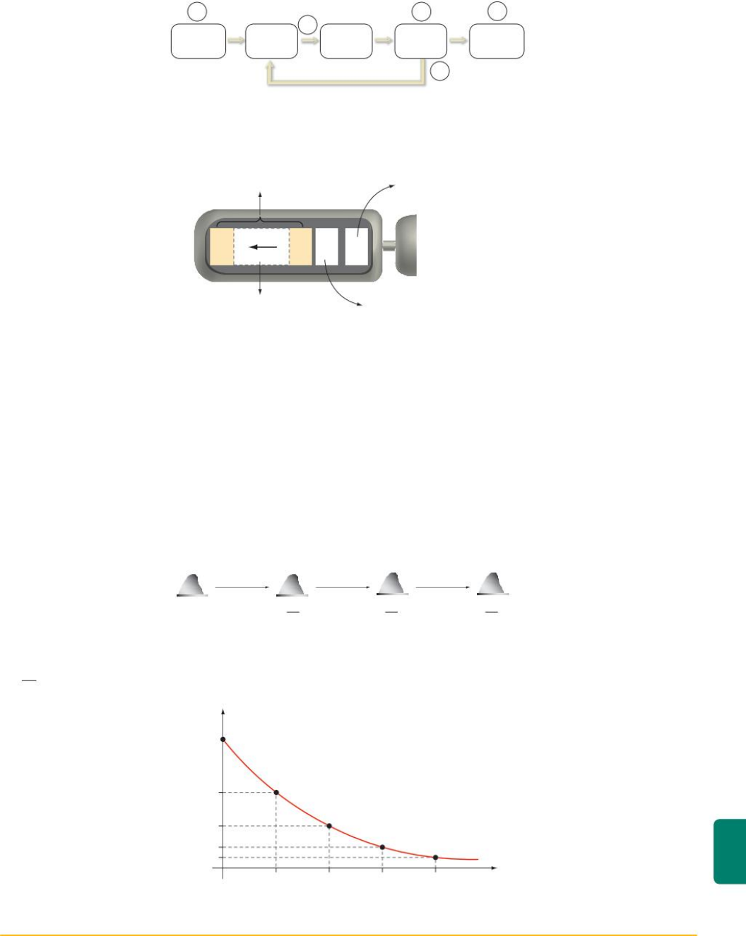 F R E N T E 2 163 A fissão nuclear explica o funcionamento: y das usinas nucleares Reator nuclear I II III IV V água (�) água (v) ca lo r Turbina Gerador elétrico Esquema simplificado do funcionamento de uma usina nuclear. y das bombas atômicas (usadas para fins bélicos) I II material radioativo que pode ser urânio ou plutônio propelente para direcionamento da bomba depois de lançada explosivo comum (com TNT), para empurrar o material radioativo para ir ao encontro da outra parte duto Esquema simplificado de uma bomba atômica Fusão nuclear é a união efetiva de dois núcleos menores para formação de um núcleo maior, com grande liberação de energia. 1H 2 + 1H 2→ 2He 3 + 0n 1 1H 2 + 1H 3→ 2He 4 + 0n 1 A fusão nuclear explica a atividade: y do Sol y das bombas de hidrogênio (não utilizadas ainda em ataques reais, somente em testes) Cinética das emissões radioativas Período de meia-vida (t1/2) é o intervalo de tempo necessário para que o número (ou a massa) de radionuclídeos reduza-se à metade. ... m0 Redução de 50% dos radionuclídeos 1tI Redução de 50% dos radionuclídeos 2tII Redução de 50% dos radionuclídeos ntIII 2 m0 4 m0 2 n m0 Modelo para visualização do período de meia-vida (t1/2). m m 2 0 n = , em que n é o número de períodos de meia-vida m(g) t(min) m0 m0/2 m0/4 m0/8 m0/16 t1/2 2t1/2 3t1/2 4t1/2 Massa restante de radionuclídeos após emissões radioativas ao longo do tempo. QUÍMICA Capítulo 9 Radioatividade164 Quer saber mais? Sites y Mundos invisíveis: o porquê da radioatividade Disponível em: <http://globotv.globo.com/rede-globo/fantastico/v/mundos-invisiveis-o-porque-da-radioatividade/788167>. y Será o fim da energia atômica? Disponível em: <www.istoe.com.br/reportagens/129149_SERA+O+FIM+DA+ENERGIA+ATOMICA+>. Livros y STRATHERN, Paul. Curie e a radioatividade em 90 minutos. Jorge Zahar, 2000. y HELENE, Maria Elisa Marcondes. A radioatividade e o lixo nuclear Scipione, 1999. y VEIGA, José Eli da. Energia nuclear do anátema ao diálogo. Senac, 2011. Exercícios complementares 1 FEI O polônio radioativo Po215 se desintegra em chumbo 82Pb 207 pela emissão global de iguais quan tidades de partículas alfa e beta. Com relação ao Po215, podemos concluir que seu núcleo possui: A 82 prótons e 133 nêutrons. 84 prótons e 131 nêutrons. C 86 prótons e 129 nêutrons. 88 prótons e 127 nêutrons. 90 prótons e 125 nêutrons. 2 Cesgranrio A partir da década de 40, quando McMil lan e Seaborg obtiveram em laboratório os primeiros elementos transurânicos (NA > 92), o urânio natural foi usado algumas vezes para obter tais elementos. Para tanto, ele era bombardeado com núcleos de elemen- tos leves. Na obtenção do plutônio, do califórnio e do férmio as transmutações ocorreram da forma a seguir. 92U 238 + 2He 4 → 94Pu 239 + A (0n 1) 92U 238 + 6C 12 → 98Cf 245 + B (0n 1) 92U 238 + 8O 16 → 100Fm 250 + C (0n 1) Sendo assim, os valores de A, B e C que indicam as quantidades de nêutrons obtidas são, respectivamente: A 1, 4 e 5. 1, 5 e 4. C 2, 4 e 5. 3, 4 e 5. 3, 5 e 4. 3 Cesgranrio Após algumas desintegrações sucessivas, o 90Th 232, muito encontrado na orla marítima de Gua rapari (ES), se transforma no 82Pb 208 O número de partículas a e b emitidas nessa transformação foi, res pectivamente, de: A 6 e 4 6 e 5. C 5 e 6. 4 e 6. 3 e 3. 4 FEI Um átomo X, de número atômico 92 e número de massa 238, emite uma partícula alfa, transforman- do-se num átomo Y, o qual emite uma partícula beta, produzindo um átomo Z. Então: A os átomos Y e X são isótopos. os átomos X e Z são isótonos. C os átomos X e Y são isóbaros. o átomo Z possui 143 nêutrons o átomo Y possui 92 prótons 5 FEI Sejam A, B, C e D os elementos de uma série radioativa envolvidos no esquema simplificado de de- sintegração nuclear 238A92 → a + B B→ b + C C→ b + D então: A B, C e D são isótopos. A e D são isóbaros. C C tem 143 nêutrons. B tem 92 prótons. A e B são isótonos. 6 ITA Considere as seguintes equações relativas a pro- cessos nucleares: I. 3Li 8 → 2He 4 + 2He 4 + x II 4Be 7 + y→ 3Li 7 III 5B 8 → 4Be 8 + z IV. 1H 3 → 2He 3 + w Ao completar as equações dadas, as partículas x, y, z e w são, respectivamente: A pósitron, alfa, elétron e elétron. elétron, alfa, elétron e pósitron. C alfa, elétron, elétron e pósitron. elétron, elétron, pósitron e elétron. elétron, elétron, pósitron e nêutron. F R E N T E 2 F R E N T E 2 165 7 Mackenzie No dia 6 de agosto de 1995, o mundo relem- brou o cinquentenário do trágico dia em que Hiroshima foi bombardeada, reverenciando seus mortos. Uma das possíveis reações em cadeia, de fissão nuclear do urânio-235 usado na bomba, é: 92U 235 + 0n 1 → 56Ba 139 + 36Kr 94 + X + energia, onde X corresponde a: A 1H 3 3 0n 1 C 2 0n 1 2a 4 1D 2 8 PUC-Campinas O isótopo 53I 131, utilizado no diagnóstico de moléstias da tireoide, pode ser obtido pelo bom- bardeio de 52Te 130, representado a seguir. 52Te 130 + 0n 1 → 53I 131 + X Na equação radioquímica dada, X corresponde a: A próton nêutron. C pósitron partícula beta partícula alfa 9 Unesp 2018 No que diz respeito aos ciclos de combus- tíveis nucleares empregados nos reatores, a expressão “fértil” refere-se ao material que produz um nuclídeo físsil após captura de nêutron, sendo que a expressão “físsil” refere-se ao material cuja captura de nêutron é seguida de fissão nuclear. (José Ribeiro da Costa. Curso de introdução ao estudo dos ciclos de combustível, 1972. Adaptado.) Assim, o nuclídeo Th-232 é considerado fértil, pois produz nuclídeo físsil, pela sequência de reações nu- cleares: 232Th + 1n→ 233Th→ 233Pa + b- 233Pa→ nuclídeo físsil + b- O nuclídeo físsil formado nessa sequência de reações é o Dados: Th (Z = 90); Pa (Z = 91); U (Z = 92). A 234U. 233Pu. C 234Pa 233U. 234Pu 10 Fuvest Em 1995, o elemento de número atômico 111 foi sintetizado pela tran