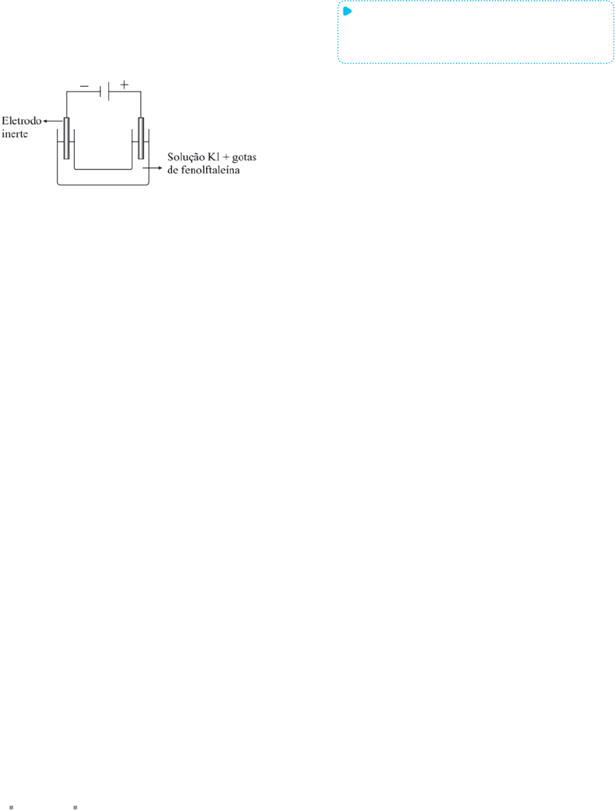 QUÍMICA Capítulo 7 Eletroquímica256 Analise as armações a seguir I No ânodo, ocorre liberação de Cl2 II O meio fica básico na região próxima ao cátodo. III A água se oxida no cátodo Está(ão) correta(s) A apenas I. apenas II. C apenas III. apenas I e II. apenas II e III. 73 Unifesp A uma solução aquosa contendo KI suficien- te para tornar o meio condutor, foram adicionadas algumas gotas do indicador fenolftaleína. A solução resultante foi eletrolisada com eletrodos inertes, no dispositivo esquematizado a seguir São fornecidos os potenciais padrão de redução das espécies químicas presentes na solução, que podem sofrer óxido-redução no processo. K+(aq) + e– → K(s) Eo = 2,93 V 2 H2O(l) + 2 e → H2(g) + 2 OH –(aq) Eo = 0,83 V I2(s) + 2 e → 2 I (aq) E o = +0,54 V O2(g) + 4 H +(aq) + 4 e → H2O(l) E o = +1,23 V Com base nesses dados, pode-se prever que, duran te a eletrólise da solução, haverá desprendimento de gás A em ambos os eletrodos, e aparecimento de cor vermelha apenas ao redor do eletrodo negativo. em ambos os eletrodos, e aparecimento de cor vermelha apenas ao redor do eletrodo positivo. C em ambos os eletrodos, e aparecimento de cor vermelha também ao redor dos dois eletrodos. somente do eletrodo positivo, e deposição de po- tássio metálico ao redor do eletrodo negativo. somente do eletrodo negativo, e aparecimento de cor vermelha apenas ao redor do mesmo ele- trodo. 74 FMP 2017 A galvanoplastia é uma técnica que per- mite dar um revestimento metálico a uma peça, colocando tal metal como polo negativo de um cir cuito de eletrólise. Esse processo tem como principal objetivo proteger a peça metálica contra a corrosão Vários metais são usados nesse processo, como, por exemplo, o níquel, o cromo, a prata e o ouro. O ouro, por ser o metal menos reativo, permanece intacto por muito tempo. Deseja se dourar um anel de alumínio e, portanto, os polos são mergulhados em uma solução de nitrato de ouro III [Au(NO3)3]. Ao nal do processo da eletrólise, as substâncias for madas no cátodo e no ânodo são, respectivamente, A H2 e - NO 3 N2 e Au C Au e O2 Au e NO2 O2 e H2 75 UEM 2013 Sobre armazenadores de energia, conduti- vidade elétrica, capacitância e reações redox, assinale o que for correto. Dados: Zn2+(aq) + 2 e → Zn(s) Eo = –0,76 V Fe2+(aq) + 2 e → Fe(s) Eo = –0,44 V 01 Um tambor de ferro enterrado, do tipo usado em postos de combustível, pode ser protegido da oxidação colocando em contato com ele placas de zinco, em um processo chamado de proteção catódica. 02 Processos de carga ou descarga elétrica de uma bateria ou de um capacitor envolvem reações de oxidação e redução. 04 Em uma pilha de Daniell, os elétrons podem ser deslocados do ânodo até o cátodo por um fio feito de um material dielétrico. 08 A eletrólise de uma solução diluída de ácido sulfúri- co ou hidróxido de sódio em água gera hidrogênio no cátodo e oxigênio no ânodo. 16 Capacitores podem ser utilizados em processos que necessitam de rápida movimentação de cargas elé- tricas, como no acionamento de um flash de uma câmera fotográfica. Soma: 76 Enem 2013 Eu também podia decompor a água, se fosse salgada ou acidulada, usando a pilha de Daniell como fonte de força. Lembro o prazer extraordinário que sen- tia ao decompor um pouco de água em uma taça para ovos quentes, vendo a separar-se em seus elementos, o oxigênio em um eletrodo, o hidrogênio no outro. A ele- tricidade de uma pilha de 1 volt parecia tão fraca, e, no entanto podia ser suficiente para desfazer um composto químico, a água… SACKS, O. Tio Tungstênio: memórias de uma infância química São Paulo: Cia. das Letras, 2002. O fragmento do romance de Oliver Sacks relata a separação dos elementos que compõem a água. O princípio do método apresentado é utilizado indus- trialmente na A obtenção de ouro a partir de pepitas. obtenção de calcário a partir de rochas. C obtenção de alumínio a partir da bauxita. obtenção de ferro a partir de seus óxidos. obtenção de amônia a partir de hidrogênio e nitrogênio. F R E N T E 3 257 77 Enem 2016 A obtenção do alumínio dá-se a partir da bauxita (Al2O3 · 3 H2O), que é purificada e eletrolisada numa temperatura de 1 000 oC. Na célula eletrolítica, o ânodo é formado por barras de grafita ou carvão, que são consumidas no processo de eletrólise, com formação de gás carbônico, e o cátodo é uma caixa de aço coberta de grafita. A etapa de obtenção do alumínio ocorre no A ânodo, com formação de gás carbônico. cátodo, com redução do carvão na caixa de aço. C cátodo, com oxidação do alumínio na caixa de aço. ânodo, com depósito de alumínio nas barras de grafita. cátodo, com fluxo de elétrons das barras de grafita para a caixa de aço. 78 UFRN 2013 A purificação do cobre é essencial para sua aplicação em fios condutores de corrente elétrica. Como esse metal contém impurezas de ferro, zinco, ouro e platina, é preciso realizar um processo de pu- rificação na indústria para obtê-lo com mais de 99% de pureza. Para isso, é necessário colocá-lo no ânodo de uma cuba com solução aquosa de sulfato de cobre e aplicar corrente elétrica de forma a depositá-lo no cátodo, fazendo-o atingir essa pureza. Apesar de ser um método lento e de consumir grande quantidade de energia, os custos de produção são compensados pelos subprodutos do processo, que são metais como ouro, platina e prata. O método de purificação do co- bre é conhecido como A pilha galvânica, sendo que, no ânodo, ocorre a oxidação do cobre metálico, e o metal que se de- posita no cátodo é resultado da redução dos íons Cu2+ da solução aquosa. eletrólise, sendo que, no ânodo, ocorre a oxidação do cobre metálico, e o metal que se de- posita no cátodo é resultado da redução dos íons Cu2+ da solução aquosa. C eletrólise, sendo que, no ânodo, ocorre a reduçã