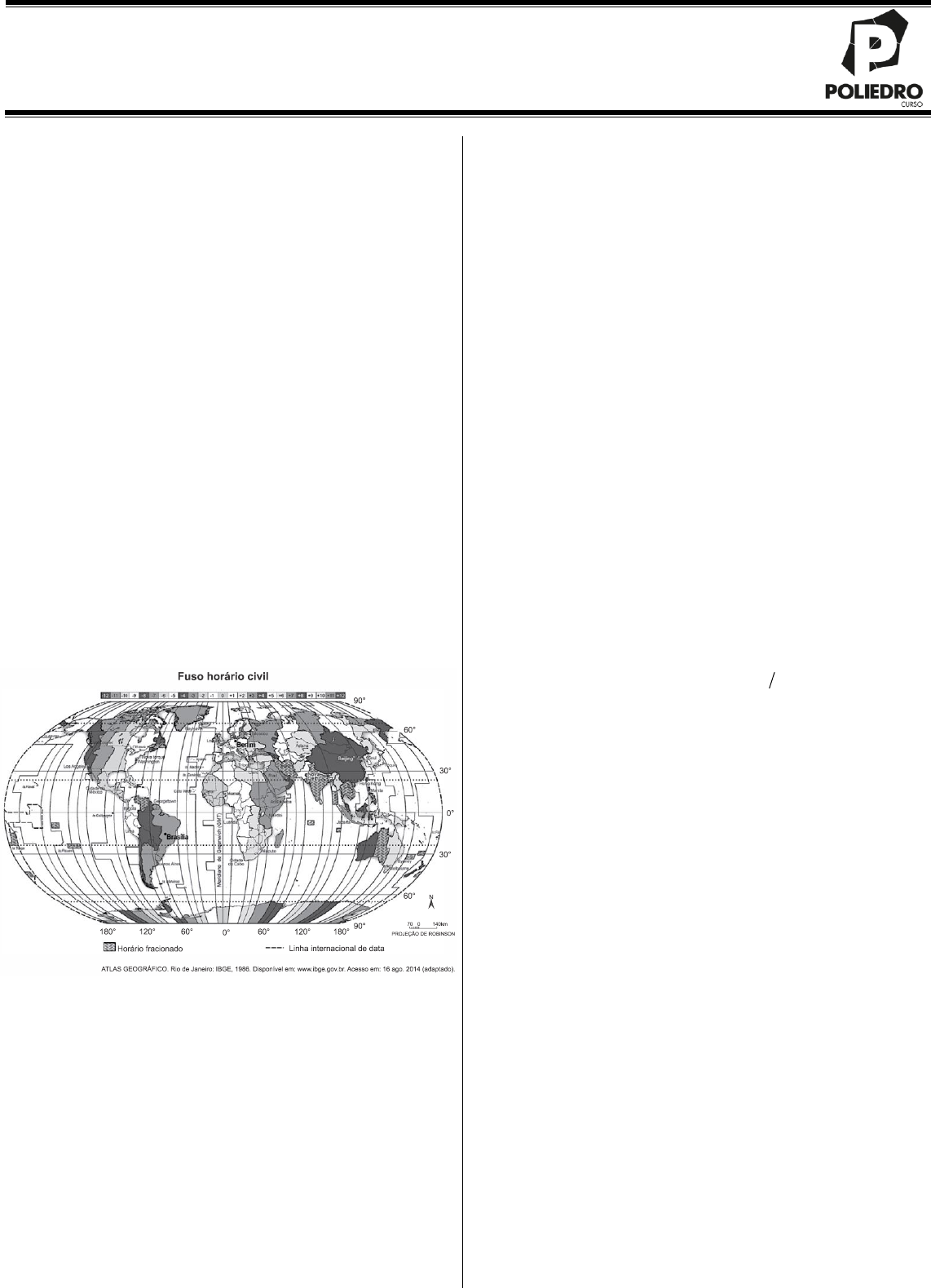[02] os fusos horários apresentam 15º de longitude, portanto, se