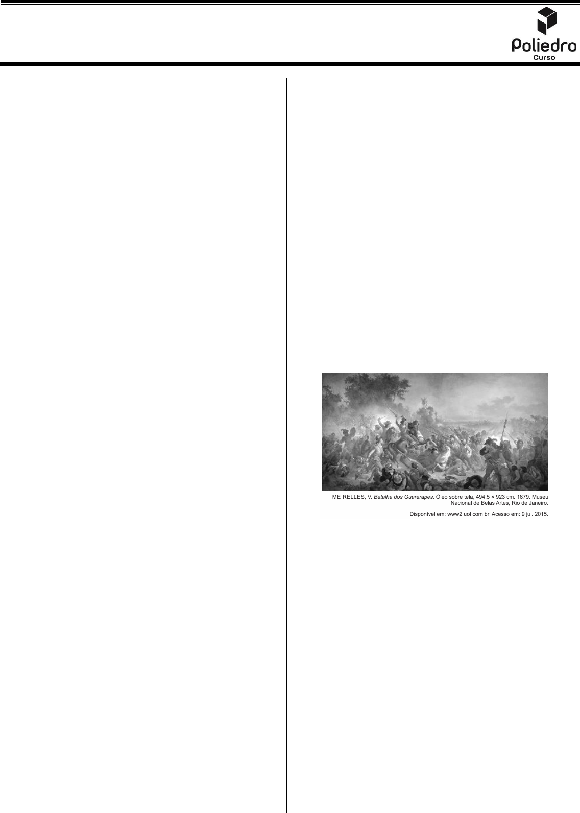 Romantismo (Aspectos Teóricos e poesia) Prof. Mariana Neto Página 1 de 7 1. (Unesp 2019) Tal movimento não era apenas um movimento europeu de caráter universal, conquistando uma nação após outra e criando uma linguagem literária universal que, em última análise, era tão inteligível na Rússia e na Polônia quanto na Inglaterra e na França; ele também provou ser uma daquelas correntes que, como o Classicismo da Renascença, subsistiu como fator duradouro no desenvolvimento da arte. Na verdade, não existe produto da arte moderna, nenhum impulso emocional, nenhuma impressão ou estado de espírito do homem moderno, que não deva sua sutileza e variedade à sensibilidade que se desenvolveu a partir desse movimento. Toda exuberância, anarquia e violência da arte moderna, seu lirismo balbuciante, seu exibicionismo irrestrito e profuso, derivaram dele. E essa atitude subjetiva e egocêntrica tornou-se de tal modo natural para nós, tão absolutamente inevitável, que nos parece impossível reproduzir sequer uma sequência abstrata de pensamento sem fazer referência aos nossos sentimentos. (Arnold Hauser. História social da arte e da literatura, 1995. Adaptado.) O texto refere-se ao movimento denominado a) Barroco. b) Arcadismo. c) Realismo. d) Romantismo. e) Simbolismo. 2. (Espcex (Aman) 2018) Sobre o Romantismo no Brasil, marque a afirmação correta. a) A arte romântica pôs fim a uma tradição clássica de três séculos e dá início a uma nova etapa na literatura, voltada aos assuntos contemporâneos - efervescência social e política, esperança e paixão, luta e revolução - e ao cotidiano do homem burguês. b) O lema da bandeira brasileira "Ordem e Progresso" é nitidamente marcado pelos ideais românticos: parte da suposição de que é necessário ordem social para que haja o progresso da sociedade. c) O romantismo era um movimento antimaterialista e antirracionalista, que usava símbolos, imagens, metáforas e sinestesias com a finalidade de exprimir o mundo interior, intuitivo e antilógico. d) O movimento inspirou-se em uma lendária região da Grécia Antiga, dominada pelo deus Pan e habitada por pastores, que viviam de modo simples e espontâneo e se divertiam cantando, fazendo disputas poéticas e celebrando o amor e o prazer. e) O estilo romântico registra o espírito contraditório de uma época que se divide entre as influências do Renascimento - o materialismo, o paganismo e o sensualismo - e da onda de religiosidade trazida sobretudo pela Contrarreforma. TEXTO PARA AS PRÓXIMAS 2 QUESTÕES: Para responder à(s) questão(ões), considere o texto abaixo. Os poetas do nosso Romantismo atestam diferentes estações do nosso nacionalismo e das ideias, dominantes ou libertárias, que vicejaram ao longo do século XIX. Há em Gonçalves Dias uma exaltação do índio, que não hesitou em dotar de algumas virtudes aristocráticas caprichosamente combinadas com as da vida natural; há em Castro Alves o voo de condor para ideais humanistas, em combate aos horrores da escravidão. Mesmo o lirismo intimista de um Álvares de Azevedo não deixa de ecoar algo dos mestres europeus que, como Byron ou Victor Hugo, ampliam os contornos da vida subjetiva para que ela venha a ocupar o centro de um palco público, interpretando sentimentos e aspirações da época. DOMIGUES, Alaor, inédito. 3. (Puccamp 2018) Do quadro apresentado nesse texto, depreende-se que nossa poesia romântica: a) não apenas mostrou sua independência em relação aos modelos europeus como, de fato, chegou a superá-los. b) manifestou-se qual um painel de temas, estilos e ideias capazes de representar variadas gamas do Romantismo. c) direcionou-se sobretudo para o fortalecimento do nosso desejo de emancipação do domínio estrangeiro. d) aferrou-se aos domínios da subjetividade, deixando em segundo plano os ideais propriamente históricos. e) os temas libertários universais foram abraçados sem que neles se divisasse a presença de qualquer inflexão local. 4. (Puccamp 2018) O que nesse texto se afirma sobre Gonçalves Dias é extensivo à prosa de a) Manuel Antônio de Almeida, quando se pensa na inflexão histórica que este deu à sua obra. b) Machado de Assis, em cujos livros expandiu-se igualmente o anseio de afirmação nacional. c) José de Alencar, quando se pensa em sua ficção voltada para os mitos fundadores e para a natureza. d) Raul Pompeia, por conta do caráter intimista e autobiográfico de seu principal romance. e) Bernardo Guimarães, tendo em vista a dura análise que fez este dos costumes burgueses 5. (Enem 2017) Pertencente ao Romantismo, a obra de Victor Meirelles caracteriza-se como uma a) descrição dramática da guerra. b) inclinação ao retrato nacionalista. c) estilização das revoltas populares. d) construção da identidade brasileira. e) representação das obras francesas. 6. (Enem PPL 2018) Talvez julguem que isto são voos de imaginação: é possível. Como não dar largas à imaginação, quando a realidade vai tomando proporções quase fantásticas, quando a civilização faz prodígios, quando no nosso próprio país a inteligência, o talento, as artes, o comércio, as grandes ideias, tudo pulula, tudo cresce e se desenvolve? Na ordem dos melhoramentos materiais, sobretudo, cada dia fazemos um passo, e em cada passo realizamos uma coisa útil para o engrandecimento do país. ALENCAR, J. Ao correr da pena. Disponível em: www.dominiopublico.gov.br. Acesso em: 12 ago. 2013. No fragmento da crônica de José de Alencar, publicada em 1854, a temática nacionalista constrói-se pelo elogio ao(à) a) passado glorioso. b) progresso nacional. c) inteligência brasileira. d) imponência civilizatória. e) imaginação exacerbada. Página 2 de 7 7. (Upe 2015) Amor Quand la mort est si belle, Il est doux de mourir. V. Hugo Amemos! Quero de amor Viver no teu coração! 2Sofrer e amar essa dor Que desmaia de paixão! Na tu'alma, em teus encantos E na tua palidez 