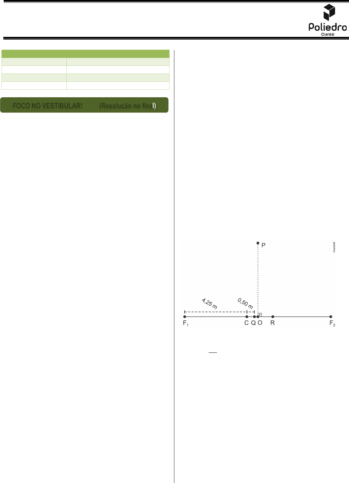 MATERIAL EXTRA – (Fenômenos Ondulatórios – Aulas 23 e 24) Turma Extensivo Online – (FÍSICA / F.3) Professor Fabio Teixeira Página 1 de 6 1. (Enem PPL 2017) Ao sintonizar uma estação de rádio AM, o ouvinte está selecionando apenas uma dentre as inúmeras ondas que chegam à antena receptora do aparelho. Essa seleção acontece em razão da ressonância do circuito receptor com a onda que se propaga. O fenômeno físico abordado no texto é dependente de qual característica da onda? a) Amplitude. b) Polarização. c) Frequência. d) Intensidade. e) Velocidade. 2. (Enem 2014) Ao sintonizarmos uma estação de rádio ou um canal de TV em um aparelho, estamos alterando algumas características elétricas de seu circuito receptor. Das inúmeras ondas eletromagnéticas que chegam simultaneamente ao receptor, somente aquelas que oscilam com determinada frequência resultarão em máxima absorção de energia. O fenômeno descrito é a a) difração. b) refração. c) polarização. d) interferência. e) ressonância. 3. (Upf 2014) Em 2014, o Brasil sediará a Copa do Mundo de Futebol. Em virtude das possíveis manifestações das torcidas, os estádios de futebol foram construídos de modo a suportar as “vibrações” produzidas. Se todos os torcedores, ao mesmo tempo, começarem, por exemplo, a pular e a bater os pés no chão, as estruturas das arquibancadas podem desabar, provocando uma tragédia. O fenômeno físico que melhor descreve a situação trágica mencionada é: a) Reflexão. b) Refração. c) Ressonância. d) Difração. e) Convecção. 4. (Enem PPL 2013) As moléculas de água são dipolos elétricos que podem se alinhar com o campo elétrico, da mesma forma que uma bússola se alinha com um campo magnético. Quando o campo elétrico oscila, as moléculas de água fazem o mesmo. No forno de micro-ondas, a frequência de oscilação do campo elétrico é igual à frequência natural de rotação das moléculas de água. Assim, a comida é cozida quando o movimento giratório das moléculas de água transfere a energia térmica às moléculas circundantes. HEWITT, P. Física conceitual. Porto Alegre: Bookman, 2002 (adaptado). A propriedade das ondas que permite, nesse caso, um aumento da energia de rotação das moléculas de água é a a) reflexão. b) refração. c) ressonância. d) superposição. e) difração. 5. (Ufrgs 2019) Considere as afirmações abaixo, sobre o fenômeno da difração. I. A difração é um fenômeno ondulatório que ocorre apenas com ondas sonoras. II. A difração que ocorre quando uma onda atravessa uma fenda é tanto mais acentuada quanto menor for a largura da fenda. III. A difração que ocorre quando uma onda atravessa uma fenda é tanto mais acentuada quanto maior for o comprimento de onda da onda. Quais estão corretas? a) Apenas I. b) Apenas II. c) Apenas I e III. d) Apenas II e III. e) I, II e III. 6. (Epcar (Afa) 2022) Considere duas fontes pontuais, 1F e 2F , coerentes, separadas por uma certa distância, que emitem ondas periódicas harmônicas de frequência f 340 Hz= em um meio bidimensional, homogêneo e isotrópico. Um sensor de interferência é colocado em um ponto P, que se encontra sobre a mesma mediatriz que o ponto O, pertencente ao segmento que une as fontes 1F e 2F , como representa a figura seguinte. No ponto P, o sensor registra uma interferência construtiva. Posteriormente, este sensor é movido para o ponto O ao longo do segmento OP e deslocado para o ponto C, distante 4,25 m da fonte 1F . Nesse ponto C, o sensor se posiciona na segunda linha nodal da estrutura de interferência produzida pelas fontes. Reposicionando o sensor para o ponto Q, distante 0,50 m do ponto C, obtém-se a primeira linha nodal. Nessas condições, a distância x, em metro, entre o ponto Q e o segundo máximo secundário, localizado no ponto R, é igual a a) 1,00 b) 1,25 c) 1,50 d) 1,75 7. (Unioeste 2021) Um home teather é um sistema de som multicanal no qual várias fontes sonoras são posicionadas ao redor do observador, proporcionando uma sensação mais imersiva e realista daquilo que é visto na TV. Testando seu home teather recém comprado, uma pessoa liga somente as caixas de som A e B, que estão posicionadas a uma distância de 3,0 m e 2,0 m respectivamente, em relação ao observador, conforme mostra a ROTEIRO DE ESTUDOS FOCO NO VESTIBULAR! OBRIGATÓRIOS 1, 3, 4, 8, 9 e 17 APROFUNDAMENTO 2, 5, 7, 10, 12, 13, 14, 15 e 18 DESAFIO 6, 11 e 16 FOCO NO VESTIBULAR! (Resolução no final) Página 2 de 6 figura abaixo. As duas caixas são idênticas e emitem ondas sonoras em fase, com mesma intensidade e com frequência de 0,85 kHz. Sabendo que a velocidade de propagação do som no ar é de 340 m s, indique a alternativa CORRETA. a) O comprimento das ondas sonoras emitidas que chegam no observador é de 0,5 m. b) As ondas sonoras provenientes de A e B chegam no observador com velocidades diferentes. c) A interferência construtiva das ondas sonoras, emitidas por A e B, no observador somente seria possível se as distâncias entre as caixas e o observador fossem iguais. d) O volume do som produzido pelas caixas A e B, está diretamente relacionado com valor da frequência da onda sonora. e) Na posição do observador a interferência das ondas emitidas por A e B é destrutiva. 8. (Fmp 2021) Em um laboratório de ondas, uma das extremidades de uma corda homogênea é fixada na parede, e são gerados dois pulsos na corda, como mostra a figura abaixo. A superposição entre a reflexão do primeiro pulso e o segundo pulso incidente gera a) uma interferência construtiva b) a refração dos pulsos c) a polarização dos pulsos d) uma interferência destrutiva e) a difração dos pulsos 9. (Enem 2020) Os fones de ouvido tradicionais transmitem a música diretamente para os nossos ouvidos. Já os modelos dotados de tecnologia redutora de ruído – Cancelamento de Ruído (CR) – além de transmitirem música, também reduzem todo ruído