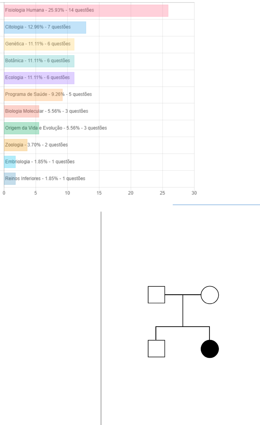 FACULDADE DE MEDICINA SANTA CASA/SP Prof. Davi anos 2018 a 2020 (https://sistema.elaboreprovas.com.br/estatistica) 01. (Santa Casa SP/2020) A molécula de DNA, existente no núcleo celular, é formada por duas fitas complementares. Uma dessas fitas pode servir de molde para a síntese de RNA mensageiro, que será traduzido em proteína pelos ribossomos. Em algumas células, esse “trabalho” metabólico pode ser realizado pelos polirribossomos. a) Qual tipo de ligação química ocorre entre as bases nitrogenadas, permitindo a complementariedade entre elas? Caso um segmento de DNA seja 3’ATACTC5’, qual será sua fita complementar? b) Os polirribossomos sintetizam proteínas com o mesmo número, tipo e sequência de aminoácidos. Por que a sequência de aminoácidos é sempre igual após a tradução de uma mesma molécula de RNA mensageiro? O que existe na molécula de RNA mensageiro que indica o término da síntese proteica? 02. (Santa Casa SP/2020) A maioria dos líquens são associações entre dois organismos: fungos ascomicetos e algas verdes. Eles vivem em associação mutualística, em que cada um acumula carboidratos típicos e apresenta metabolismo próprio, mas os dois seres vivos são beneficiados. a) Cite os polissacarídeos de reserva encontrados em fungos e em algas verdes. b) Explique por que um líquen pode ser drasticamente afetado se for mantido por um longo período no escuro. 03. (Santa Casa SP/2020) A galactosemia é uma doença autossômica monogênica causada pela deficiência nas enzimas que metabolizam a galactose, o que causa acúmulo dessa substância no sangue. Caso uma criança com essa doença consuma alimento com galactose, ela pode apresentar vômitos, icterícia e atraso no desenvolvimento. A fenilcetonúria também é uma doença autossômica monogênica, causada pelo acúmulo do aminoácido fenilalanina no sangue. Caso um recém- nascido com essa doença consuma o aminoácido, ele pode ter deficiência intelectual. Sabe-se que os genes que determinam as referidas doenças segregam-se independentemente durante a meiose. a) A galactosemia e a fenilcetonúria podem ser detectadas no “teste do pezinho”, que é realizado logo após o nascimento de um bebê. Qual material biológico é coletado para se realizar o “teste do pezinho”? Em qual alimento de origem animal é encontrada a galactose? b) No heredograma, a mulher destacada apresenta as duas doenças. Qual o genótipo dessa mulher, referente às duas doenças? Qual a probabilidade de o irmão dessa mulher ser portador dos alelos responsáveis pelas duas doenças? 04. (Santa Casa SP/2020) Analise as afirmações que indicam a formação de dois organismos transgênicos, obtidos por técnicas semelhantes, utilizando-se enzimas de restrição, ligases e células dos respectivos seres vivos. I. Uma bactéria recebe, em seu cromossomo, um gene humano que tem informação para a síntese de insulina. II. Um zigoto de uma cabra recebe um gene humano que tem informação para a síntese da proteína glucocerebrosidase. Esse zigoto se desenvolve e dá origem a uma cabra transgênica. https://sistema.elaboreprovas.com.br/estatistica Caso a bactéria gere descendentes por bipartição e a cabra transgênica cruze com um macho não transgênico e gere um filhote, a probabilidade de esses descendentes também serem transgênicos, em ambos os casos, será de a) 50% e 50%, respectivamente. b) 100% e 50%, respectivamente. c) 50% e 25%, respectivamente. d) 100% e 25%, respectivamente. e) 100% e 100%, respectivamente. 05. (Santa Casa SP/2020) O feto humano apresenta entre os dedos membranas interdigitais, as quais desaparecem ao longo do desenvolvimento porque as células dessas membranas possuem um mecanismo de morte celular geneticamente programado. Isso também ocorre de forma saudável nas células intestinais e nas células da medula óssea vermelha. Esse mecanismo é denominado a) clasmocitose. b) diapedese. c) necrose. d) apoptose. e) fagocitose. 06. (Santa Casa SP/2020) Em uma população em equilíbrio gênico, a frequência do alelo a é de 60%. No heredograma, Maria, que apresenta o fenótipo recessivo, se casa com Fred, que apresenta fenótipo dominante. Dois anos depois, ela está grávida. A probabilidade de Maria gerar, nessa gestação, uma criança com genótipo idêntico ao seu será de a) 12%. b) 40%. c) 48%. d) 24%. e) 50%. 07. (Santa Casa SP/2019) Duas células, A e B, foram cultivadas, separadamente, em soluções adequadas à sobrevivência. Em seguida, foram transferidas para uma mesma solução com concentração salina diferente da anterior. O gráfico mostra a variação do volume das células nesta solução. As células A e B e a característica da solução para qual elas foram transferidas são, respectivamente, a) macrófago, paramécio e solução hipertônica. b) paramécio, macrófago e solução hipertônica. c) paramécio, macrófago e solução hipotônica. d) macrófago, paramécio e solução hipotônica. e) paramécio, macrófago e solução isotônica. 08. (Santa Casa SP/2019) No tomateiro, o alelo G determina flor amarela e o alelo g, flor branca. O alelo M determina fruto vermelho e o alelo m, fruto amarelo. Uma planta que produz flores brancas e frutos amarelos foi cruzada com uma planta duplo-heterozigótica. As sementes obtidas foram cultivadas e deram origem a tomateiros com a proporção fenotípica mostrada na tabela: O arranjo dos genes ligados e a distância entre eles no tomateiro duplo- heterozigótico são a) Gm/gM e 16 UR. b) GM/gm e 42 UR. c) GM/gm e 8 UR. d) GM/gm e 16 UR. e) Gm/gM e 8 UR. 09. (Santa Casa SP/2019) Em um estudo sobre o DNA genômico em organismos procariotos, um grupo de células foi cultivado em um meio contendo substância mutagênica. Outro grupo de células, usado como controle, não recebeu a substância. Os resultados mostraram a presença de nucleotídeos de timina no citoplasma das células dos dois grupos. Uma proteína prod