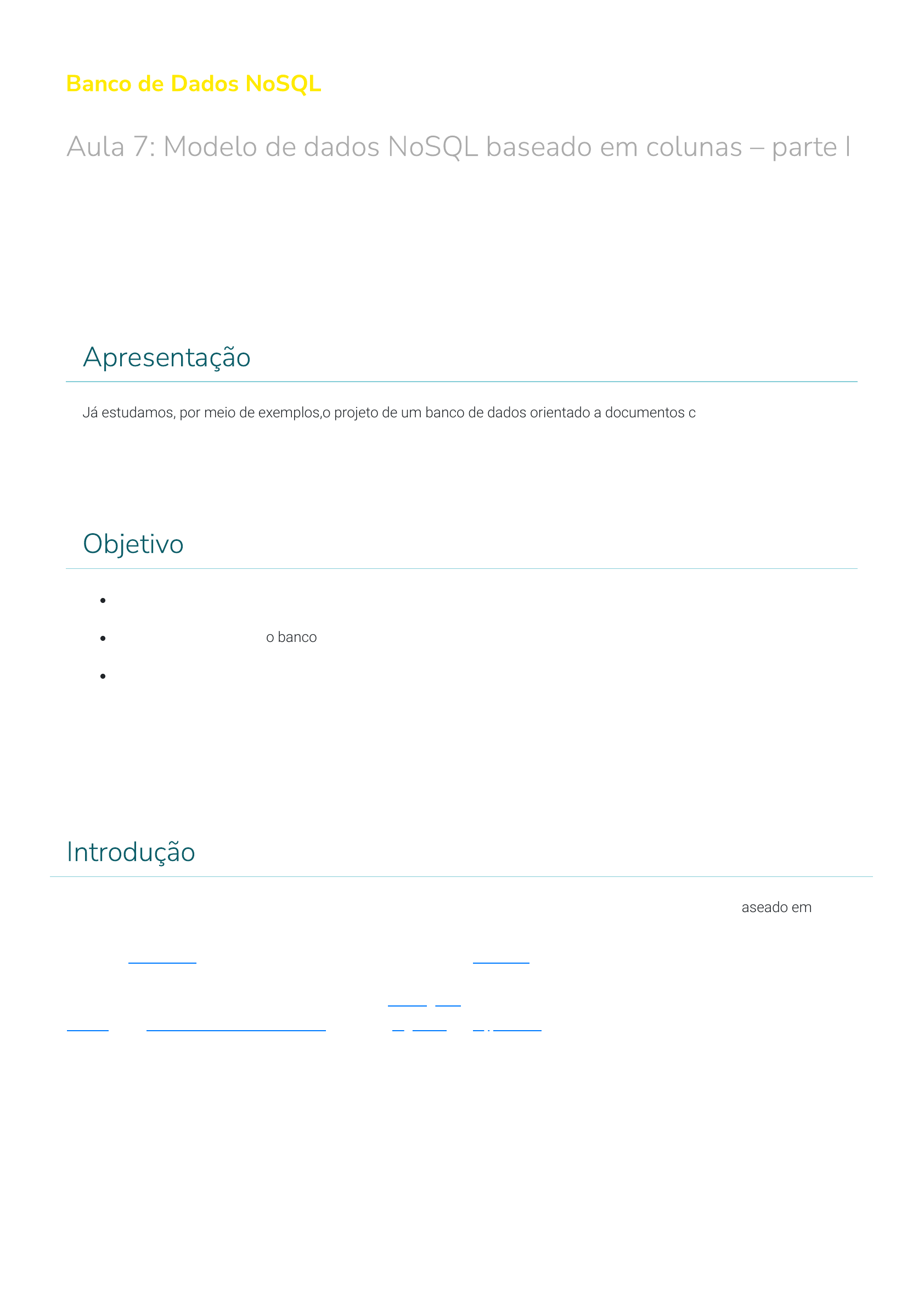 Aula 7: Modelo de dados NoSQL baseado em colunas – parte I