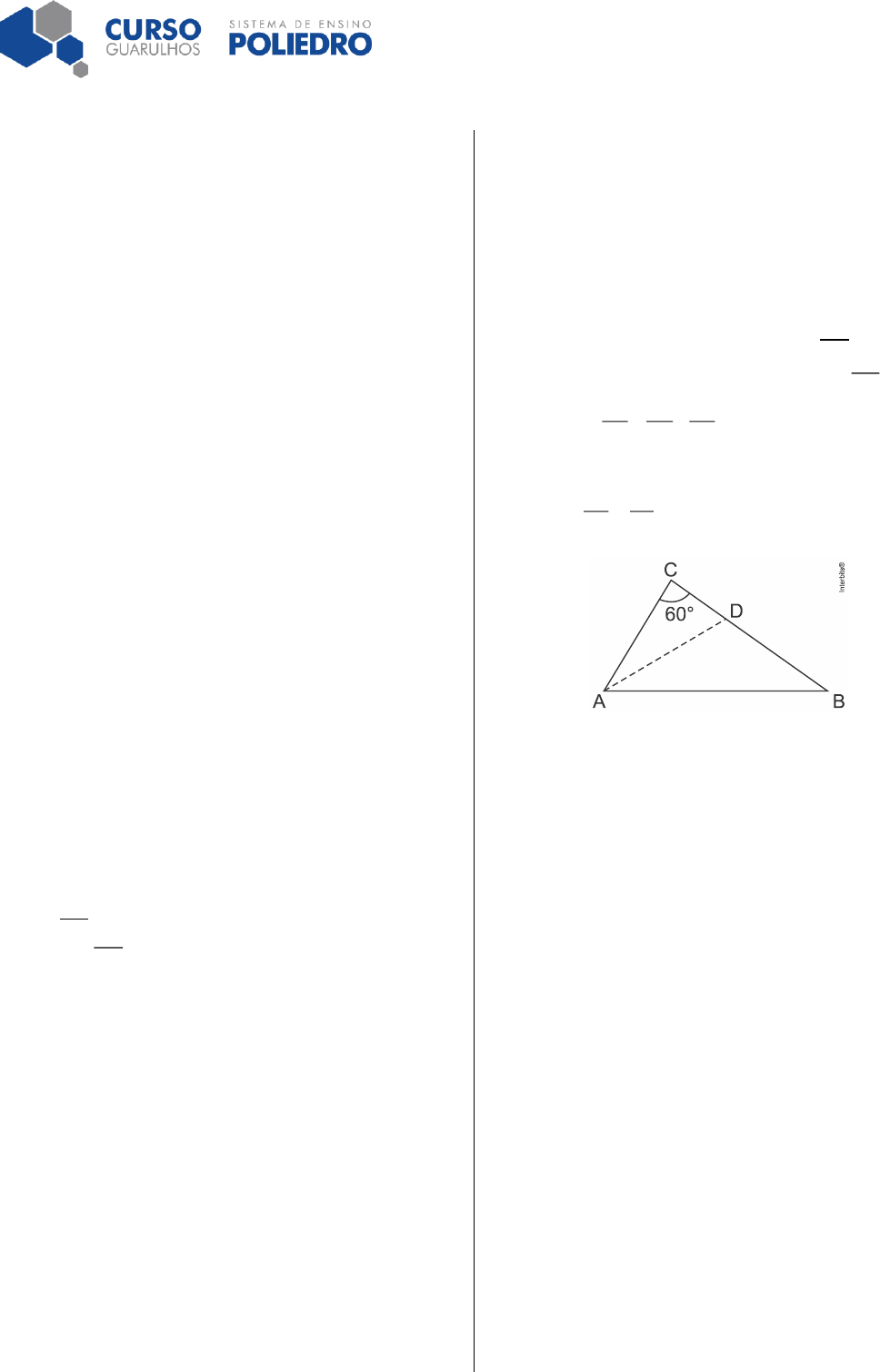 Prof. Anderson Weber Matemática Página 1 de 2 Lista de Exercícios – Pontos Notáveis em um Triângulo 1ª Parte 1. Determine a distância do baricentro ao circuncentro de um triangulo retângulo de hipotenusa 24cm. 2. Determine a distância entre o ortocentro e o baricentro em um triângulo retângulo de hipotenusa 60cm. 3. Num triângulo ABC, retângulo em A, a mediana AM intercepta a bissetriz interna de B em D. Determine a medida do ângulo BDM em função do ângulo de vértice B do triângulo ABC. 4. Num triangulo ABC, onde a diferença entre os ângulos B e C é de 40°. Calcule o menor ângulo formado pela altura e pela bissetriz de A. 5.Num triângulo ABC, as bissetrizes internas dos ângulos B e C formam um ângulo de 126°. Qual o menor ângulo formado pelas alturas que parte de B e C? 6.O triângulo MNP é tal que M=80° e P=60°. A medida do ângulo formado pela bissetriz do ângulo interno N com a bissetriz do ângulo externo P é: a) 20° b) 30° c) 40° d) 50° e) 60° 7. ABCD é um paralelogramo, M é o ponto médio do lado AB , P é o ponto de intersecção entre a diagonal AC e o segmento DM. Sendo DP = 16, determine a medida PM. 8. Sendo H o ortocentro do triângulo ABC e BHC =150°, determine a medida do ânguo de ABC com vértice em A. 9. Se H é o ortocentro de um triângulo isósceles ABC de base BC e BHC =50°, determine os ângulos do triângulo. 10. Se P é o incentro do triângulo ABC e BPC =125°, determine A. 11. O circuncentro de um triângulo isósceles é interno ao triângulo e duas mediatrizes formam um ângulo de 50°. Determine os ângulos desse triângulo. 12. Em um triângulo ABC os ângulos A e B medem, respectivamente, 70° e 60°. Determine a razão entre os dois maiores ângulos formados pelas intersecções das três alturas. 13. Em um triângulo ABC, os ângulos A e B medem, respectivamente, 86° e 34°. Determine o ângulo formado pela mediatriz relativa ao lado BC e pela bissetriz do ângulo C. 14. Num triângulo ABC, ACB = 120°, CD é a bissetriz do ACB e o ponto D está sobre AB . Prove que: 1 1 1 CD AC BC 15. (Unicamp 2019) No triângulo ABC exibido na figura a seguir, AD é a bissetriz do ângulo interno em A, e AD DB. O ângulo interno em A é igual a a) 60 . b) 70 . c) 80 . d) 90 . 2ª Parte 16. (Colégio Naval 2017) Analise as afirmativas a seguir. I. Sejam a, b e c os lados de um triângulo, com c b a. Pode-se afirmar que 2 2 2c a b se, e somente se, o triângulo for retângulo. II. Se um triângulo é retângulo, então as bissetrizes internas dos ângulos agudos formam entre si um ângulo de 45 ou 135 . III. O centro de um círculo circunscrito a um triângulo retângulo está sobre um dos catetos. IV. O baricentro de um triângulo retângulo é equidistante dos lados do triângulo. Assinale a opção correta. a) Somente I e II são verdadeiras. b) Somente II e III são verdadeiras. c) Somente I e IV são verdadeiras. d) Somente I, II e IV são verdadeiras. e) As afirmativas I, II, III e IV são verdadeiras. Página 2 de 2 17. (Escola Naval 2016) Um triângulo inscrito em um círculo possui um lado de medida 42 3 oposto ao ângulo de 15 . O produto do apótema do hexágono regular pelo apótema do triângulo equilátero inscritos nesse círculo é igual a: a) 3( 3 2) b) 4(2 3 3) c) 8 3 12 d) 2(2 3 3) e) 6( 2 1) 18. (Unesp 2013) Um aluno precisa localizar o centro de uma moeda circular e, para tanto, dispõe apenas de um lápis, de uma folha de papel, de uma régua não graduada, de um compasso e da moeda. Nessas condições, o número mínimo de pontos distintos necessários de serem marcados na circunferência descrita pela moeda para localizar seu centro é a) 3. b) 2. c) 4. d) 1. e) 5. 19. (Reta de Euler) Mostre que em qualquer triângulo, o ortocentro, o baricentro e o circuncentro são colineares (estão na mesma reta). 20. Na figura abaixo, o triângulo é retângulo e as quatro circunferências são tangentes entre si e também tangenciam um dos lados do triângulo (no caso das duas centrais) ou dois lados do triângulo (no caso das duas extremas). Sabendo-se que os catetos deste triângulo medem 3 e 4 determine a medida do raio das circunferências. Ah! As medidas dos raios são iguais e o cateto de medida 4 é aquele que tangencia as quatro circunferências. Sugestão: Calcule a área do triângulo em função do raio. GABARITO: 1.4 cm 2.20cm 3.3B/2 4.20° 5.72° 6.c 7. 8 8. 30° 9. 25°, 25° e 130° 10. 70° 11. (50°, 50° e 80°) ou (65°, 65° e 50°) 12. 13 12 12 13 ou 13. 60° 14.C 15.A 16. A 17. A 19. 2 5