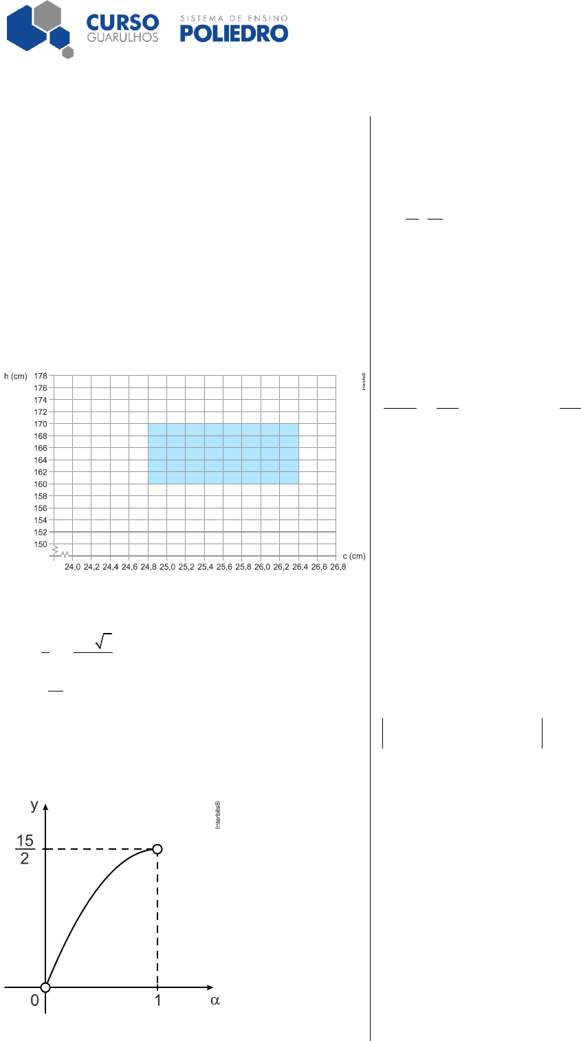 Prof. Anderson Weber Matemática Página 1 de 4 Lista de Exercícios – Equação da Reta Gabarito e Resolução Resposta da questão 1: [B] Resposta da questão 2: [E] Resposta da questão 3: [D] Resposta da questão 4: [D] Resposta da questão 5: a) 41 b) Resposta da questão 6: a) y 2x 4.= − + b) − = + 1 6 3 y x . 2 2 c) 16 P , 0 . 9 = Resposta da questão 7: a) −3 3 .α b) Resposta da questão 8: [E] Resposta da questão 9: a) 5/4 b) a=4 Resposta da questão 10: a) 7 14 , . 11 11 b) Demonstração Resolução: Resposta da questão 1: [B] A equação que descreve a relação entre a quantidade de combustível no tanque e a distância percorrida pelo automóvel é dada por x y x 1 y 50. 500 50 10 + = = − + Resposta da questão 2: [E] De acordo com as informações, temos r : y 10x a= + e s : y 9x b.= + Logo, se x 6= é a abscissa do ponto de interseção de r e s, então 10 6 a 9 6 b b a 6. + = + = + Resposta da questão 3: [D] Desde que os pontos (0, 200000), (2, 240000) e 1(10, y ) estão alinhados, vem 1 1 1 0 2 10 0 0 2y 2000000 400000 2400000 0 200000 240000 y 200000 y R$ 400.000,00. = + − − = = Prof. Anderson Weber Matemática Página 2 de 4 Resposta da questão 4: [D] A equação segmentária da reta AB é x y 2x 3y 12 1. 6 4 − = + = − Desse modo, como A (6, 0)= e B (0, 4),= − segue-se que o ponto médio do segmento AB tem coordenadas 6 0 0 ( 4) , (3, 2). 2 2 + + − = − Resposta da questão 5: a) Se c 272 mm 27,2 cm,= = então 5 27,2 28 n 41. 4 + = = b) Se 38 n 40, então 5c 28 38 40 152 5c 28 160 4 124 132 c 5 5 24,8 c 26,4. + + Portanto, sendo 160 h 170, com h em centímetros, podemos concluir que o conjunto de pares ordenados que satisfazem as condições corresponde à região indicada na figura seguinte. Resposta da questão 6: a) Se OABC é quadrado, então OA OC 2= = e, portanto, A (2, 0).= Ademais, sendo E (0, 4),= vem x y 1 y 2x 4. 2 4 + = = − + A resposta é y 2x 4.= − + b) Desde que ECD 60 ,= temos BCD 30 .= Ademais, como CD 2,= vem D 3 x CD cos30 2 3. 2 = = = Se M é o ponto médio de CE, então 1 1 CM CE 2 1. 2 2 = = = Logo, encontramos Dy OC CM 2 1 3.= + = + = A equação pedida é 1 1 6 3 y 3 (x 3) y x . 2 2 2 − − = − = + c) Seja P (k, 0),= com 0 k 2. A equação que passa por E e por P é x y 4 1 y x 4. k 4 k + = = − + Seja Q ( , 2)β= o ponto em que EP intersecta CB. Logo, vem 4 k 2 4 . k 2 = − + = Portanto, segue que = = + = + − − = − = k k 0 k 0 0 k 2 2 k1 1 (OPQC) 2 (PABQ) 22 2 2 2 0 0 2 2 0 0 0 2 2 0 | 2k k | 2 | 4 4 k 2k | 3k 2 (8 3k) 16 k . 9 A resposta é 16 P , 0 . 9 = Prof. Anderson Weber Matemática Página 3 de 4 Resposta da questão 7: a) Sendo α o coeficiente angular da reta y x,= temos tgAOD .α= Logo, como a abscissa do ponto D é Dx 5,= segue que a sua ordenada pode ser escrita sob a forma Dy 5 .α= Ademais, a equação da reta BC é dada por 5 5 y 0 (x 8) y (x 8). 3 3 − = − − = − − Sabendo que DE é paralelo a AB, vem E 5 5 (x 8) x 8 3 . 3 α α= − − = − Por conseguinte, a resposta é E DDE x x 8 3 5 3 3 . α α = − = − − = − b) Tem-se que 1 15 f( ) (DE AB) AD ( 2), 2 2 α α α= + = − − com 0 1.α Logo, o gráfico de f é um arco de parábola, cujas interseções com o eixo x são os pontos de abscissa zero e 2, e vértice em 15 1, . 2 Resposta da questão 8: [E] Seja E o ponto de interseção da reta que passa pelos pontos C e D com o eixo das ordenadas. A equação de tal reta é dada por k 0 k y 0 (x 1) y (x 1). k 1 k 1 − − − = − = − − − + Em consequência, vem k E 0, k 1 = − + e, portanto, sendo k 0, temos 2 1 k 1 k (ADE) (ABCE) 1 k 1 1 1 2 k 1 2 k 1 k k 1 0 1 5 k . 2 = + = + + + + − − = + = Resposta da questão 9: a) Se a abscissa do ponto P é igual a 1, então pela função f(x) dada, P terá coordenadas (1,1). Analogamente, se a 2,= então pela função f(x) dada, Q terá coordenadas ( 2,1 2). Assim, a área do quadrilátero T será: T T 111 1 1 1 52S 1 1 S 2 2 2 4 4 = + + = + = Calculando o quadrado da distância entre P e Q, tem-se: ( ) ( ) ( ) 2 22 PQ PQ PQ 1 5 51d 1 2 1 1 d d 2 4 4 4 = − + − = + = = b) Seja I o ponto de intersecção entre a reta r e a função f(x). Se sua coordenada y é igual a a 2, então, pela função f(x) sua coordenada x será 2 a. Ou seja, o ponto I tem coordenadas ( )2 a,a 2 . Considerando como s a reta que passa por P e Q, tem-se que as coordenadas do ponto P são (1,1), e do ponto Q são (a, 1 a). O coeficiente angular desta reta será: s 1 1 1a a 1 a α − = = − − Logo, o coeficiente angular da reta r que passa pela origem e é ortogonal à reta que contém P e Q será igual a r aα = (condição de perpendicularidade). Assim, a equação da reta r pode ser escrita como: y 0 a (x 0) reta r y ax − = − = Prof. Anderson Weber Matemática Página 4 de 4 Como o ponto I pertence à reta r e tem suas coordenadas ( )2 a, a 2 , pode-se escrever: a 2 y ax a a 4 2 a = = = Resposta da questão 10: a) A reta r tem coeficiente angular igual a: r 7 2 3,5 α = = Logo, a equação da reta r é igual a y 2x.= A reta s tem coeficiente angular igual a: s 7 3,5 7 8 3,5 9 α − = = − Logo, a equação da reta r é igual a: 7 y 7 (x 8) 7x 9y 7 0 9 − = − − + = O ponto de intersecção destas retas será igual a resolução do sistema formado pelas duas equações de reta. Reorganizando as equações, pode-se escrever: 2x y 0 14x 7y 0 14 11y 14 y 7x 9y 7 14x 18y 14 11 14 7 y 2x 2x x 11 11 − + = − + = − = − = − = − − = − = = = O ponto de intersecção será 7 14 , . 11 11 b) Sabendo que a reta t é paralela à reta s e passa pela origem, pode-se deduzir sua equação: 7 y x 9 = O ponto S pertence à reta t e tem y 3,5.= Sua coordenada x será 7 3,5 x x 4,5. 9 = = Assim, o segmento RS mede 4,5 3,5 1.− = O ponto P pertence à reta t e tem x 8.= Sua coordenada y será 7 56 y 8 x . 9 9 = = Assim, o segmento PQ mede 56 7 7 . 9 9 − = Logo, como RS PQ o trapézio PQRS não é isósceles.