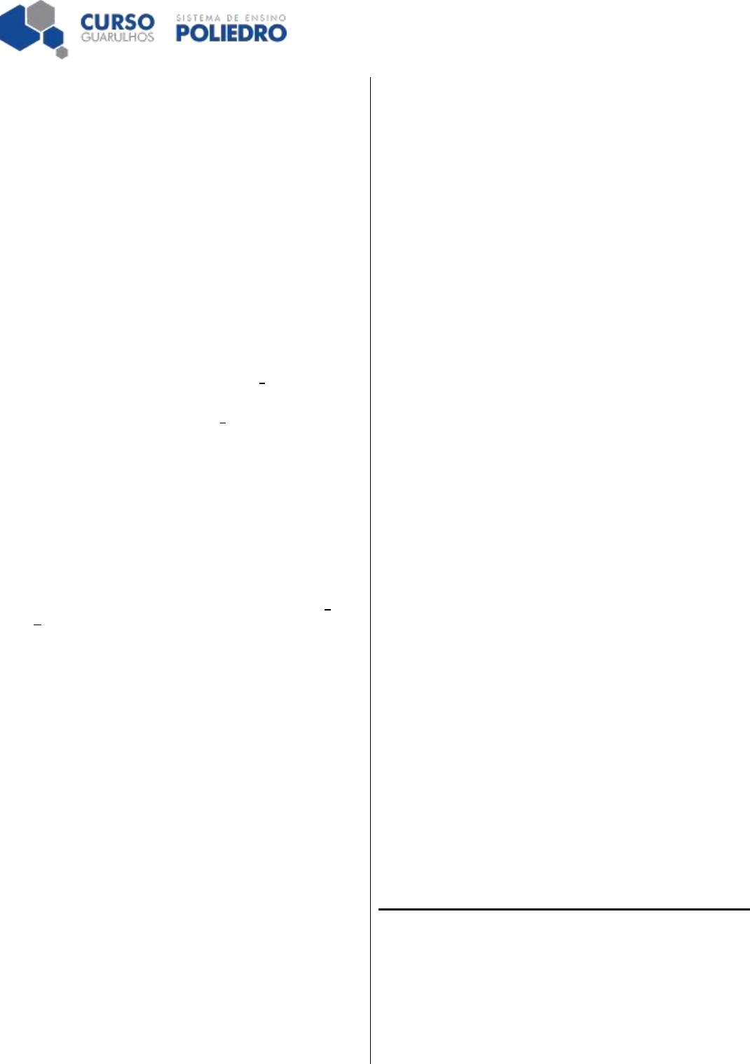 Prof. Johnny Matemática Página 1 de 1 Equações Polinomiais II 1. (Uem 2018) Considere o polinômio 𝑝(𝑥) = 𝑎3𝑥 3 + 𝑎2𝑥 2 + 𝑎1𝑥 + 𝑎0, em que os coeficientes são todos reais. Assinale o que for correto. 01) Se 𝑎0 é não nulo, então o zero nunca será raiz desse polinômio. 02) Se 𝑎3 = 0, então esse polinômio poderá ser fatorado na forma (𝑥 − 𝑟1)(𝑥 − 𝑟2), em que 𝑟1 e 𝑟2 são raízes do polinômio. 04) Se 𝑎2 = 1 e 4 e 5 são as únicas raízes reais de multiplicidade 1 do polinômio, então teremos que 𝑎3 = 0 e 𝑎0 = 20. 08) Se 𝑎3 ≠ 0, então é possível que esse polinômio tenha apenas duas raízes reais de multiplicidade 1. 16) Se 1, 2 e 3 são raízes do polinômio, então 𝑎1 = 11𝑎3. 2. (Unioeste 2018) As raízes do polinômio 𝑃(𝑥) = 𝑥4 + 𝑏𝑥3 + 𝑐𝑥2 + 𝑑𝑥 + 𝑒, são iguais a 𝑖, −𝑖, 3 e 1 2 . Sobre 𝑃(𝑥), pode-se então afirmar que a) a soma dos coeficientes é igual a 7 2 . b) os coeficientes 𝑏, 𝑐, 𝑑 e 𝑒 são números inteiros pares. c) o coeficiente e é múltiplo de 3. d) os coeficientes 𝑏, 𝑐, 𝑑 e 𝑒 são números racionais. e) os coeficientes 𝑏, 𝑐, 𝑑 e 𝑒 não são números reais. 3. (Uepg 2017) Considerando que a equação 𝑥4 − 4𝑥3 + 4𝑥2 − 1 = 0 admite pelo menos uma raiz inteira, assinale o que for correto. 01) A soma das raízes é um número par e natural. 02) As quatro raízes são distintas. 04) Se n é a maior das raízes não inteiras, então 𝑛 + 1 𝑛 = 2√2. 08) Apenas duas das raízes são negativas. 16) A soma das raízes não inteiras é um número inteiro negativo. 4. (Uepg 2017) Um polinômio 𝑃(𝑥) do terceiro grau possui três raízes reais, de tal forma que, se forem colocadas em ordem crescente formam uma progressão aritmética em que a soma de seus termos é 12. A diferença entre o quadrado da maior raiz e o quadrado da menor é 160. Sabendo que o coeficiente do termo de maior grau de 𝑃(𝑥) é 2, assinale o que for correto. 01) Todas as raízes do polinômio são números inteiros relativos. 02) A divisão do polinômio 𝑃(𝑥) por 𝑄(𝑥) = 𝑥 − 6 é exata. 04) A soma dos coeficientes do polinômio é um número maior que 500. 08) A soma das raízes do polinômio é solução da equação 𝑥2 + 14𝑥 + 24 = 0. 16) O coeficiente do termo independente de x de 𝑃(𝑥) é maior que 252. 5. (Fmp 2016) Seja 𝑓:ℝ → ℝ a função polinomial definida por 𝑓(𝑥) = 𝑥4 − 3𝑥3 + 3𝑥 − 9. O fato de 𝑥 = 3 ser um zero da função 𝑓 é equivalente ao fato de o polinômio 𝑥4 − 3𝑥3 + 3𝑥 − 9 ser divisível por a) 𝑥2 − 9 b) 𝑥 + 3 c) 3 d) 𝑥 − 3 e) 𝑥 6. As raízes positivas da equação 𝑥4 − 10𝑥2 + 9 = 0 são as medidas das bases de um trapézio isósceles cuja altura é a soma dessas mesmas raízes. A área desse trapézio é a) 4 b) 8 c) 10 d) 25 7. (Epcar (Afa) 2016) Considere os polinômios 𝑄(𝑥) = 𝑥2 − 2𝑥 + 1 e 𝑃(𝑥) = 𝑥3−3𝑥2 − 𝑎𝑥 + 𝑏, sendo 𝑎 e 𝑏 números reais tais que 𝑎2 − 𝑏2 = −8. Se os gráficos de 𝑄(𝑥) e 𝑃(𝑥) têm um ponto comum que pertence ao eixo das abscissas, então é INCORRETO afirmar sobre as raízes de 𝑃(𝑥) que a) podem formar uma progressão aritmética. b) são todas números naturais. c) duas são os números 𝑎 e 𝑏 d) duas são números simétricos. 8. (Ime 2016) Seja 𝑃(𝑥) = 𝑥2 + 𝑎𝑥 + 𝑏. Sabe-se que 𝑃(𝑥) e 𝑃(𝑃(𝑃(𝑥))) têm uma raiz em comum. Pode-se afirmar que para todo valor 𝑎 e 𝑏 a) 𝑃(−1)𝑃(1) < 0 b) 𝑃(−1)𝑃(1) = 0 c) 𝑃(−1) + 𝑃(1) = 2 d) 𝑃(0)𝑃(1) = 0 e) 𝑃(0) + 𝑃(1) = 0 GABARITO 1: 01 + 04 + 16 = 21. 2: [D] 3: 02 + 04 + 08 + 16 = 30. 4: 01 + 04 + 16 = 21. 5: [D] 6: [B] 7: [B] 8: [D]