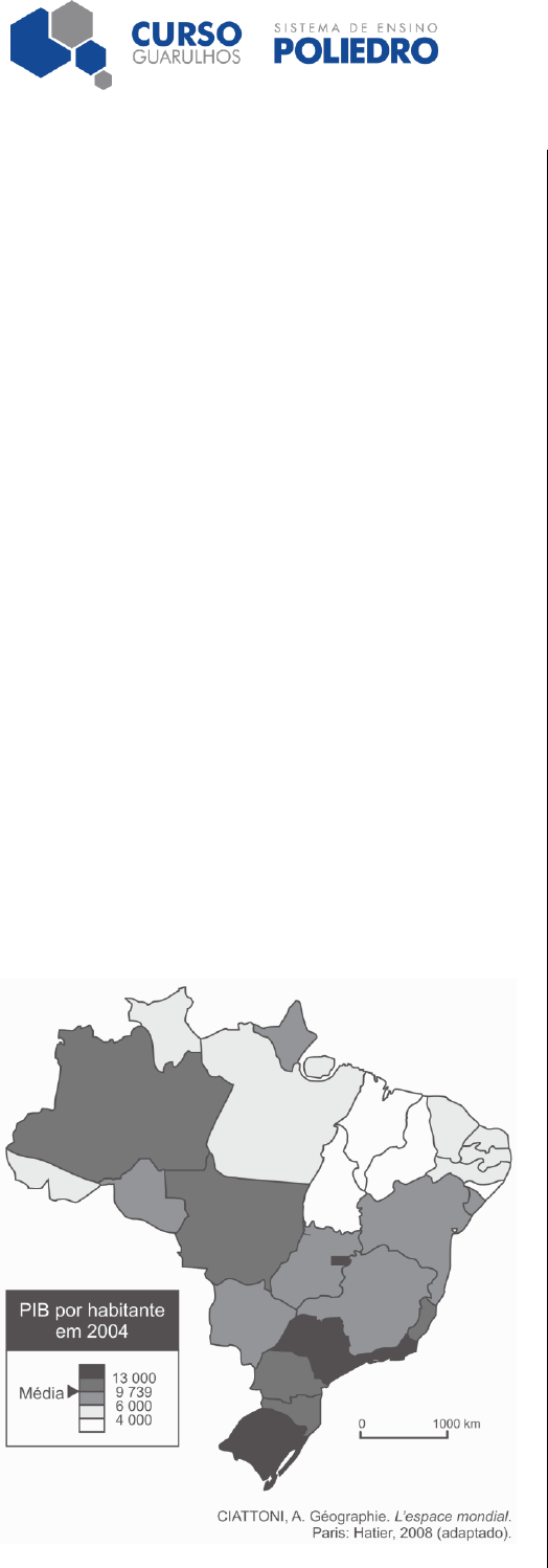 Profº. Marcon Geografia Página 1 de 6 Revisão ENEM 1. (ENEM 2009) As mudanças climáticas e da vegetação ocorridas nos trópicos da América do Sul têm sido bem documentadas por diversos autores, existindo um grande acúmulo de evidências geológicas ou paleoclimatológicas que evidenciam essas mudanças ocorridas durante o Quaternário nessa região. Essas mudanças resultaram em restrição da distribuição das florestas pluviais, com expansões concomitantes de habitats não florestais durante períodos áridos (glaciais), seguido da expansão das florestas pluviais e restrição das áreas não florestais durante períodos úmidos (interglaciais). Disponível em: http://zoo.bio.ufpr.br. Acesso em: 1 maio 2009. Durante os períodos glaciais, a) as áreas não florestais ficam restritas a refúgios ecológicos devido à baixa adaptabilidade de espécies não florestais a ambientes áridos. b) grande parte da diversidade de espécies vegetais é reduzida, uma vez que necessitam de condições semelhantes a dos períodos interglaciais. c) a vegetação comum ao cerrado deve ter se limitado a uma pequena região do centro do Brasil, da qual se expandiu até atingir a atual distribuição. d) plantas com adaptações ao clima árido, como o desenvolvimento de estruturas que reduzem a perda de água, devem apresentar maior área de distribuição. e) florestas tropicais como a amazônica apresentam distribuição geográfica mais ampla, uma vez que são densas e diminuem a ação da radiação solar sobre o solo e reduzem os efeitos da aridez. 2. (ENEM 2009) A partir do mapa apresentado, é possível inferir que nas últimas décadas do século XX, registraram-se processos que resultaram em transformações na distribuição das atividades econômicas e da população sobre o território brasileiro, com reflexos no PIB por habitante. Assim, a) as desigualdades econômicas existentes entre regiões brasileiras desapareceram, tendo em vista a modernização tecnológica e o crescimento vivido pelo país. b) os novos fluxos migratórios instaurados em direção ao Norte e ao Centro-Oeste do país prejudicaram o desenvolvimento socioeconômico dessas regiões, incapazes de atender ao crescimento da demanda por postos de trabalho. c) o Sudeste brasileiro deixou de ser a região com o maior PIB industrial a partir do processo de desconcentração espacial do setor, em direção a outras regiões do país. d) o avanço da fronteira econômica sobre os estados da região Norte e do Centro-Oeste resultou no desenvolvimento e na introdução de novas atividades econômicas, tanto nos setores primário e secundário, como no terciário. e) o Nordeste tem vivido, ao contrário do restante do país, um período de retração econômica, como consequência da falta de investimentos no setor industrial com base na moderna tecnologia. 3. (ENEM 2009) O movimento migratório no Brasil é significativo, principalmente em função do volume de pessoas que saem de uma região com destino a outras regiões. Um desses movimentos ficou famoso nos anos 80, quando muitos nordestinos deixaram a região Nordeste em direção ao Sudeste do Brasil. Segundo os dados do IBGE de 2000, este processo continuou crescente no período seguinte, os anos 90, com um acréscimo de 7,6% nas migrações deste mesmo fluxo. A Pesquisa de Padrão de Vida, feita pelo IBGE, em 1996, aponta que, entre os nordestinos que chegam ao Sudeste, 48,6% exercem trabalhos manuais não qualificados, 18,5% são trabalhadores manuais qualificados, enquanto 13,5%, embora não sejam trabalhadores manuais, se encontram em áreas que não exigem formação profissional. O mesmo estudo indica também que esses migrantes possuem, em média, condição de vida e nível educacional acima dos de seus conterrâneos e abaixo dos de cidadãos estáveis do Sudeste. Disponível em: http://www.ibge.gov.br. Acesso em: 30 jul. 2009 (adaptado). Com base nas informações contidas no texto, depreende-se que a) o processo migratório foi desencadeado por ações de governo para viabilizar a produção industrial no Sudeste. Profº. Marcon Geografia Página 2 de 6 b) os governos estaduais do Sudeste priorizaram a qualificação da mão de obra migrante. c) o processo de migração para o Sudeste contribui para o fenômeno conhecido como inchaço urbano. d) as migrações para o sudeste desencadearam a valorização do trabalho manual, sobretudo na década de 80. e) a falta de especialização dos migrantes é positiva para os empregadores, pois significa maior versatilidade profissional. 4. (ENEM 2009) A luta pela terra no Brasil é marcada por diversos aspectos que chamam a atenção. Entre os aspectos positivos, destaca-se a perseverança dos movimentos do campesinato e, entre os aspectos negativos, a violência que manchou de sangue essa história. Os movimentos pela reforma agrária articularam-se por todo o território nacional, principalmente entre 1985 e 1996, e conseguiram de maneira expressiva a inserção desse tema nas discussões pelo acesso à terra. O mapa seguinte apresenta a distribuição dos conflitos agrários em todas as regiões do Brasil nesse período, e o número de mortes ocorridas nessas lutas. Com base nas informações do mapa acerca dos conflitos pela posse de terra no Brasil, a região a) conhecida historicamente como das Missões Jesuíticas é a de maior violência. b) do Bico do Papagaio apresenta os números mais expressivos. c) conhecida como oeste baiano tem o maior número de mortes. d) do norte do Mato Grosso, área de expansão da agricultura mecanizada, é a mais violenta do país. e) da Zona da Mata mineira teve o maior registro de mortes. 5. (ENEM 2009) Apesar do aumento da produção no campo e da integração entre a indústria e a agricultura, parte da população da América do Sul ainda sofre com a subalimentação, o que gera conflitos pela posse de terra que podem ser verificados em várias áreas e que frequentemen
