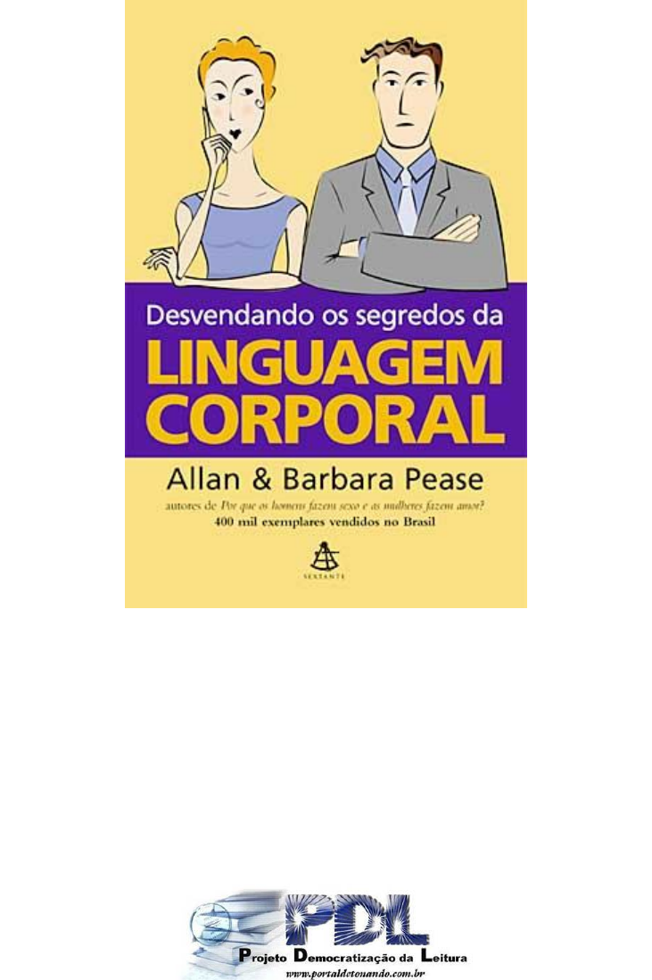 DDeessvveennddaannddoo ooss SSeeggrreeddooss ddaa LLiinngguuaaggeemm CCoorrppoorraall Allan e Barbara Pease Título original: The Definitive Book of Body Language Revisão, formatação e adição de imagens por SusanaCap WWW.PORTALDETONANDO.COM.BR/FORUMNOVO/ Um gesto vale mais do que mil palavras. Provavelmente você já ouviu esta frase, mas talvez não tenha se dado conta do quanto ela é verdadeira. Em Desvendando os Segredos da Linguagem Corporal, Allan e Barbara Pease esclarecem que 93% da comunicação humana é feita através de expressões faciais e movimentos do corpo. Quando aprendemos a prestar atenção em nossa linguagem corporal e a interpretar corretamente a dos outros, passamos a ter maior controle sobre as situações, pois podemos identificar sinais de abertura, de tédio, de atração ou de rivalidade e agir de forma adequada aos nossos objetivos. Com bom-humor e uma sólida base científica, os autores de Por que os homens fazem sexo e as mulheres fazem amor? explicam o significado de gestos que usamos no dia-a-dia, como cruzar os braços, coçar o nariz e balançar a cabeça, evitando os habituais mal-entendidos causados pela contradição entre o que dizem nossas palavras e nosso corpo. Este guia fundamental ensina como melhorar os relacionamentos, aumentando nossa capacidade de comunicação e de entendimento com as pessoas. Além disso, você vai descobrir como: # Causar uma impressão positiva nas pessoas. # Ser bem-sucedido em entrevistas e negociações. # Saber se uma pessoa está disponível. # Criar vínculos rapidamente e obter a cooperação de alguém. # Tornar-se uma pessoa agradável e sociável. Saber se uma pessoa está mentindo. # Ler nas entrelinhas . # Usar a linguagem corporal para conseguir o que deseja. # Reconhecer sinais amorosos e jogos de poder. Não seria fantástico se fôssemos capazes de ler a mente das pessoas? Em Desvendando os Segredos da Linguagem Corporal, Allan e Barbara Pease nos mostram que não é preciso ter poderes mágicos para decifrar a verdadeira intenção por trás de sorrisos, gestos e expressões faciais. Basta aprender a interpretar corretamente a linguagem do corpo, identificando os sinais que demonstram abertura, desprezo, atração, indiferença, mentira e muito mais. Baseados em modernas pesquisas científicas, os autores nos ensinam a ler nas entrelinhas e a detectar as contradições entre as palavras e os gestos das outras pessoas, assim como a controlar os movimentos do nosso próprio corpo e usá-los para conseguir o que desejamos. Este é um livro esclarecedor, capaz de aumentar nossa capacidade de comunicação e de transformar completamente as nossas relações tanto profissionais quanto pessoais. Você vai aprender os segredos para causar uma boa primeira impressão e para se sair bem em entrevistas, negociações e encontros amorosos. Ao terminar a leitura deste guia, você se sentirá como alguém que passou a vida inteira tateando dentro de um quarto escuro e, de repente, uma luz se acendeu e você passou a ver – e entender – tudo claramente. Í n d i c e 1. INTRODUÇÃO CARACTERÍSTICAS GERAIS DA COMUNICAÇÃO NÃO VERBAL 2. A INTERPRETAÇÃO DA POSTURA 3. A COMUNICAÇÃO DOS SENTIDOS (O TATO) 4. MOVIMENTOS CORPORAIS 5. O CONJUNTO DE GESTOS 5.1 GESTOS AO INÍCIO DE UMA CONVERSAÇÃO 5.2 RITMOS CORPORAIS 6. OS TERRITÓRIOS E AS ZONAS 6.1 O ESPAÇO PESSOAL 7. GESTOS COM AS MÃOS 7.1 A PALMA DA MÃO 7.2 O APERTO DE MÃOS 7.3 MÃOS COM OS DEDOS ENTRELAÇADOS 7.4 MÃOS EM OGIVA 7.5 MÃOS, BRAÇOS E PULSOS 7.6 OS GESTOS COM O POLEGAR 7.7 AS MÃOS NO ROSTO 8. OS BRAÇOS DEFENDEM 8.1 OS GESTOS COM OS BRAÇOS CRUZADOS 9. EXPRESSÃO FACIAL 9.1 OS SINAIS COM OS OLHOS 10. GESTOS COM AS PERNAS 10.1 CRUZAMENTO DE PERNAS 10.2 CRUZAMENTO DE TORNOZELOS 10.3 CRUZAMENTO DE PÉS 11. OUTROS GESTOS 11.1 AS POSIÇÕES FUNDAMENTAIS DA CABEÇA 11.2 GESTOS DE AGRESSÃO 12. GESTOS DE PAQUERA 12.1 GESTOS MASCULINOS DE PAQUERA 13. CIGARROS E ÓCULOS 13.1 OS GESTOS AO FUMAR 13.2 OS GESTOS COM OS ÓCULOS 14. OS INDICADORES 14.1 OS ÂNGULOS E OS TRIÂNGULOS 14.2 AS TÉCNICAS DE INCLUSÃO E EXCLUSÃO 14.3 OS INDICADORES NAS PESSOAS SENTADAS 15. A POSSIBILIDADE DE FINGIR 16. ANÁLISE DA LINGUAGEM GESTUAL 1. Introdução A lista de definições de "comunicação" é muito grande; virtualmente cada autor propõe a sua própria. Podemos denominar comunicação ao processo pelo qual, uns seres, umas pessoas atribuem significados a uns fatos produzidos e, entre eles muito especialmente ao comportamento dos outros seres ou pessoas. A primeira condição para que haja comunicação é a presença de um emissor e um receptor. O estudo dos símbolos sempre esteve relacionado com o conceito de comunicação. Como é natural, a expressão corporal que abrange os movimentos do corpo e a postura, está relacionada com as características físicas da pessoa. Há três classes de movimentos observáveis: os faciais, gesticulares e os de postura. Embora possamos categorizar estes tipos de movimentos, a verdade é que estão fortemente entrelaçados, e muito freqüentemente se torna difícil dar um significado a um, prescindindo dos outros. Na comunicação verbal, sendo a linguagem o fator mais importante, reconhecemos que produzimos e recebemos uma quantidade muito grande de mensagens que não vêm expressas em palavras. Estas mensagens são os que denominamos não verbais, e vão da cor dos olhos, comprimento do cabelo, movimentos do corpo, postura, e até o tom da voz, passando por objetos, roupas, distribuição do espaço e do tempo. O estudo rigoroso desses sistemas de comunicação não começou até bastante tempo depois da Segunda Guerra Mundial. Isto não quer dizer que não encontremos alguma referência já nos antigos mundos Grego e Chinês, ou em trabalhos sobre dança, teatro ou liturgia. CARACTERÍSTICAS GERAIS DA COMUNICAÇÃO NÃO VERBAL A comunicação não verbal, geralmente, mantém uma relação de interdependência com a i