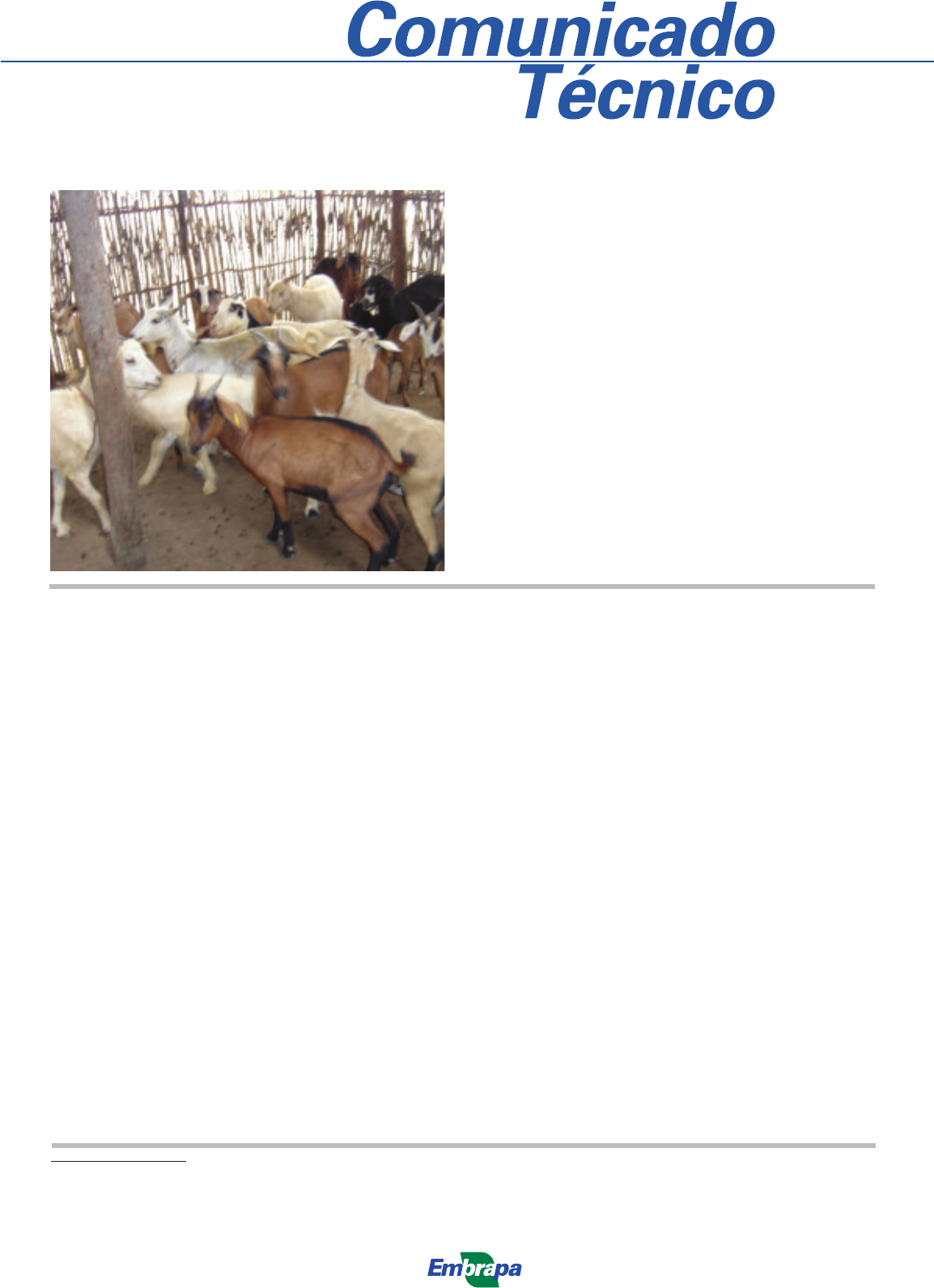 187 ISSN 0104-7647 Junho, 2006 Teresina, PI F o to : R o b er io d o s S an to s S o b re ir a Adriana Mello de Araújo1 Geraldo Magela Cortes Carvalho1 Robério dos Santos Sobreira1 Raimundo Bezerra de Araújo Neto1 Francisco Sérgio Moura Sales1 Francisco das Chagas Monteiro1 Introdução Nos últimos anos, a caprino-ovinocultura vem assumindo importante papel no contexto do agronegócio do Brasil. A atividade despontou no cenário rural do Nordeste como uma alternativa de renda para as famílias do Semi-Árido, estando também fortemente ligada à cultura do Piauí. A caprino- ovinocultura pode se tornar uma grande aliada do Semi-Árido, combatendo a fome, as desigualdades sociais e a pobreza. No entanto, o nível de produtividade alcançado pelos produtores do Semi-Árido ainda é baixo, o que dificulta a articulação com o mercado e demais seguimentos da cadeia produtiva. A baixa oferta de carne de caprinos e ovinos tem dificultado a competitividade e remuneração dos produtores e empresários que tentam tornar essa atividade seu principal foco de renda. A atividade produtiva caprino-ovinocultura vem passando por transformações estruturais e os sistemas produtivos tradicionais deverão emergir em novas formas de organização com enfoque no Sistema Modelo para Produção de Caprinos de Corte no Semi-Árido Piauiense agronegócio. O perfil dos consumidores de caprino- ovino vem se alargando, com a inclusão da carne de caprinos e ovinos no cardápio das classes mais favorecidas das capitais e grandes cidades. Diante disso, a indústria frigorífica instalada no Nordeste vislumbra uma grande oportunidade com os pequenos ruminantes que são adaptados ao ambiente hostil do Semi-Árido e possuem grande valor nutricional. O Programa de Melhoramento da Ovinocaprinocultura do Semi-Árido Piauiense é uma parceria entre a Codevasf e a Embrapa Meio-Norte, com o apoio do Governo do Estado do Piauí-SDR, que visa promover a melhoria da atividade na região Semi-Árida piauiense por meio de ações integradas na área de gerenciamento, melhoramento genético, sanidade, alimentação e reprodução. Além disso, propõe-se também a levar o conhecimento e as tecnologias de produção disponíveis para este importante segmento produtivo. Com o conjunto de atividades, o programa procura intervir positivamente no meio rural do Semi- Árido piauiense, possibilitando às famílias um maior aproveitamento desse cenário favorável ao crescimento da ovinocaprinocultura. 1Embrapa Meio-Norte, Avenida Duque de Caxias, 5650, Caixa Postal 01, CEP 64006-220 Teresina, PI adriana@cpamn.embrapa.br, geraldo @cpamn.embrapa.br, roberio@cpamn.embrapa.br, rbezerra@cpamn.embrapa.br, fsergio@cpamn.embrapa.br, monteiro@cpamn.embrapa.br 2 Sistema Modelo para a Produção de Caprinos de Corte no Semi-Áraido Piauiense A implantação de unidades de observação tem sido um valioso instrumento para a validação de tecnologias agropecuárias. Diante disso, a Embrapa Meio-Norte e a Codevasf planejam a implantação de unidades-modelo com renda dimensionada e ações de adaptação e transferência de tecnologias em prol do desenvolvimento da caprinocultura na região de São João do Piauí, escolhida como pólo para a atividade no estado. O modelo montado prevê uma infra-estrutura mediana, composta de instalações funcionais e área irrigada para gerar uma renda mensal bruta de três salários mínimos atuais (R$ 1.050,00). A mortalidade de 10% e 1,4 de prolificidade adotados são índices técnicos medianos, passíveis de serem obtidos em sistemas tradicionais semi-extensivos. Há possibilidade de variações no rendimento de forrageiras, em função do potencial da localidade/unidade produtiva onde se pretenda implantar modelo semelhante, bem como deverão ser considerados a infra-estrutura e rebanho existentes, para os devidos ajustes e adequações técnicas, se necessário. Rebanho O rebanho caprino da unidade modelo é composto de fêmeas do tipo SRD ou tipos locais para conferir rusticidade e sobrevivência às crias. Os reprodutores são da raça Anglo-Nubiana para conferir maior velocidade de crescimento aos produtos para corte. Para se obter a renda bruta anual estabelecida, serão colocados ao abate anualmente 229 animais jovens, de ambos os sexos, com peso vivo aproximado de 22 kg. Para produzir este volume de animais abatidos, serão necessárias 230 matrizes adultas e aptas à reprodução, considerando um parto por ano, prolificidade de 1,4 crias/parto e fertilidade de 88%. Considerando ainda uma taxa de substituição anual de 10% das matrizes, serão selecionadas ao desmame cerca de 21 crias dentre os cabritos do sexo feminino, para recria de reposição. O sistema modelo compreende as seguintes técnicas desenvolvidas pela Embrapa: instalações rústicas, manejo reprodutivo, manejo alimentar e manejo sanitário. Instalações As instalações devem ser planejadas levando-se em conta a finalidade da exploração. A instalação mais importante é o centro de manejo que, nos sistemas destinados à produção de carne, pode ser constituído por aprisco suspenso de piso ripado, aprisco de chão batido (chiqueiros), currais de manejo, brete, pedilúvio, comedouros, bebedouros, saleiros, área de isolamento e cercas externes e divisórias. As instalações devem ser construídas de modo a se tornarem funcionais, a fim de facilitar o manejo dos animais e para que os fatores climáticos não afetem a fisiologia do animal e, conseqüentemente, sua produtividade. Na construção do aprisco, deve-se obedecer às seguintes recomendações: 1º- dispor de uma área coberta de 0,80 m² a 1,00 m² por animal; 2º obter uma altura mínima do pé-direito de 2,30 m; 3º o piso deve ser ripado ou de chão batido sem acúmulo de umidade 4º a coberta, de telha ou palha, de acordo com o poder aquisitivo do produtor e da disponibilidade dos materiais na região, 5º ser dividido em baias para as diversas categorias de a
