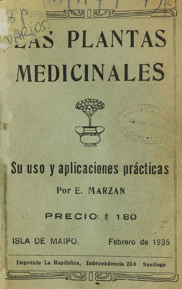 lÉÉ PLANTAS tr" MEDICINALES I Su uso y aplicaciones prácticas Por E. MARZAN i PRECIO; # 1.80 . ■ ■ "-'.;' - .-■■'.- s_J ■ . ■ A .„ -.3 ISLA DE MAIPO. Febrero de 1935 Imprenta La República, Independencia 250. Santiago » & - r- LAS PLANTAS MEDICINALES Su uso y aplicaciones practicas Por E. MAJSZAN PRECIO: $ 1.80 ISLA DE MAIPO. Febrero de 1935 PRÓLOGO La enseñanza de la Apicultura en la Escuela Granja de la Isla de Maipo, me ha h.eeho concebir la idea de publicar esta obrita para los niños de la Escuela porroquial con el fin de tener un texto co mún para la enseñanza de las plantas medicinales y de la botánica al alcance de los niños- La Botánica y la Apicultura deberían andar jun tas en el sendero de la ciencia porque la una sin la otra no podrían subsistir aSí como los reinos animal, vejetal y mineral existen prestándole ayuda recíproca- El reino vejetal no podría vivir sin los minerales, el reino animal sin los ve jétales y el reino mineral sin los residuos orgánicos nitrojenados de los vejetales y animales. Aquí se realizaría la frase gráfica del reno vador de la química, Lavoisier, nada se pierde y nada se crea, todo se transforma en la evolución constante de los seres. La medotolojía que debo seguir por tra tarse de niños es el método práctico, porque toda enseñanza en los primeros años de la niñez, según aconsejan los autores de Pedadogía debe ante todo ser objetiva, que el niño perciba por la visión los fe nómenos que le rodean. También debe ser ^el método sencillo para que se den cuenta exacta de lo que consituye la vida; la observación de la naturaleza r- — 4 — por eso el estudio que hemos hecho de las flores y de las plantas medicinales va acompañada de un Herba rio que cada alumno ha hecho a medida de su capaci dad. Apesar de haber textos excelentes sobre plantas medicinales son sin embargo, tan extensas que es difícil su lectura y por su precio no están al alcance de todos. Además se trata en las plantas en general y muchas de las clases o individuos, son conocidas en una región en otra no lo son. El presente opúsculo estudia las flores y plantas que son de esta zona y esto facilita al alumno el conocimiento de las plantas útiles que están a su alcance. Al lado del nombre vulgar de la planta pongo el nombre científico por que hay una gran cantidad de nombres para una sola planta que por eso es difícil conocer. Por fin he agre gado un preámbulo sobre alimentación sana que pue den aprovechar todas las personas que deseen instruirse en la medicación de su propio organismo, que como el que habla ha sufrido diez años del estómago sin encontrar en los doctores ni en la medicina alivio ninguno. (1) Ojalá sea este librito útil para las per sonas del campo a quienes está dirigido principalmente las cuales carecen de toda medicina y de atención mé dica oportuna. La gran obra realizada por el Sr. Cura en la Es cuela granja parroquial me hace concebir la esperanza de que los niños egresados de ella serán los mas-pre parados para los trabajes agriculturas; apicultura, co- nejería, avicultura y cestería. Estos niños serán hábi les para seguir un estudio más prefundo de agronomía. Si los recursos de la Escuela parroquial fueran ma yores veríamos con agrado su estado cida día más floreciente, pero debido a la suma escásés de los me- (1) Nota—Estos datos están tomados de la obra "Eutrofo- Iogía" del Dr. brasileño Castro Oliveira. — 5 — dios de trabajo y a los ingentes gastos del almuerzo diario de los niños que vienen de lejos, no ha sido posible extender sus beneficios más allá del límite que nosotros deseamos- Sea para el abnegado magisterio de esta Escuela de campo este opúsculo un estímulo para sus tareas. Además de nada servirían todas las medici nas del mundo si el enfermo no acude al primer remedio y talvez único y eficaz que es elegir la mejor alimentación para su estado patológico. Con este breve prólogo empezamos a estudiar los ríñones que con la piel y los pulmones forman los órganos de elimina ción de las toxinas del cuerpo humano. EL AUTOR — 6 — CAPITULO I Los Ríñones. Las enfermedades de los ríñones se llaman ne fritis. Hay dos clases de nefritis agudas y crónicas. la nefritis crónica es albuminosa simple, clor urémica, hipertensiva, e hidrúrica- Los síntomas de estas enfermedades son los si guientes: malestar general; dolor de cabeza; hincha- dura de la cara y d^ los tobillos; dureza de las arte rias que se ponen calcáreas y a veces mucha abun dancia de orina y apesar de eso los ríñones funcionan mal porque no eliminan las toxinas que vienen de los residuos del proceso de la digestión- La nifritis agudas pueden ser pasajeras, sobre agudas y trípicas; para estos casos es necesario recu rrir al doctor. La nefritis clorurémica se cura con leche. La hipertensiva se cura con fruta, nada de carne. Eta clase de nifritis es la más peligrosa porque las arterias se ponen calcáreas como la %iz& y con esta predisposición con un enojo o contrariedad viene un ataque y se revienta una arteria cerebral- Los baños a vapor son también peligrosos para este estado de la enfermedad por la tensión de las ar terias que no permiten aumentar la circulación de la sangre sin romperse. Lo mismo puede decirse de las empaquetaduras prolongadas de agua fría. Las personas que toman mucha sal en. los ali mentos mueren generalmente de asisteria y de angina petoris, porque el corazón por el demasiado trabajo de sus funciones diarias agota sus fuerzas antes de tiempo y luego se rompe. Hay que combatir el error de los que creen que cuando pesan mucho tienen — 7 — f>uena salud- Esto es falso porque la sal y las otras anaterias alimenticias malas o tomadas en exceso se acumulan en los tegidos más pequeños de donde no pueden ser eliminados, causando enfermedaeds daño sas. Desde luego la carne y las callampas producen «rea y ácido úrico que deben ser eliminado lo cua