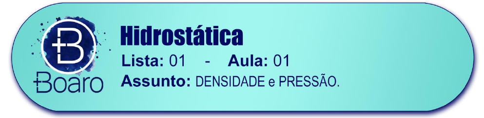 EXC001. (Uerj) Um peixe ósseo com bexiga natatória, órgão responsável por seu deslocamento vertical, encontra-se a 20 m de profundidade no tanque de um oceanário. Para buscar alimento, esse peixe se desloca em direção à superfície; ao atingi-la, sua bexiga natatória encontra-se preenchida por 112 mL de oxigênio molecular. O deslocamento vertical do peixe, para cima, ocorre por conta da variação do seguinte fator: a) densidade b) viscosidade c) resistividade d) osmolaridade EXC002. (Ufsc) Um recipiente cheio de água até a borda tem massa total (água + recipiente) de 1.200 g. Coloca-se dentro do recipiente uma pedra de massa 120 g que, ao afundar, provoca o extravasamento de parte do líquido. Medindo-se a massa do recipiente com a água e a pedra, no seu interior, encontrou-se 1.290 g. Calcule o valor da massa específica da pedra em g/cm3, sabendo que a massa específica da água é 1,0 g/cm3. a) 1,0 b) 2,0 c) 3,0 d) 4,0 e) 5,0 EXC003. (Enem) Talvez você já tenha bebido suco usando dois canudinhos iguais. Entretanto, pode-se verificar que, se colocar um canudo imerso no suco e outro do lado de fora do líquido, fazendo a sucção simultaneamente em ambos, você terá dificuldade em bebê-lo. Essa dificuldade ocorre porque o(a) a) força necessária para a sucção do ar e do suco simultaneamente dobra de valor. b) densidade do ar é menor que a do suco, portanto, o volume de ar aspirado é muito maior que o volume de suco. c) velocidade com que o suco sobe deve ser constante nos dois canudos, o que é impossível com um dos canudos de fora. d) peso da coluna de suco é consideravelmente maior que o peso da coluna de ar, o que dificulta a sucção do líquido. e) pressão no interior da boca assume praticamente o mesmo valor daquela que atua sobre o suco. EXC004. (Upf) Durante um churrasco, o assador percebe que a faca está “sem fio” e decide afiá-la. Como resultado desse processo, a faca passa a cortar a carne com maior facilidade com o mesmo esforço. Dentre as razões que justificam esse fenômeno, está a de que afiar a faca resulta em a) redução de pressão. b) redução de força. c) aumento de sensibilidade. d) redução de área de contato. e) aumento de força. EXC005. (Enem PPL) Um estudante construiu um densímetro, esquematizado na figura, utilizando um canudinho e massa de modelar. O instrumento foi calibrado com duas marcas de flutuação, utilizando água (marca A) e etanol (marca B) como referências. Em seguida, o densímetro foi usado para avaliar cinco amostras: vinagre, leite integral, gasolina (sem álcool anidro), soro fisiológico e álcool comercial (92,8 GL). Que amostra apresentará marca de flutuação entre os limites A e B? a) Vinagre. b) Gasolina. c) Leite integral. d) Soro fisiológico. e) Álcool comercial. EXC006. (Unicamp) Em junho de 2017 uma intensa onda de calor atingiu os EUA, acarretando uma série de cancelamentos de voos do aeroporto de Phoenix no Arizona. A razão é que o ar atmosférico se torna muito rarefeito quando a temperatura sobe muito, o que diminui a força de sustentação da aeronave em voo. Essa força, vertical de baixo para cima, está associada à diferença de pressão PΔ entre as partes inferior e superior do avião. Considere um avião de massa total 5m 3 10 kg= em voo horizontal. Sendo a área efetiva de sustentação do avião 2A 500 m ,= na situação de voo horizontal PΔ vale a) 3 25 10 N m . b) 3 26 10 N m . c) 6 21,5 10 N m . d) 8 21,5 10 N m . EXC007. (Unesp) Considere as seguintes características da moeda de R$ 0,10 : massa 4,8 g;= diâmetro 20,0 mm;= espessura 2,2 mm.= Admitindo como desprezível o efeito das variações de relevo sobre o volume total da moeda e sabendo que o volume de um cilindro circular reto é igual ao produto da área da base pela altura e que a área de um círculo é calculada pela fórmula 2r ,π a densidade do material com que é confeccionada a moeda de R$ 0,10 é de aproximadamente a) 39 g cm . b) 318 g cm . c) 314 g cm . d) 37 g cm . e) 321g cm . EXC008. (Uece) Considere três peças metálicas de mesmo material, de mesmo volume e de formas diferentes, sendo uma esférica, a outra cúbica e a última um poliedro regular de 20 faces, o icosaedro. Os três objetos repousam, em equilíbrio estável, sobre uma mesa plana horizontal próxima ao solo. A pressão (P) exercida sobre a mesa pelos sólidos é tal que a) esfera icosaedro cuboP P P . b) esfera icosaedro cuboP P P .= = c) icosaedro esfera cuboP P P . d) esfera icosaedro cuboP P P . EXC009. (G1 - cps) A amarelinha é uma brincadeira em que, em alguns momentos, a criança deve se apoiar com os dois pés no chão e, em outros, com apenas um. Quando uma criança está equilibrada somente sobre um pé, a pressão exercida por ela sobre o chão, comparada com a pressão que é exercida quando a criança tem seus dois pés apoiados é a) quatro vezes maior. b) duas vezes maior. c) numericamente igual. d) duas vezes menor. e) quatro vezes menor. EXC010. (Ebmsp) Considerando que o sistema circulatório humano tem 160.000 quilômetros de veias, artérias e capilares, com formato cilíndrico e com área média da seção transversal igual a –11 23,75 10 m , que a densidade do sangue é igual a 31,06 g cm e que o módulo da aceleração da gravidade local é 2 10 m s , determine o peso do sangue que circula nesse sistema. EXC011. (Uerj) Um automóvel de massa igual a 942 kg é suspenso por um elevador hidráulico cujo cilindro de ascensão tem diâmetro de 20 cm. Calcule a pressão a ser aplicada ao cilindro para manter o automóvel em equilíbrio a uma determinada altura. EXC012. (Fuvest) Os grandes aviões comerciais voam em altitudes onde o ar é rarefeito e a pressão atmosférica é baixa. Devido a isso, eles têm o seu interior pressurizado em uma pressão igual à atmosférica na altitude de 2.000 m. A figura mostra o gráfico da pressão atmosférica em função da altitude. A força, em N, a que fica submeti