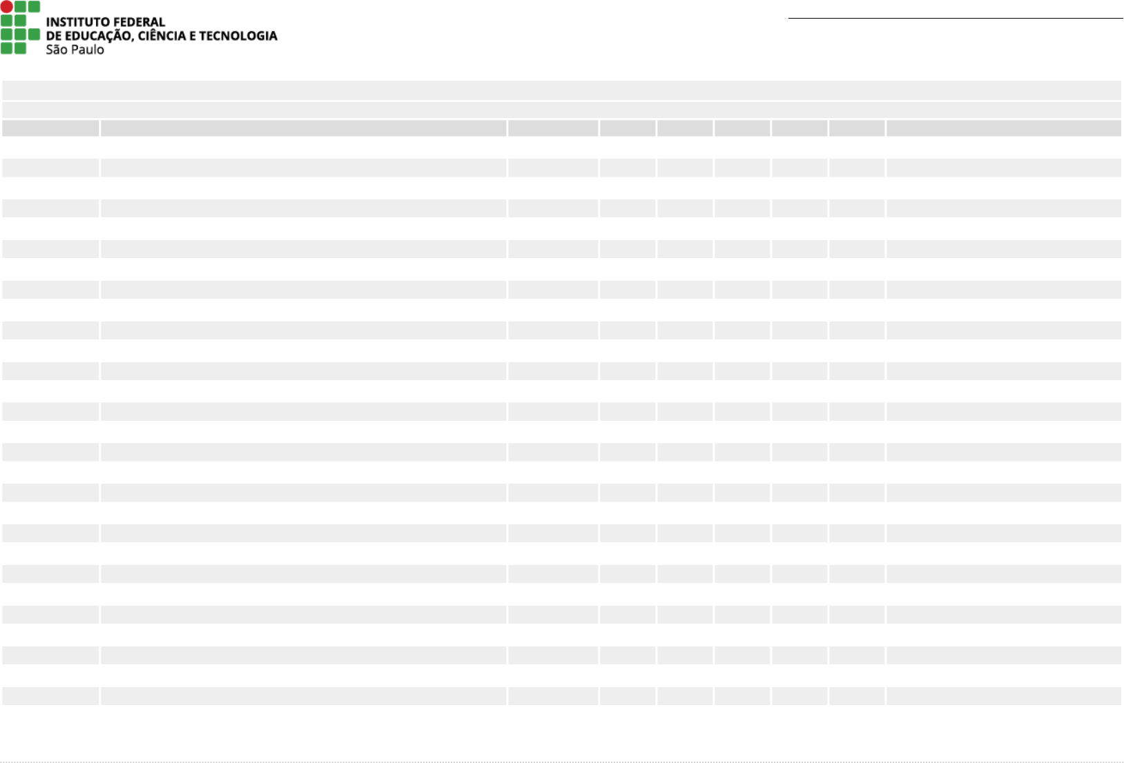 Câmpus Jacarei - Técnico em Informática Integrado ao Ensino Médio - Integral AC: Ampla concorrência Inscrição Candidato Nascimento LP MAT PO PF Class Situação 07.001908-2 BEATRIZ ALVES DE OLIVEIRA 23/04/2008 15,0 14,0 29,0 29,0 1 Aprovado 07.032980-7 MANUELA FERREIRA CARDOSO BRAGA 12/08/2008 14,0 13,0 27,0 27,0 2 Aprovado 07.008501-5 LUIS GUILHERME DOS REIS NASCIMENTO 28/01/2009 13,0 14,0 27,0 27,0 3 Aprovado 07.003634-7 JÚLLIA TAVARES SILVA BATISTA 18/04/2009 13,0 14,0 27,0 27,0 4 Aprovado 07.015296-4 MARINA OYAKAWA FURUNO 18/04/2009 13,0 14,0 27,0 27,0 5 Aprovado 07.017014-6 LUIS FELIPE ARAUJO DECARLI 12/08/2008 14,0 12,0 26,0 26,0 6 Aprovado 07.030400-3 JOSE ANTONIO RODRIGUES LOPES 08/01/2009 14,0 12,0 26,0 26,0 7 Aprovado 07.025057-2 BEATRIZ BARRETO DA SILVA 29/12/2008 13,0 13,0 26,0 26,0 8 Aprovado 07.007583-8 LUCAS ANDRADE SANTOS 17/04/2008 13,0 12,0 25,0 25,0 9 Aprovado 07.028080-5 HEITOR GOMES PINHEIRO SILVA 09/08/2008 13,0 12,0 25,0 25,0 10 Aprovado 07.015376-8 PEDRO PAULO PEREIRA SANTOS 28/08/2008 13,0 12,0 25,0 25,0 11 Aprovado 07.000009-4 ARTHUR PEREIRA DE SOUZA 02/03/2009 13,0 12,0 25,0 25,0 12 Aprovado 07.003667-2 GUILHERME HENRIQUE FERNANDES 09/06/2008 12,0 13,0 25,0 25,0 13 Aprovado 07.004564-2 ANA CLARA LOPES CLEMENTE 04/07/2008 12,0 13,0 25,0 25,0 14 Aprovado 07.023256-8 PEDRO ELIAS GUIMARÃES 16/09/2008 12,0 13,0 25,0 25,0 15 Aprovado 07.011675-0 GIOVANNA MAYUMI SAITO 31/10/2008 12,0 13,0 25,0 25,0 16 Aprovado 07.000701-5 ISABELLE NOGUEIRA PEREIRA CORREA DE OLIVEIRA 19/11/2008 12,0 13,0 25,0 25,0 17 Aprovado 07.027400-6 FELIPE FANTINE HERNANDES DINIZ 11/06/2009 12,0 13,0 25,0 25,0 18 Aprovado 07.022433-3 ISABELLI PEREIRA DA NOBREGA 18/02/2009 14,0 10,0 24,0 24,0 19 Aprovado 07.001116-9 LEONARDO ALEIXO SALGADO DA SILVA 07/12/2008 13,0 11,0 24,0 24,0 20 Aprovado 07.004194-0 LYARA CAMARGOS DE MACEDO 05/09/2007 12,0 12,0 24,0 24,0 -- Aprovado em outra lista 07.016020-2 NICOLAS MOREIRA MENECUCCI INSFRAN 18/11/2008 12,0 12,0 24,0 24,0 -- Aprovado em outra lista 07.001051-4 MATEUS BUCHALLA SANTOS 23/03/2009 12,0 12,0 24,0 24,0 21 Em espera (vagas remanescentes) 07.024214-7 FRANCISCO MORAIS DE OLIVEIRA 27/02/2009 15,0 8,0 23,0 23,0 22 Em espera (vagas remanescentes) 07.028292-2 NICOLAS HENRIQUE RUFINO ROSSI 18/12/2008 13,0 10,0 23,0 23,0 -- Aprovado em outra lista 07.024846-3 GUILHERME DE SIQUEIRA PRADO 16/02/2009 13,0 10,0 23,0 23,0 23 Em espera (vagas remanescentes) 07.006095-0 ISABEL DINIZ VILELA MACEDO 03/07/2008 12,0 11,0 23,0 23,0 24 Em espera (vagas remanescentes) 07.012668-8 GRAZIELY RODRIGUES RICARDO 07/12/2008 12,0 11,0 23,0 23,0 -- Aprovado em outra lista Legenda: LP: Língua Portuguesa | MAT: Matemática | PO: Prova Objetiva | PF: Pontuação Final | Class: Classificação RESULTADO DO PROCESSO SELETIVO TÉC INTEGRADOS E CONCOMITANTES/SUBSEQUENTES 2024/1 Edital 449/2023, de 28 de Julho de 2023 Documento gerado em 11 de Janeiro de 2024 às 16:21 Página 1 Câmpus Jacarei - Técnico em Informática Integrado ao Ensino Médio - Integral AC: Ampla concorrência Inscrição Candidato Nascimento LP MAT PO PF Class Situação 07.007191-2 KAYSHEEN DOS SANTOS RODRIGUES 29/07/2008 11,0 12,0 23,0 23,0 -- Aprovado em outra lista 07.021476-0 GIANLUCA POLIGNANO MACHADO RODRIGUES 04/08/2008 11,0 12,0 23,0 23,0 25 Em espera (vagas remanescentes) 07.001037-1 JOAO PEDRO BUCHALLA SANTOS 23/03/2009 11,0 12,0 23,0 23,0 26 Em espera (vagas remanescentes) 07.017825-4 VINICIUS FERREIRA CUSTODIO 07/06/2008 10,0 13,0 23,0 23,0 -- Aprovado em outra lista 07.030316-2 MIGUEL APARECIDO COSTA 24/09/2008 13,0 9,0 22,0 22,0 -- Aprovado em outra lista 07.004881-8 MIGUEL VINICIUS RODRIGUES BARBOSA 30/03/2009 13,0 9,0 22,0 22,0 27 Em espera (vagas remanescentes) 07.008373-7 RENAN EIGLER SAMPEDRO 15/05/2009 13,0 9,0 22,0 22,0 28 Em espera (vagas remanescentes) 07.016668-2 LEONARDO MALLET DE OLIVEIRA CAMPOS 12/07/2007 12,0 10,0 22,0 22,0 29 Em espera (vagas remanescentes) 07.019614-0 GIOVANNA MOREIRA DIAS 09/08/2008 12,0 10,0 22,0 22,0 30 Em espera (vagas remanescentes) 07.010692-9 NÁTALI PEREIRA RIBEIRO 25/04/2008 11,0 11,0 22,0 22,0 -- Aprovado em outra lista 07.018912-8 MATEUS VIEIRA COUTINHO 11/12/2008 11,0 11,0 22,0 22,0 31 Em espera (vagas remanescentes) 07.003137-3 VIVIAN SANTOS CARVALHO 14/02/2009 11,0 11,0 22,0 22,0 -- Aprovado em outra lista 07.016545-8 DANIEL DAIKI OGURA 28/07/2008 10,0 12,0 22,0 22,0 -- Aprovado em outra lista 07.003490-5 LUIS GUILHERME MORAES HARO SANTANA 08/09/2008 10,0 12,0 22,0 22,0 -- Aprovado em outra lista 07.022065-4 NATHALIA VIEIRA BILIATO SILVA 21/09/2008 10,0 12,0 22,0 22,0 32 Em espera (vagas remanescentes) 07.020256-7 ISABELLA PIMENTEL BOMEDIANO 08/10/2008 10,0 12,0 22,0 22,0 33 Em espera (vagas remanescentes) 07.013677-0 GUSTAVO EMINYN BUENO DOS SANTOS 11/02/2009 10,0 12,0 22,0 22,0 34 Em espera (vagas remanescentes) 07.034341-1 RODNEI LAVANDOWSKI ESTEVES 19/02/2009 9,0 13,0 22,0 22,0 35 Em espera (vagas remanescentes) 07.008340-1 MARIA EDUARDA DE OLIVEIRA LEDRO 23/07/2008 14,0 7,0 21,0 21,0 36 Em espera (vagas remanescentes) 07.018795-1 AMANDA DE SOUZA GOMES 01/07/2008 13,0 8,0 21,0 21,0 37 Em espera (vagas remanescentes) 07.018888-0 GABRIEL MAFFEIS DALZOTO 11/12/2007 12,0 9,0 21,0 21,0 38 Em espera (vagas remanescentes) 07.019287-0 BEATRIZ DOS SANTOS BENTO 02/05/2008 12,0 9,0 21,0 21,0 -- Aprovado em outra lista 07.011775-5 JOAO EMANUEL RAMOS PEREIRA 28/05/2008 12,0 9,0 21,0 21,0 39 Em espera (vagas remanescentes) 07.032609-7 ISABELY MARIA JESUS DA SILVA 05/08/2008 12,0 9,0 21,0 21,0 40 Em espera (vagas remanescentes) 07.025222-3 LEONARDO VIEIRA DE OLIVEIRA 13/11/2008 12,0 9,0 21,0 21,0 41 Em espera (vagas remanescentes) 07.006351-6 VITOR VALERIO VERDELLI 25/09/2008 11,0 10,0 21,0 21,0 42 Em espera (vagas remanescentes) 07.002006-2 JULIO MIGUEL CANDEIAS MACHADO 11/02/2009 11,0 10,0 21,0 21,0 43 Em espera (vagas remanescentes) 07.000842-8 JOAO VICTOR DE BARROS MELCHIORI 06/06/2009 11,0 10,0 21,0 21,0 44 Em espera (vagas remanescentes) 07.034226-8 L