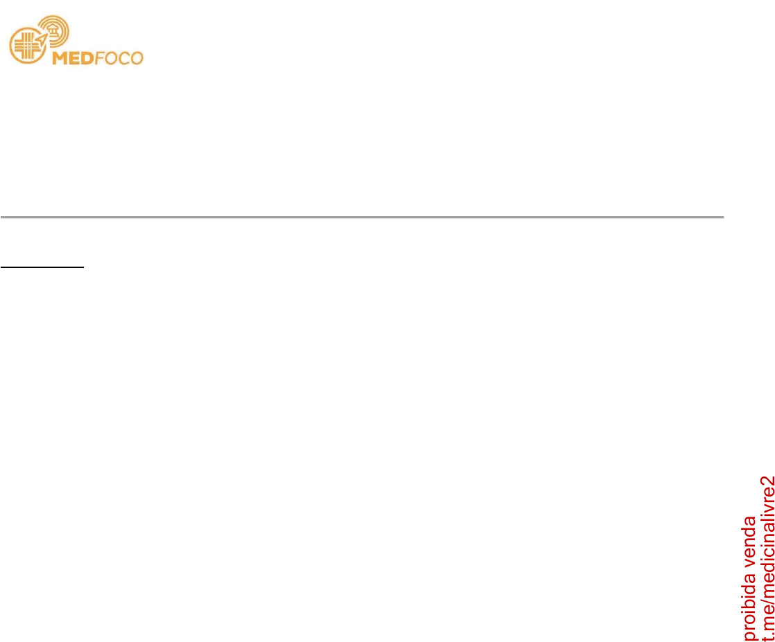 Pediatria 01 - Uma gestante com 33 semanas de idade gestacional foi submetida à cesárea de emergência, após ter entrado em trabalho de parto sem causa aparente. O recém-nascido (RN), imediatamente após o nascimento, apresenta-se com choro fraco e hipoativo. Com base nos dados apresentados e considerando as Diretrizes de Reanimação Neonatal da Sociedade Brasileira de Pediatria, assinale a afirmativa correta. A) Este RN deverá ser levado imediatamente à mesa de reanimação. Os passos iniciais devem seguir esta ordem: prover calor, secar, posicionar, aspirar (se necessário). B) O estímulo tátil no dorso não deve ser realizado, pois é indicado apenas para RN com 34 semanas ou mais. C) Se indicada ventilação com pressão positiva (VPP), o RN deverá receber monitorização e oximetria de pulso. D) Este RN deverá ser levado imediatamente à mesa de reanimação. Os passos iniciais devem seguir esta ordem: prover calor, colocar saco plástico + touca dupla (sem secar), posicionar, aspirar (se necessário) e instalar sensor de oximetria e monitor cardíaco. 02 - Lactente de 1 mês de vida é trazido para atendimento com quadro de lacrimejamento ocular à direita. A família refere que desde o nascimento, notou mancha violácea logo abaixo deste mesmo olho. Está em bom estado geral, aleitamento materno exclusivo e com bom ganho de peso. Ao exame físico, notam-se lacrimejamento no olho direito, com pouca quantidade de secreção amarelada, sem hiperemia conjuntival e pequeno abaulamento logo abaixo do olho direito, próximo ao nariz, de coloração violácea. O teste do reflexo vermelho é normal. A principal hipótese diagnóstica é: A) Blefarite. B) Conjuntivite viral. C) Glaucoma congênito. D) Dacriocistocele do saco lacrimal. 03 - RN a termo, sem alterações ao exame físico, apresenta ao nascimento VDRL 1:32. A mãe foi tratada para sífilis no segundo trimestre de gestação, com 3 doses de penicilina benzatina (total 7.200.000 UI), e apresentou os seguintes exames: VDRL pré-tratamento = 1:256; VDRL pós-tratamento = 1:128; 1:64; 1:16; VDRL no dia do parto = 1:64. A mãe não sabe se o pai do RN foi tratado, pois estão separados. Assinale a conduta correta em relação à investigação e tratamento do RN: A) Realizar hemograma, liquor e radiografia de ossos longos; se os exames forem normais, não realizar tratamento e encaminhar para seguimento ambulatorial. B) Não há necessidade de realização de outros exames no RN; administrar penicilina benzatina em dose única e encaminhar para seguimento ambulatorial. C) Realizar hemograma, liquor e radiografia de ossos longos; se os exames forem normais, tratar com penicilina cristalina ou procaína por 10 dias. D) Não há necessidade de realização de outros exames no RN; não realizar tratamento e encaminhar para seguimento ambulatorial. 2023 UNESP t.m e/ m ed ic in al iv re 2 pr oi bi da v en da MEDFOCO 2023 UNESP 04 - Sobre o aleitamento materno, assinale a afirmativa correta: A) O leite humano contém vários fatores imunológicos, específicos e não específicos, que conferem proteção ativa e passiva contra infecções às crianças amamentadas; dentre eles, a IgA secretória é a principal munoglobulina. B) O colostro possui mais lactose, mais gordura e menor concentração de proteínas que o leite maduro, com maior densidade calórica. C) Os recém-nascidos de mães com hepatite B e HbsAg positivo devem receber imunoglobulina e vacina contra hepatite B ao nascimento, e a amamentação deve ser contraindicada. D) Em caso de mastite, o aleitamento materno deve ser temporariamente interrompido durante o tratamento. 05 - O Ministério da Saúde realizou a 25ª Campanha Nacional de Vacinação contra a Influenza no período de 10 de abril a 31 de maio de 2023. A influenza é uma infecção viral aguda, que afeta o sistema respiratório e é de alta transmissibilidade. A estratégia de vacinação contra a influenza foi incorporada no Programa Nacional de Imunizações (PNI) em 1999, com o propósito de reduzir internações, complicações e óbitos na população-alvo. A respeito desta vacina, assinale a alternativa correta. A) A vacina fornecida de forma gratuita para a população é do tipo bivalente, composta de dois tipos de cepas: A/Sydney/5/2021 (H1N1) e A/Darwin/9/2021 (H3N3). B) As crianças com menos de nove anos de idade ao serem vacinadas contra influenza pela primeira vez na vida deverão receber duas doses com intervalo de 30 dias. C) É uma vacina de vírus vivo atenuado, logo, gripe em decorrência da vacina é um evento comum, mas sem maior gravidade. D) Histórico prévio de anafilaxia ao ovo, é uma contraindicação absoluta ao recebimento desta vacina. 06 - Criança de 3 anos, sexo feminino, é internada com quadro de pneumonia. A família não leva a criança ao pediatra para acompanhamento regular. A mãe tem histórico de abuso de drogas na gestação e de irmãos com déficit intelectual. Ao exame físico, além de alterações respiratórias correspondentes ao quadro agudo, notam-se as seguintes alterações faciais: fendas palpebrais curtas, hipoplasia maxilar, nariz curto, filtro nasolabial liso e lábio superior fino e liso. Ausculta cardíaca com sopro sistólico, mais forte em borda esternal. Ainda, apresenta baixa estatura para idade e microcefalia. Andou com 2 anos de idade e não fala, apesar de interagir bem com examinador. Neste caso, a principal hipótese diagnóstica para as alterações encontradas é a síndrome: A) de Down. B) do X frágil. C) de Turner. D) alcoólica-fetal. 07 - Paciente masculino de 8 meses é encaminhado ao nefrologista com história de infecções urinárias febris recorrentes desde os dois meses de idade. Já realizou ultrassonografia e uretrocistografia miccional (imagem abaixo). Assinale a alternativa correta quanto ao achado neste último exame e qual avaliação deve ser solicitada no seguimento. A) Hidronefrose e estudo urodinâmico. B) Válvul