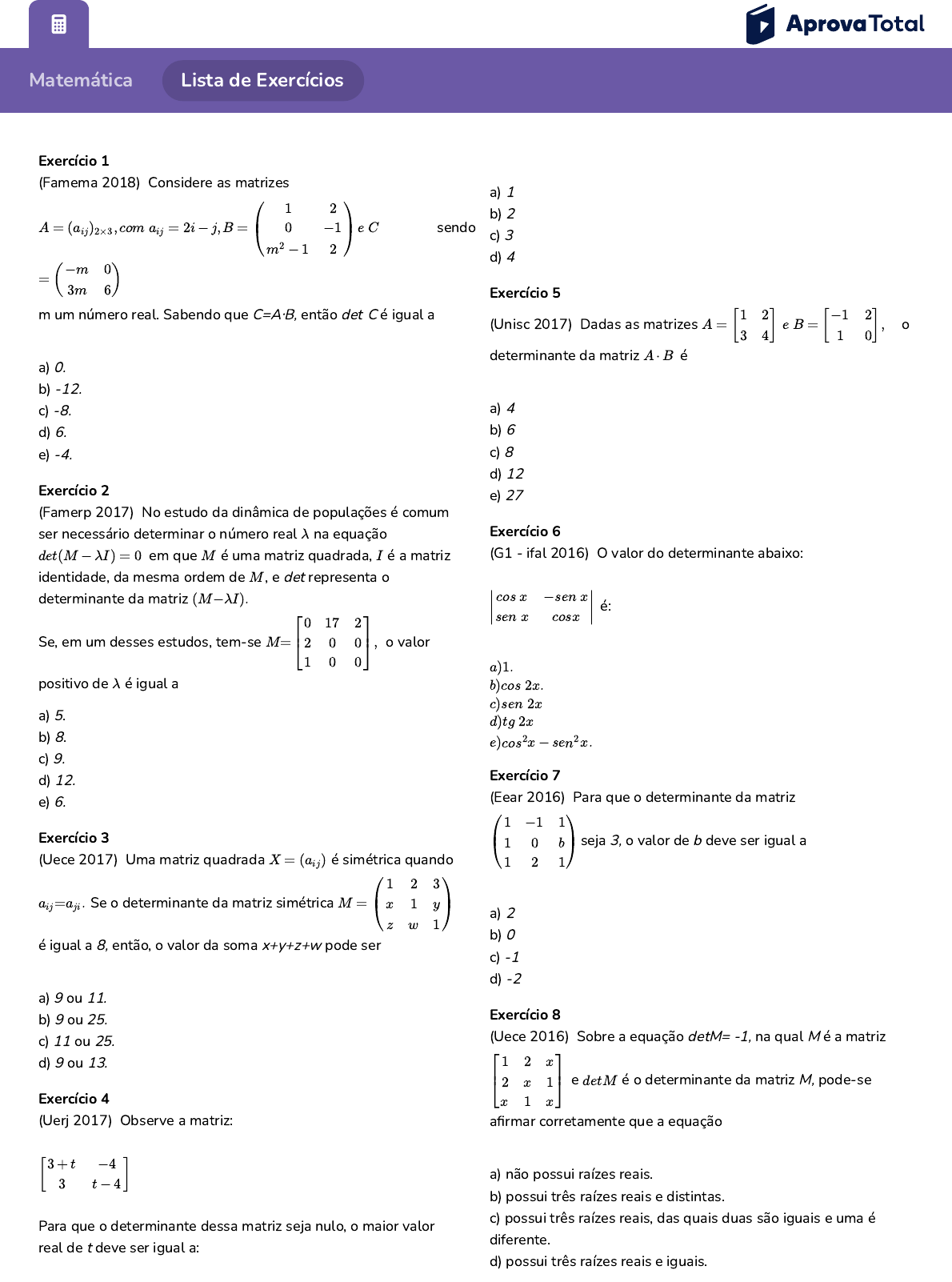 (Uece 2016) Sobre a equação detM= -1, na qual M é a matriz