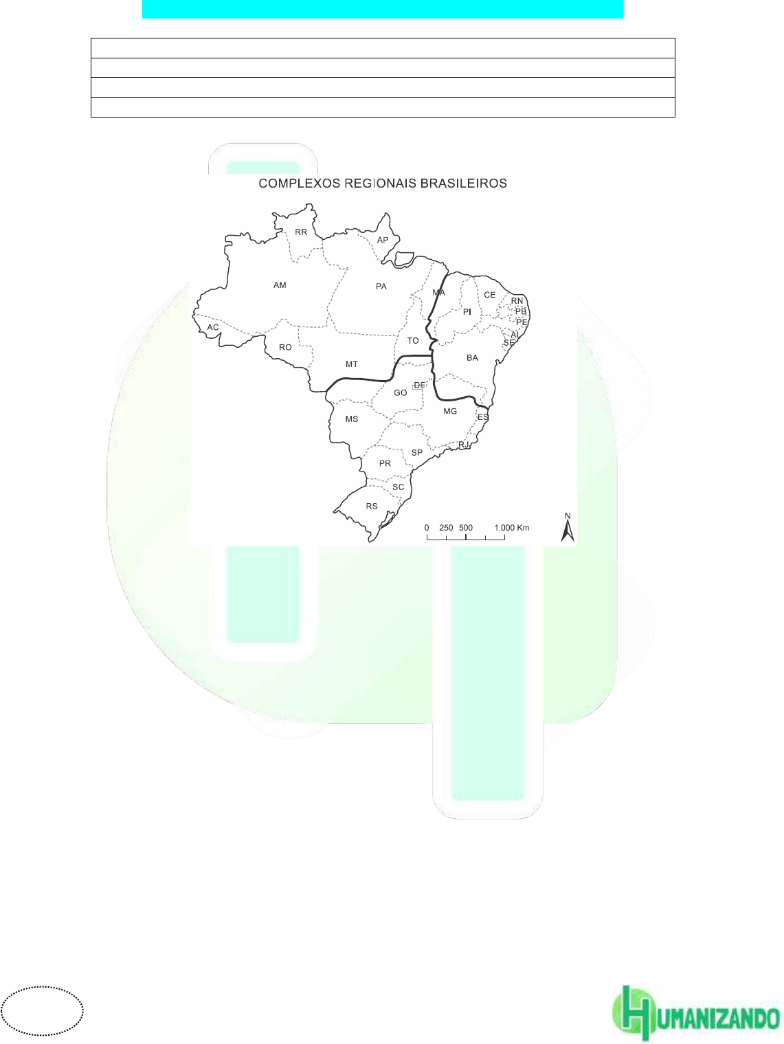 1 LISTA DE EXERCÍCIOS: REVISÃO 2 – GEOGRAFIA HUMANA TEMAS ABORDADOS AULA 25: Regionalização Brasileira – IBGE. AULA 26: Regionalização Brasileira – Geiger. AULA 27: Regionalização Brasileira - Milton Santos. 1. (Mackenzie 2016) Observe o mapa a seguir. A respeito da regionalização brasileira proposta no mapa, considere as afirmativas. I. Nesta proposta de regionalização do espaço brasileiro, o território nacional foi dividido em grandes regiões econômicas. São elas: Amazônia, Centro-Sul e Nordeste. II. Este modelo difere das regionalizações propostas pelo IBGE, uma vez que não respeita os limites político-administrativos dos Estados. III. O Geógrafo Pedro Pinchas Geiger focou os seus critérios de divisão na observação do processo histórico de desenvolvimento econômico e social, como também nos aspectos naturais regionais. IV. Devido aos grandes contrastes regionais internos, o geógrafo propõe a divisão em sub-regiões no complexo do Nordeste. Nesta proposta, apresenta-se subdividido em Zona da Mata e Polígono das Secas. Estão corretas A) I e II, apenas. B) II e III, apenas. C) III e IV, apenas. D) I, II e III, apenas. E) I, II, III e IV. 2 2. (Uem 2016) Embora, oficialmente, a divisão regional atual do Brasil considere a existência de cinco grandes regiões no território nacional (Norte, Nordeste, Centro-Oeste, Sudeste e Sul), existem outras propostas que foram elaboradas para fins de planejamento territorial ou no intuito de se tentar compreender ou explicar as diferenças econômicas, sociais, culturais e ambientais do País. Sobre o tema das regiões e regionalizações no Brasil, é correto afirmar que 01) as regiões geoeconômicas, ou macrorregiões geoeconômicas – segundo o Instituto Brasileiro de Geografia e Estatística (IBGE) –, são definidas de acordo com relações de convergência econômica e histórica de áreas do território nacional. Nessa regionalização, o País está dividido em três grandes conjuntos: Centro-Sul, Nordeste e Amazônia. 02) a Superintendência de Desenvolvimento do Nordeste (Sudene) e a Superintendência de Desenvolvimento da Amazônia (Sudam) são órgãos federais criados nas décadas de 1950 e 1960, respectivamente, com o objetivo de implementar políticas de desenvolvimento regionais em suas áreas de atuação. 04) pensada pelo Governo Federal no âmbito de uma regionalização que tomou por base os aspectos ambientais do território nacional, a Pan-Amazônia é formada pelo pantanal mato-grossense e pela floresta amazônica. 08) considerando a divisão regional proposta pelo IBGE, explicitada no caput da questão, pode-se dizer que a Região Concentrada é composta pelas regiões Sul e Sudeste do Brasil. 16) considerando a divisão regional do Brasil em grandes regiões, proposta pelo IBGE, a espacialidade do Semiárido abrange a maior parte dos estados nordestinos, além da porção norte de Minas Gerais, localizado na Região Sudeste. 3. (Upf 2017) O quadro que segue apresenta aspectos da produção econômica e de identificação de cidades, além da localização e regionalização no Rio Grande do Sul. Assinale a alternativa que indica corretamente a relação entre os itens descritos. Região Corede Atividade econômica de destaque Localização no RS Cidade de destaque A) Litoral Exploração mineral Leste Rio Grande B) Produção Industrializaç ão Nordeste Santo Ângelo C) Campos de Cima da Serra Fruticultura Noroeste Vacaria D) Alto Uruguai Cultura de arroz Norte Santa Maria E) Campanha Criação de gado Sudoeste Bagé 3 4. (Unioeste 2017) Sobre a regionalização do espaço mundial, analise as afirmativas a seguir e atribua V para as verdadeiras e F para as falsas: ( ) Com o auge da globalização, qualquer região deve ser estudada como uma unidade homogênea, que não possui diversidades internas, nem relação com outros espaços. ( ) O continente americano, do ponto de vista socioeconômico, divide-se em América Anglo-Saxônica, que reúne os dois únicos países desenvolvidos do continente, e América Latina, detentora de um grande número de países marcados pela homogeneidade no que diz respeito à sua inserção econômica no mundo. ( ) O espaço geográfico mundial no período da Guerra Fria (1945-1991) estava regionalizado em blocos de acordo com as condições socioeconômicas dos países integrantes e o sistema adotado por influência das superpotências. Desse modo, o mundo estava regionalizado em Primeiro Mundo, Segundo Mundo e Terceiro Mundo. ( ) No período atual, uma das maneiras de se regionalizar o Planeta é em Norte (desenvolvido) e Sul (subdesenvolvido) e também em blocos econômicos regionais. ( ) Durante o Imperialismo (1845-1945), a regionalização do espaço mundial agrupava os países de acordo com sua capacidade econômica e a influência política e militar que exerciam no cenário mundial. Assim, o mundo estava regionalizado em Países Centrais e Países Periféricos. A partir da análise acima, assinale a sequência CORRETA. A) F – V – V – F – F. B) V – F – V – F – F. C) F – V – F – F – F. D) V – V – V – V – F. E) F – F – V – V – V. 5. (G1 - ifsp 2016) Segundo o geógrafo Milton Santos, “a globalização é, de certa forma, o ápice do processo de”: (Fonte: SANTOS, Milton. Por uma outra globalização. Rio de Janeiro: Record, 2004, p. 23). A) prevenção de crises do capitalismo. B) popularização do capitalismo. C) internacionalização do mundo capitalista. D) regionalização fechada do capitalismo. E) economia segura do sistema mundial capitalista. 4 RESOLUÇÕES Resposta da questão 1: [D] As afirmativas [I], [II] e [III] estão corretas porque a divisão em Complexos Regionais proposta por Geiger utiliza como critério os aspectos históricos e socioeconômicos para definir as regiões cujos limites não coincidem com os dos estados. A afirmativa [IV] está incorreta porque as sub-regiões do nordes