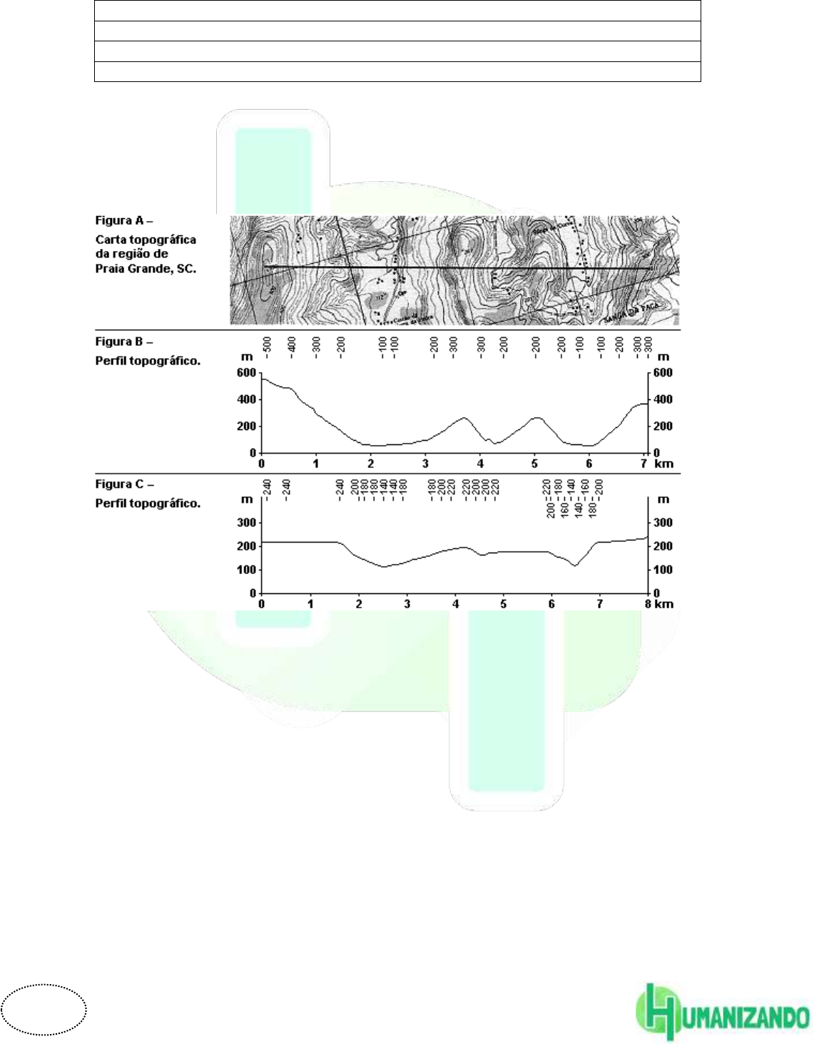 1 LISTA DE EXERCÍCIOS: REVISÃO DOS 112 DIAS – GEOGRAFIA FÍSICA TEMAS ABORDADOS AULA 03: CARTOGRAFIA – FUSO HORÁRIO. AULA 04: CARTOGRAFIA – CARTOGRAFIA TEMÁTICA. AULA 05: CARTOGRAFIA – PROJEÇÕES CARTOGRÁFICAS. 1. (Ufpel 2007) A representação cartográfica do relevo traduz, para duas dimensões de um plano, um fenômeno que, na realidade, se apresenta de maneira tridimensional. Observe as figuras a seguir. Com relação ao corte apresentado na carta topográfica da Figura A, é correto afirmar que o perfil topográfico correspondente está representado na Figura A) B, e as altitudes diminuem no seu conjunto de oeste-noroeste para leste-sudeste, acompanhando a orientação do perfil. B) C, e as linhas hipsométricas, na carta topográfica, unem pontos que, sobre o terreno, possuem idêntica altitude. C) B, e as curvas de nível na carta topográfica apresentam uma equidistância de 100 m. D) B, e as curvas de nível que representam as partes do terreno mais planas são em maior quantidade e menos espaçadas do que nas partes mais íngremes do relevo. E) C, e a altitude de qualquer ponto do terreno poderá ser determinada por meio de interpolação linear de curvas contíguas. 2 2. (Pucmg 2007) Analisando-se o mapa e associando-o ao perfil A – B, pode-se concluir que: A) quanto mais próximas as curvas de nível, maior é a declividade do terreno. B) quanto mais distantes as curvas de nível, maior é a declividade do terreno. C) quanto mais próximas as curvas de nível, menor é a declividade do terreno. D) a declividade do terreno não possui qualquer relação com a distância entre as curvas de nível. 3 3. (Unb 2012) Do ponto de vista cartográfico, é impossível representar a superfície curvilínea da Terra em um plano. As projeções cartográficas minimizam as distorções criadas no mapa, conforme mostra o plano de projeção a seguir. A partir dessas informações, assinale a opção em que a representação cartográfica corresponde ao plano de projeção mostrado na figura acima. A) B) C) D) 4 4. (Ucs 2012) Projeções cartográficas são o conjunto de operações que permitem representar, no plano, através de paralelos e meridianos, os fenômenos que estão dispostos na superfície da Terra. Observe as projeções abaixo. Assinale a alternativa que identifica, correta e respectivamente, as projeções 1, 2 e 3. A) Azimutal, cônica e cilíndrica. B) Polar, cônica e cilíndrica. C) Azimutal, plana e cônica. D) Cilíndrica, cônica e plana. E) Cônica, cilíndrica e polar. 5. (Enem 2002) O mercado financeiro mundial funciona 24 horas por dia. As bolsas de valores estão articuladas, mesmo abrindo e fechando em diferentes horários, como ocorre com as bolsas de Nova York, Londres, Pequim e São Paulo. Todas as pessoas que, por exemplo, estão envolvidas com exportações e importações de mercadorias precisam conhecer os fusos horários para fazer o melhor uso dessas informações. Considerando que as bolsas de valores começam a funcionar às 09:00 horas da manhã e que um investidor mora em Porto Alegre, pode-se afirmar que os horários em que ele deve consultar as bolsas e a sequência em que as informações são obtidas estão corretos na alternativa: 5 A) Pequim (20:00 horas), Nova York (07:00 horas) e Londres (12:00 horas). B) Nova York (07:00 horas), Londres (12:00 horas) e Pequim (20:00 horas). C) Pequim (20:00 horas), Londres (12:00 horas) e Nova York (07:00 horas). D) Nova York (07:00 horas), Londres (12:00 horas), Pequim (20:00 horas). E) Nova York (07:00 horas), Pequim (20:00 horas), Londres (12:00 horas). RESOLUÇÕES Resposta da questão 1: [A] Resposta da questão 2: [A] Resposta da questão 3: [A] A figura utilizada no enunciado refere-se à projeção cilíndrica, cujo produto é corretamente identificado na alternativa [A]. Estão incorretas as alternativas: [B], porque o mapa apresentado é resultado de uma projeção azimutal; [C], porque a base da projeção do mapa representado é uma figura cônica; [D], porque representa a Projeção afilática de Robinson, cujo objetivo é a maior aproximação das formas e áreas dos continentes à proporção real. Resposta da questão 4: [D] As técnicas de projeção são, respectivamente: 1 (cilíndrica: possivelmente a projeção de Mercator conforme, mas que distorce as áreas proporcionais), 2 (cônica) e 3 (plana ou azimutal). Resposta da questão 5: [C] Fusos horários são variações horárias resultantes do movimento de rotação da Terra, sendo contados ao longo das longitudes. Desta maneira, a Terra leva aproximadamente 24 hs para dar uma volta completa em torno dela mesma, percorrendo 360º sexagesimais, o que acarreta um fuso horário a cada 15º de longitude. Deslocamentos para leste, no sentido da rotação, aumentam a hora. Para oeste, diminuem a hora. Se em Porto Alegre, 2º fuso brasileiro, são 9 hs, em Pequim, onze fusos(horas) a leste = 9 + 11 = 20, serão 20 hs; em Londres, três fusos(horas) para leste / 9 + 3 = 12, serão 12 hs; em Nova York, dois fusos(horas) para oeste / 9 – 2 = 7, serão 7 hs.
